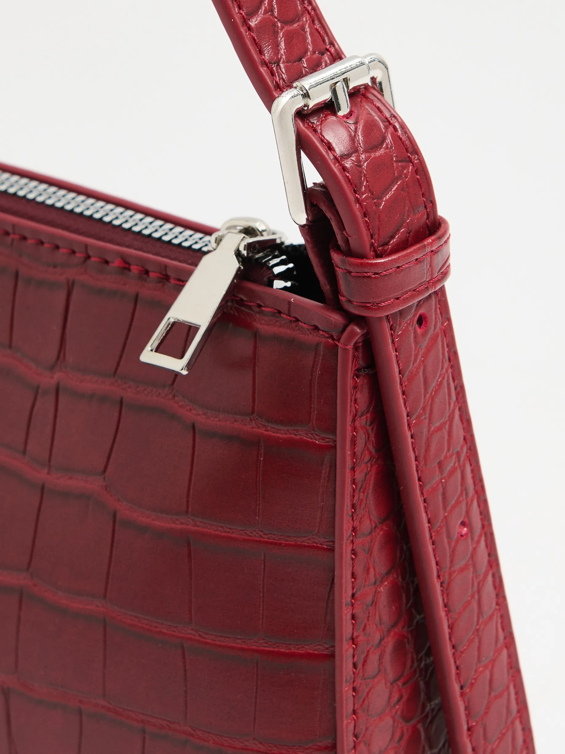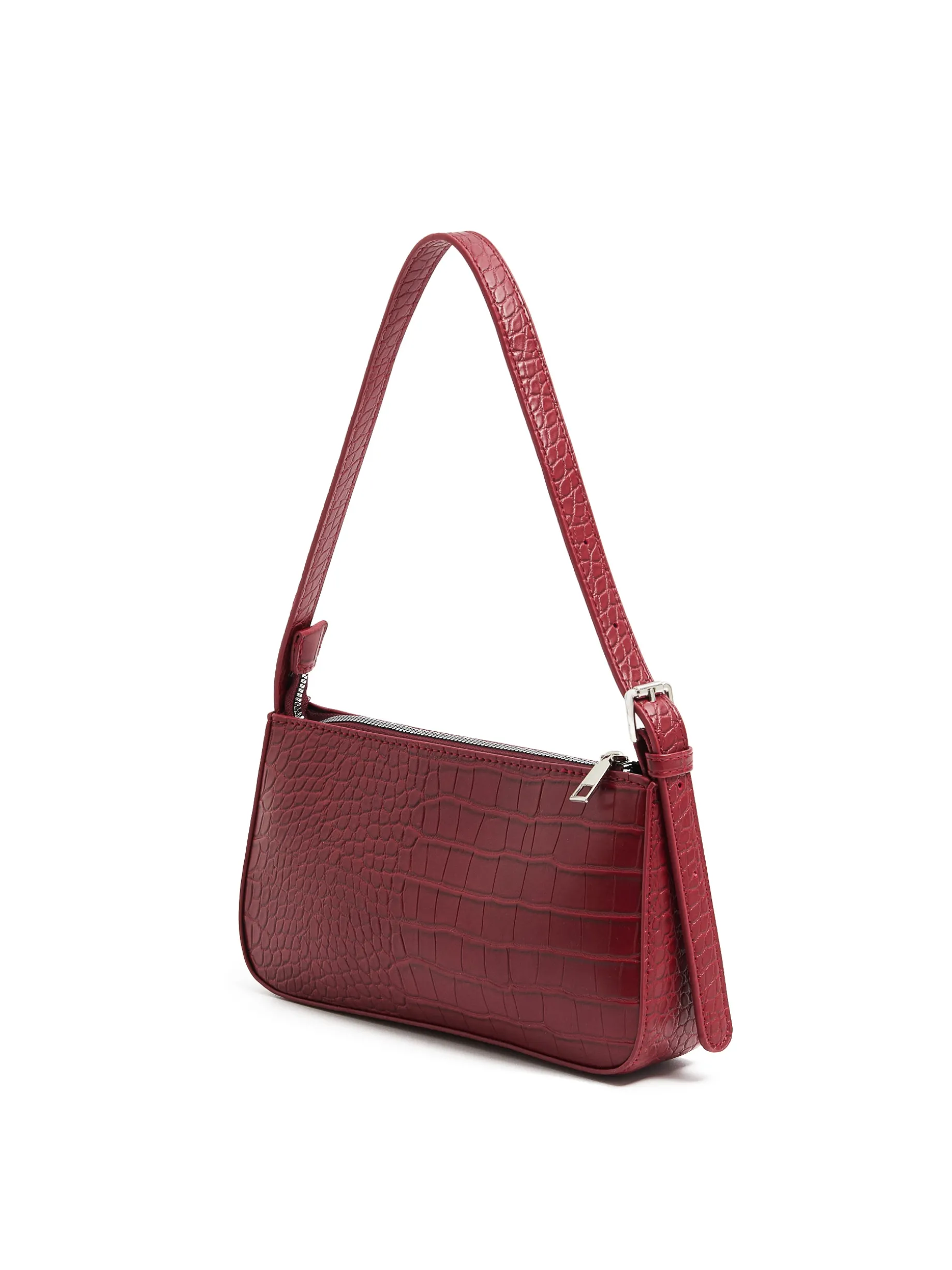 Mała damska torebka z imitacji krokodylej skóry. Idealny dodatek do eleganckich sukienek, jak i casualowych stylizacji. mała torebka z imitacji skóry główna komora z zapięciem na zamek pasek z regulacją długości Wymiary torebki: 13cm x 25cm x 5,5cm