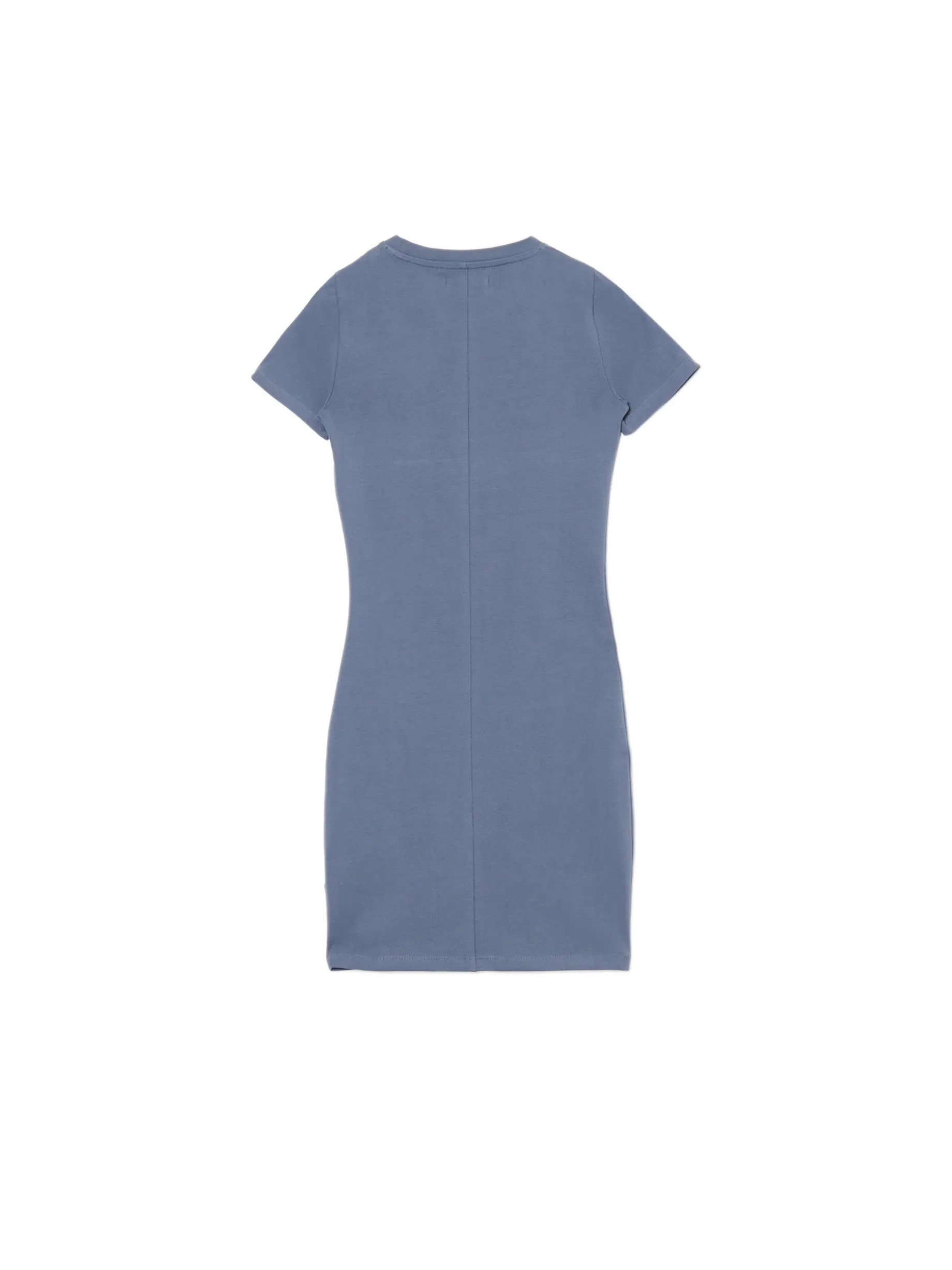 Damska sukienka z krótkim rękawem, uszyta z bawełny z dodatkiem elastycznych włókien. Model, który warto mięc awaryjnie w szafie. bawełna z dodatkiem elastycznych włókien dopasowany krój podkreślający sylwetkę krótkie, ścięte rękawy półokrągły dekolt z lamówką ozdobne przeszycie