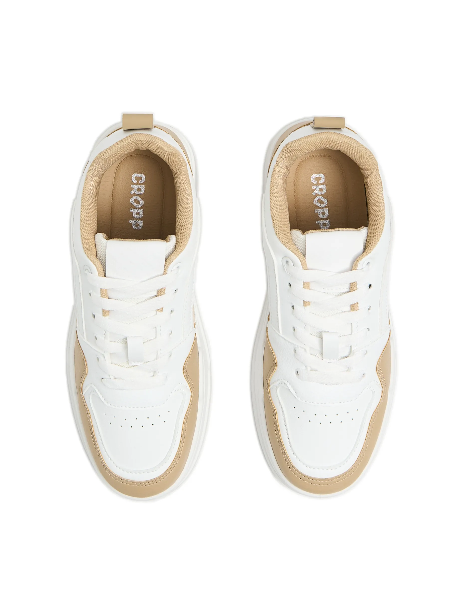 Damskie buty przejściowe typu sneakersy, uszyte z mieszanych materiałów. Solidna podeszwa i klasyczne kolory zwrócą na siebie uwagę w tłumie! sznurowane sneakersy w sportowym stylu gruba podeszwa wykonana z łączonych materiałów wiązanie na białe sznurówki ozdobne wstawki w kolorze beżowym