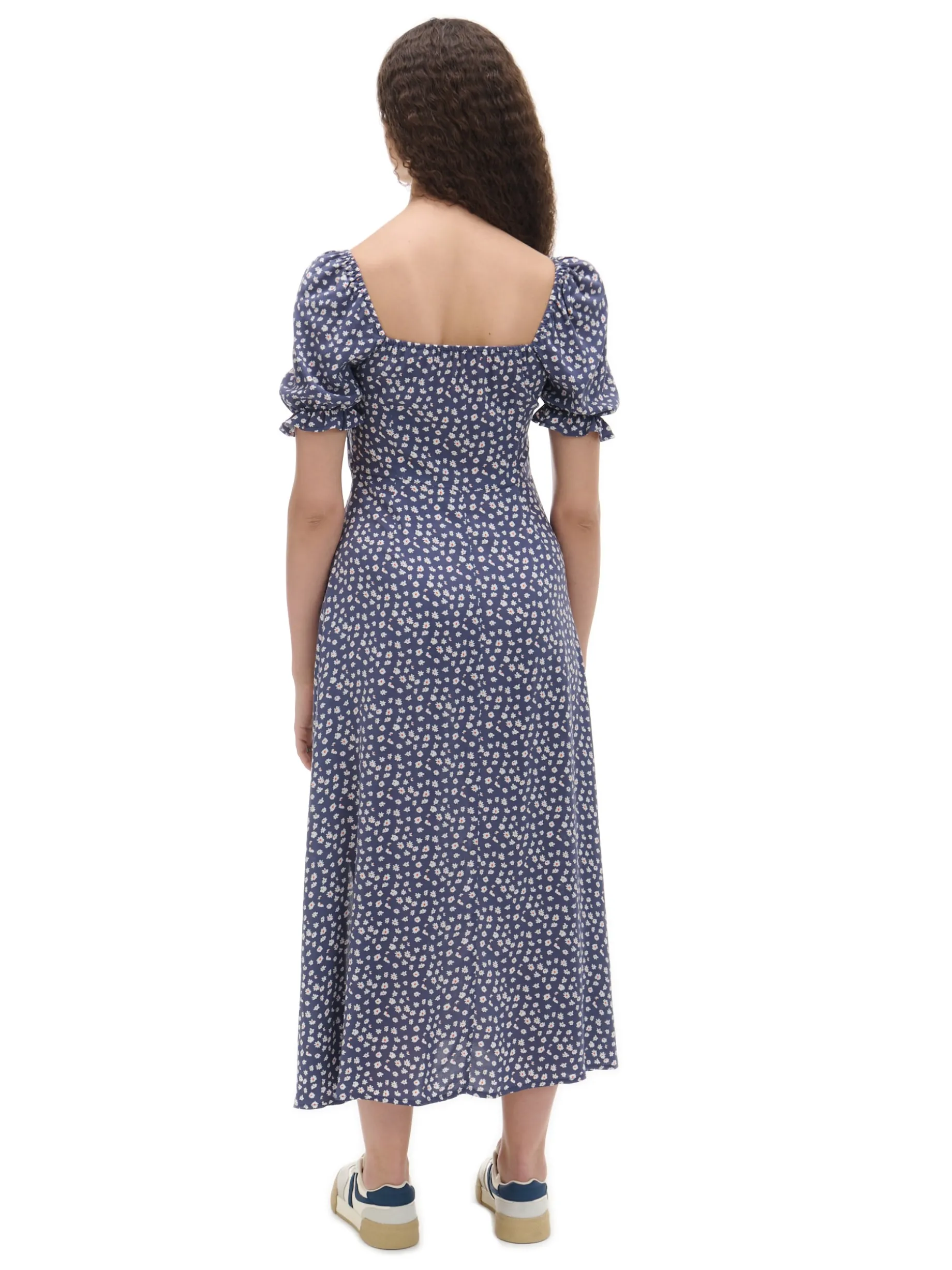Granatowa sukienka midi w stokrotki
