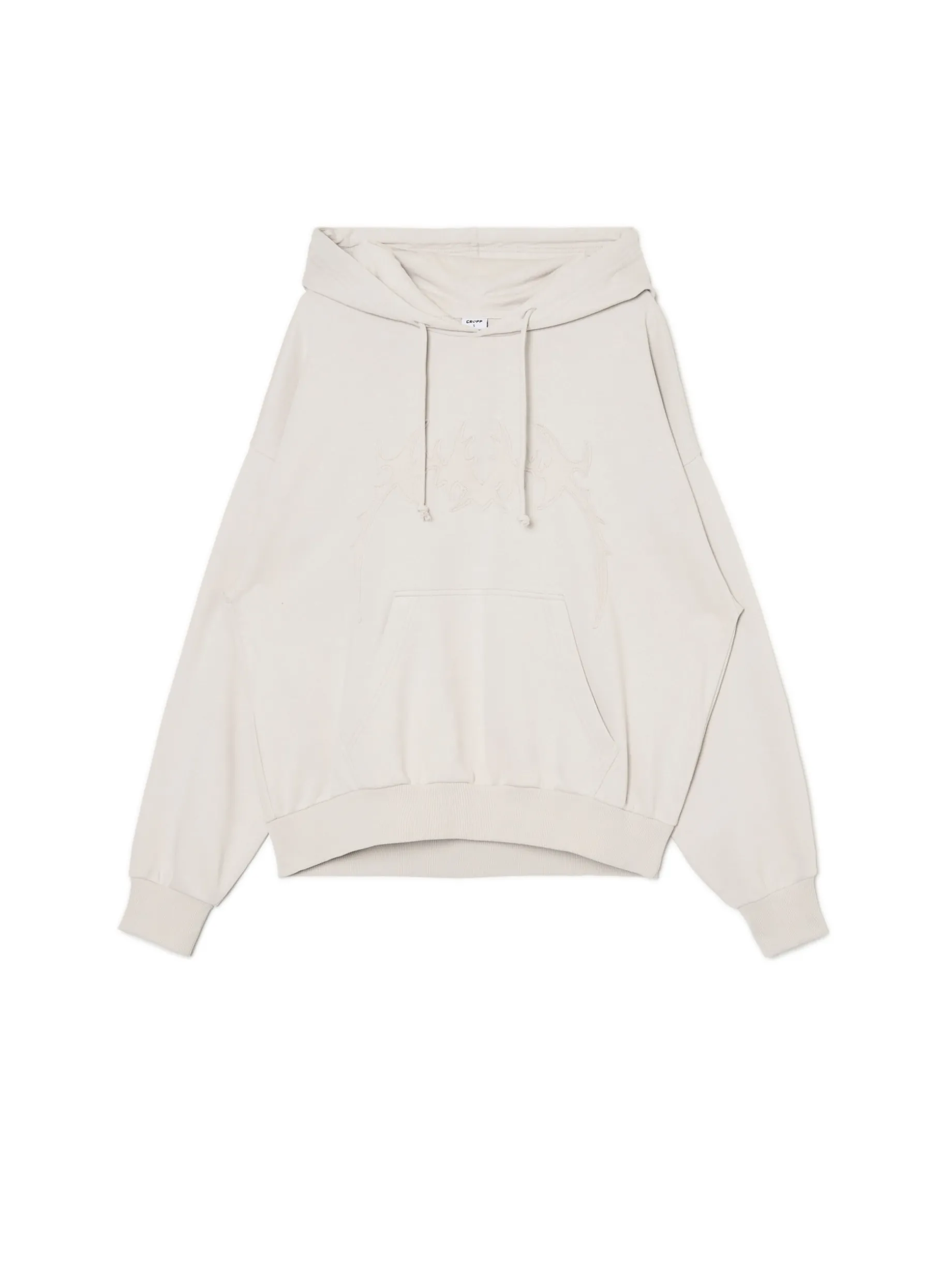 Jasnoszara bluza damska typu hoodie uszyta z mieszanki dzianin z bawełną french terry. Ozdobą tego modelu jest aplikacja z przodu w tym samym kolorze. dzianinowy materiał z bawełną krój oversize miękki kaptur z troczkami długie rękawy z obniżoną linią ramion kieszeń kangurka na przodzie dół i rękawy wykończone prążkowanym ściągaczem z przodu aplikacja Ten produkt należy do kolekcji UNISEX – zalecamy wybranie mniejszego rozmiaru niż zazwyczaj, jeśli chcesz uniknąć efektu oversize.