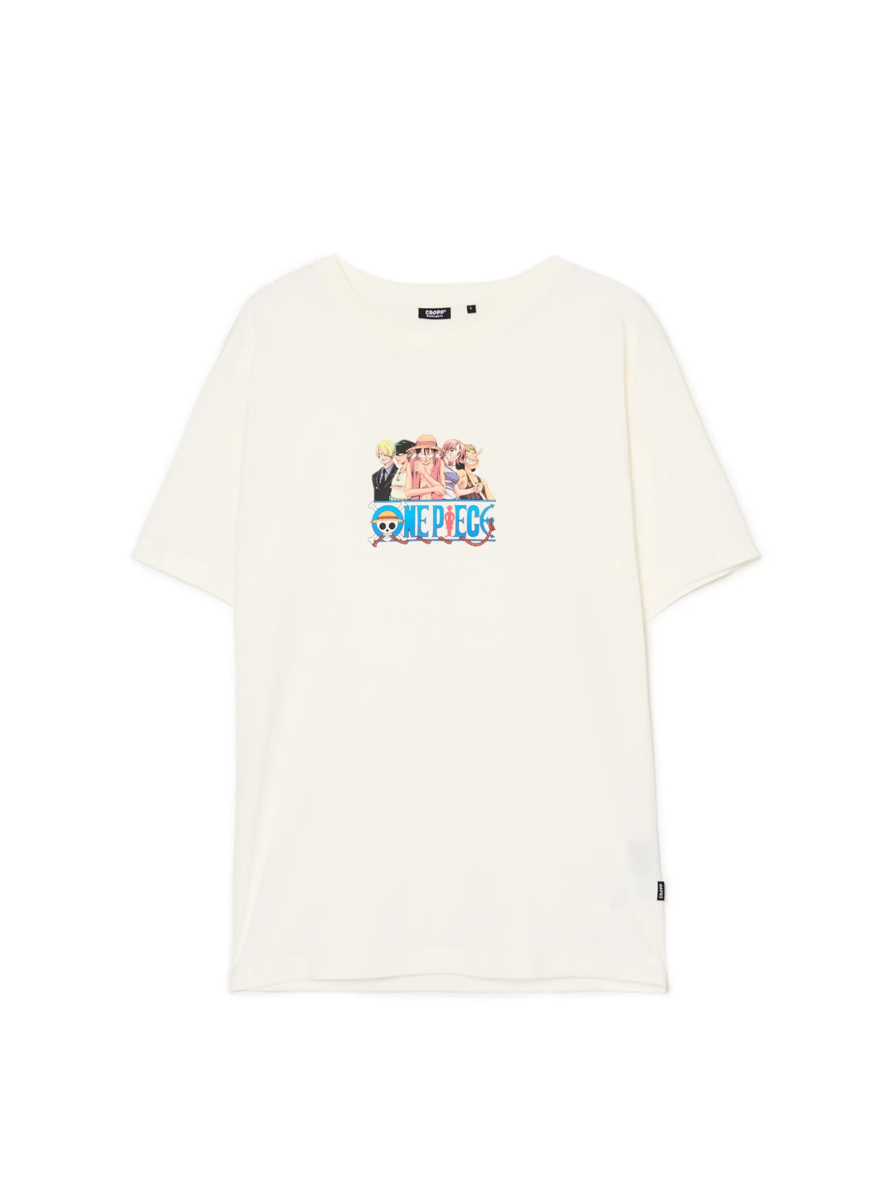 Mamy item dla miłośników przygód i japońskiej mangi. Męski T-shirt o regularnym kroju z krótkim rękawem i licencjonowanym nadrukiem serii One Piece. 100% bawełny regularny krój okrągły dekolt z lamówką krótkie, szerokie rękawy nadruk z motywem mangi © Eiichiro Oda/Shueisha, Toei Animation