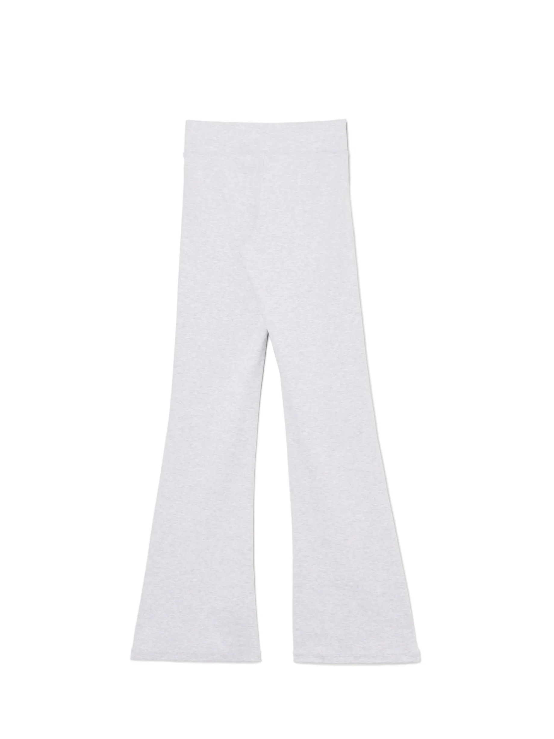 Damskie spodnie dresowe typu flare, uszyte z mieszanki dzianin z bawełną. Elastyczna guma w pasie podkreśli Twoją talię i zapewni komfort podczas każdej aktywności. dzianinowy materiał z bawełną wysoki stan podkreślający talię długie, lekko rozszerzane nogawki Wzrost modelki: 172 cm
