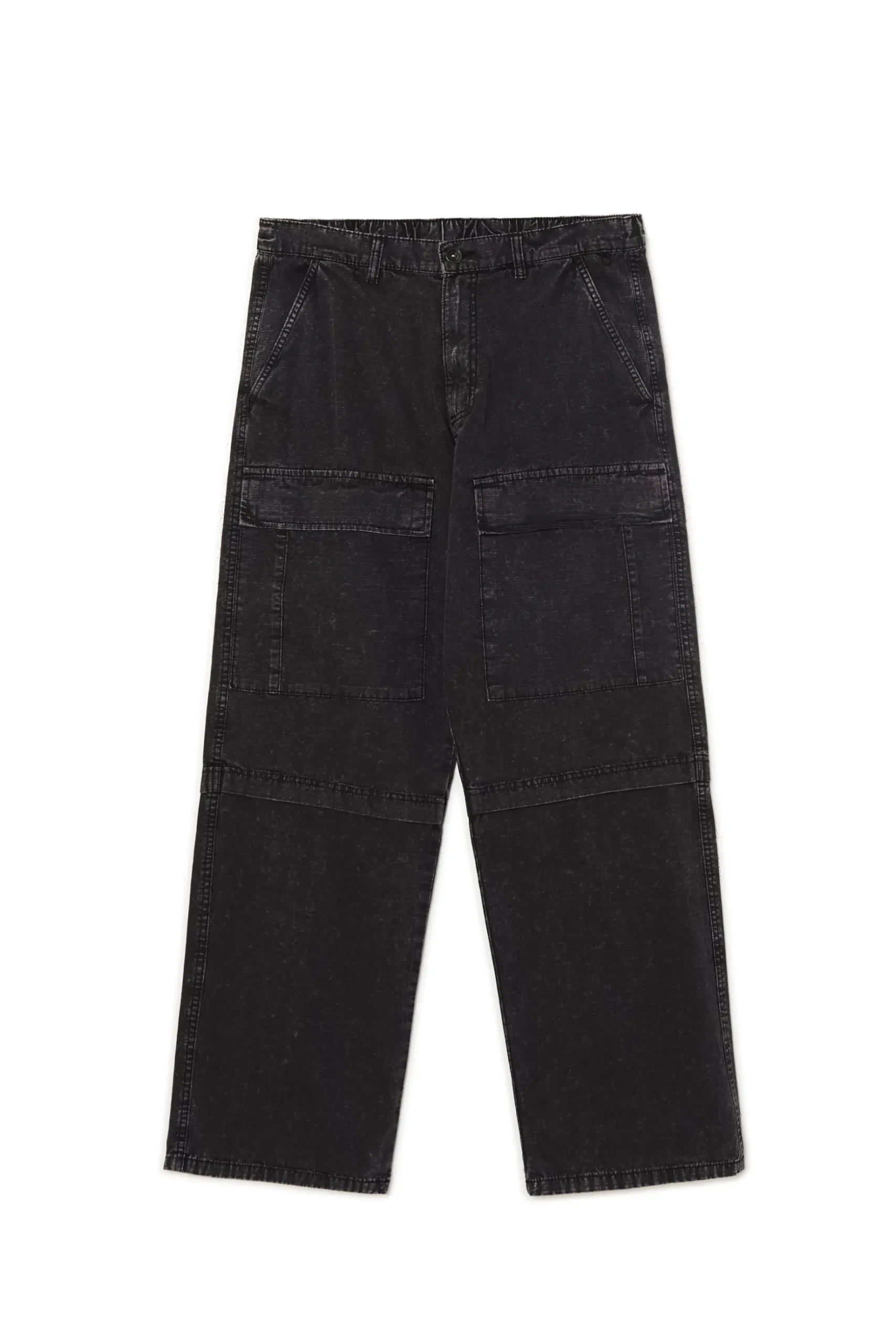Wygodne spodnie w streetowym stylu! Wyposażone w szerokie nogawki dla zachowania swobody ruchów i praktyczne kieszenie na Twoje itemy. Efekt sprania i dekoracyjne zamki na nogawkach nadają im miejski vibe. 100% bawełny denimowe spodnie o kroju wide leg w pasie od wewnątrz wszyta gumka zapięcie na zamek i guzik długie, szerokie nogawki 6 kieszeni, w tym kieszenie cargo naszywka na tylnej kieszeni ozdobne zamki przy nogawkach efekt sprania na całości Wzrost modela: 185 cm
