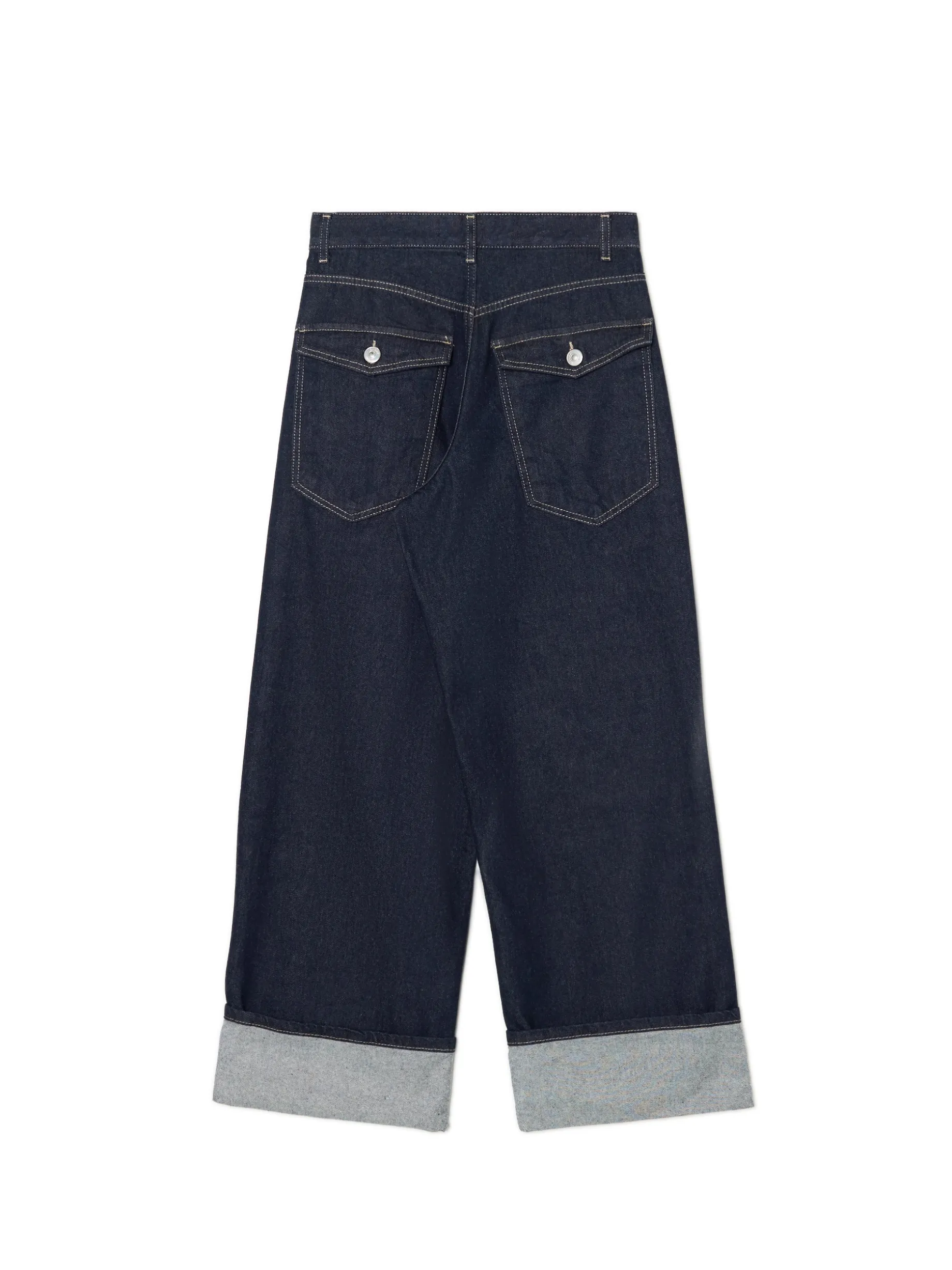 Damskie spodnie jeansowe uszyte z bawełnianej tkaniny z efektem surowego denimu. Ten wygodny i stylowy item fituje ze sportowym lub casualowym obuwiem. 100% bawełny obszerny krój baggy zapięcie na zamek i guzik podwinięte nogawki 4 kieszenie, w tym 2 zapinane na guziki jedna mała kieszeń na drobniaki szlufki na pasek
