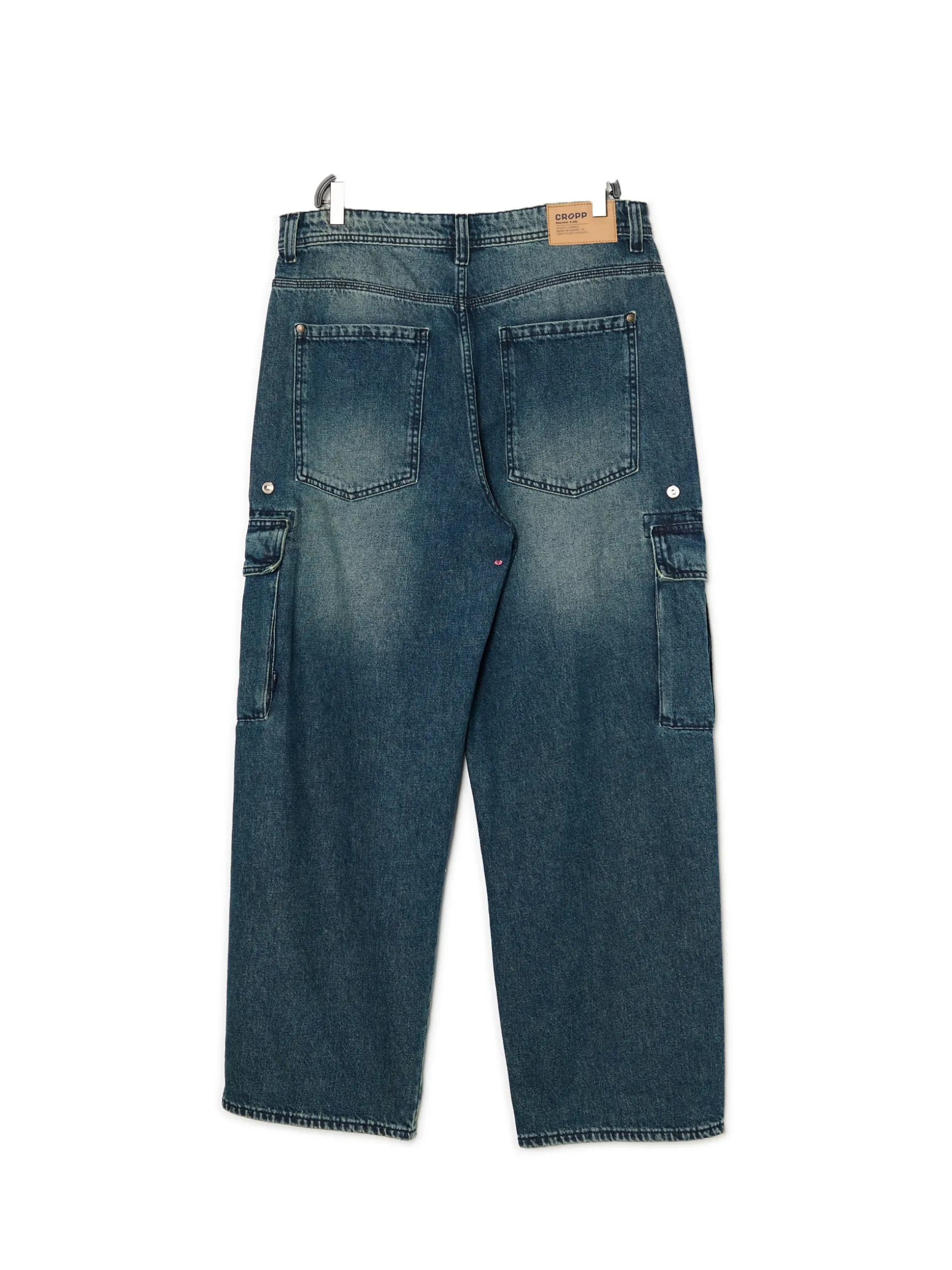 Grantowe męskie spodnie jeansowe o kroju super baggy, uszyte z bawełnianej tkaniny. Bardzo szerokie nogawki, praktyczne kieszenie i wygodne zapięcie zapewniają komfort. Efekt sprania i kontrastowe przeszycia na całości – odpowiedni vibe. 100% bawełny obszerny krój super baggy zapięcie na zamek i guzik długie, bardzo szerokie nogawki dwie skośne kieszenie z przodu naszywane kieszenie z tyłu dodatkowe kieszenie cargo na nogawkach szerokie szlufki na pasek kontrastowe przeszycia delikatny efekt sprania Wzrost modela: 185 cm