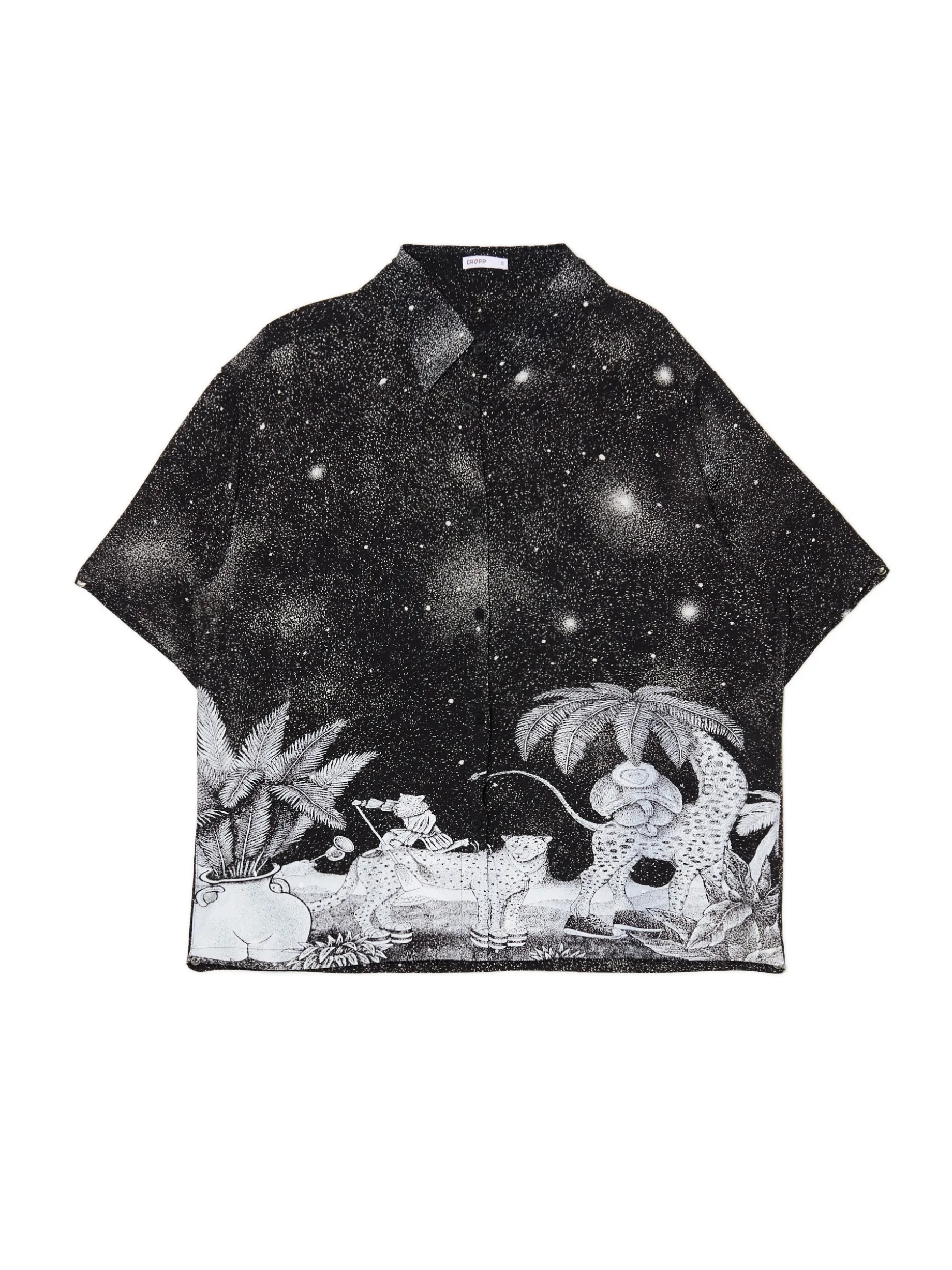 Damska koszula uszyta w 100% z wiskozy w kroju oversize. Nadruk na przodzie inspirowany pracami Dimy Kashtalyana. lekki materiał z wiskozą luźny krój oversize jednorzędowe zapięcie na guziki klasyczny kołnierzyk krótkie, swobodne rękawy nadruk w formie artystycznej grafiki Ten produkt powstał w ramach kolaboracji Cropp x DIMA. Sprawdź jego inne prace: @dkashtalyan i zainspiruj się twórczą energią!