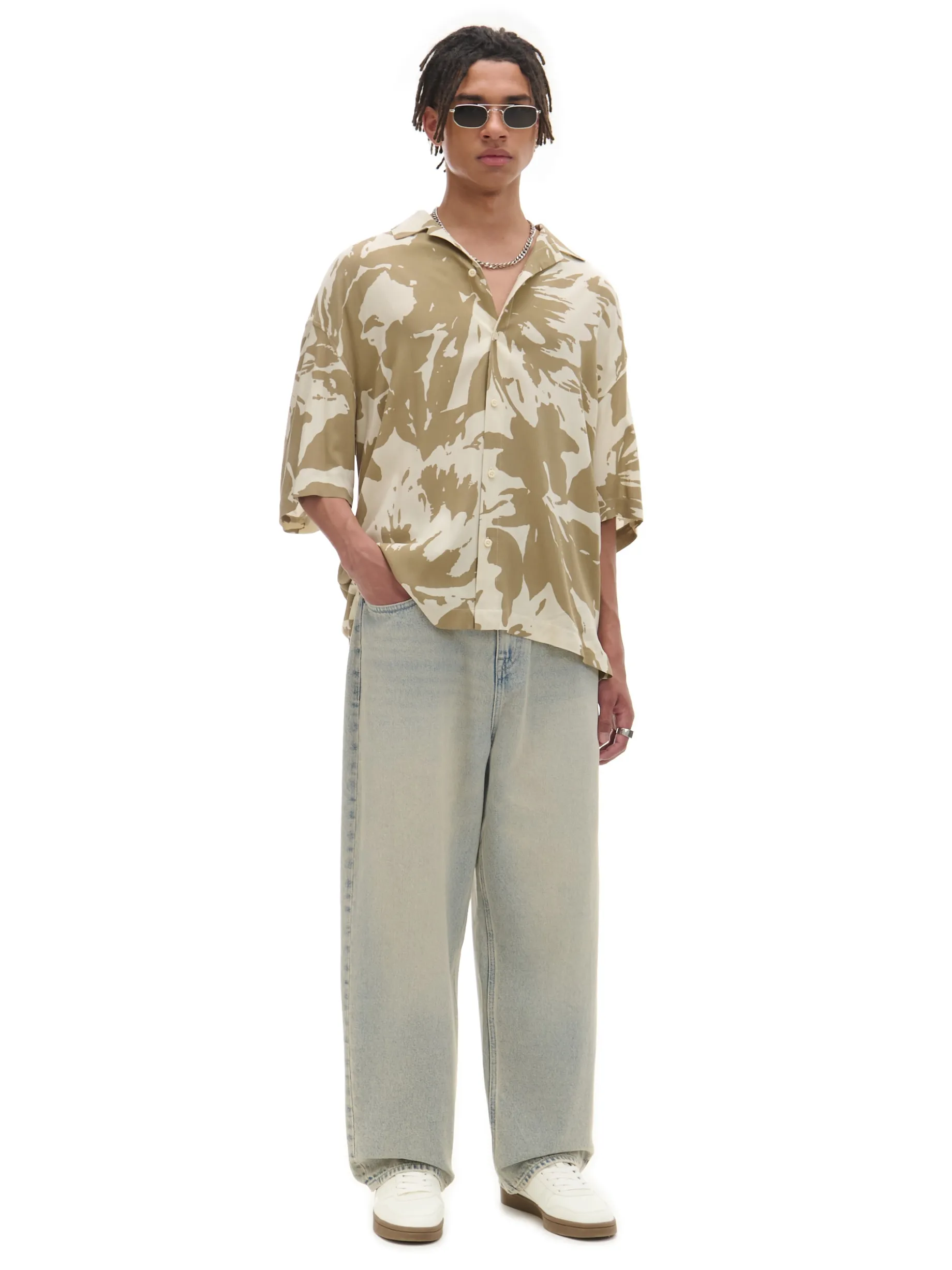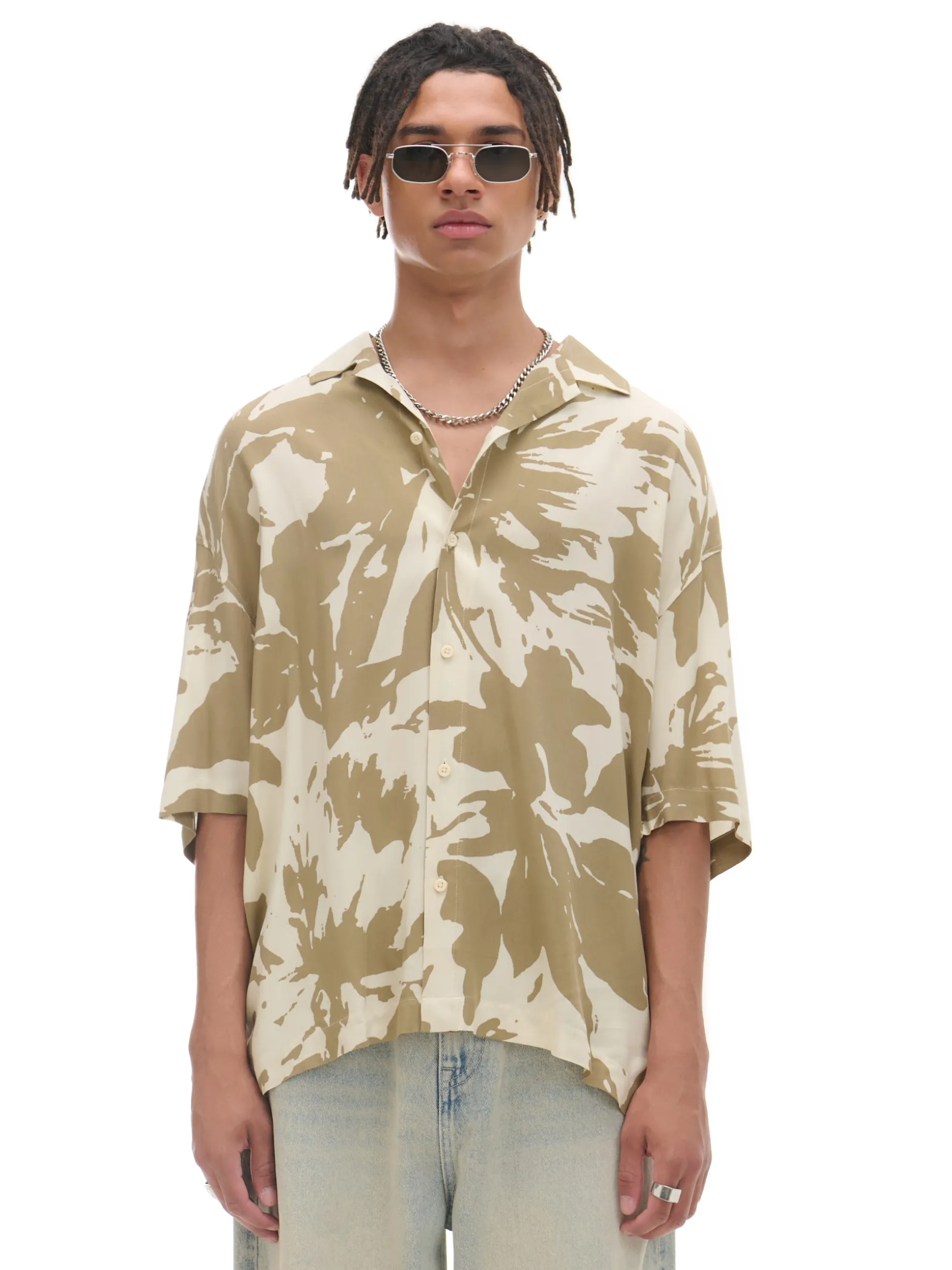 Lekka męska koszula, uszyta w 100% z wiskozy. Idealna na lato! lekki materiał z wiskozą wygodny fason comfort krótkie rękawy kubański kołnierzyk nadruk all over