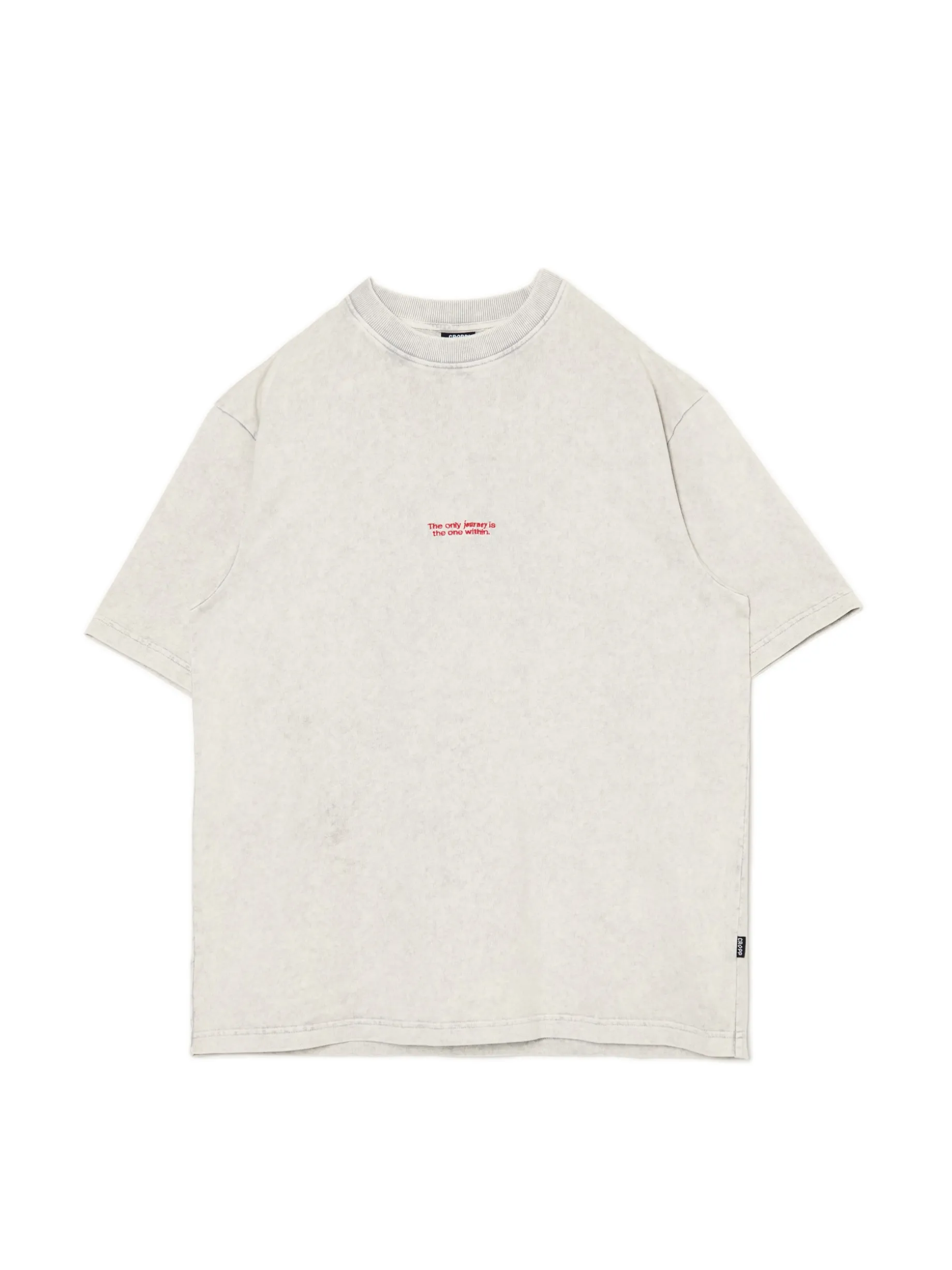 Koszulka męska z krótkim rękawem uszyta z bawełnianej dzianiny. Hafty w formie napisów po obu stronach, a dodatkowo na plecach duży, wyróżniajacy się nadruk. 100% bawełny wygodny krój comfort krótkie, swobodne rękawy delikatnie obniżona linia ramion autorskie hafty na całości oryginalny print Model prezentuje produkt w rozmiarze M/L. Wzrost modela: 185 cm
