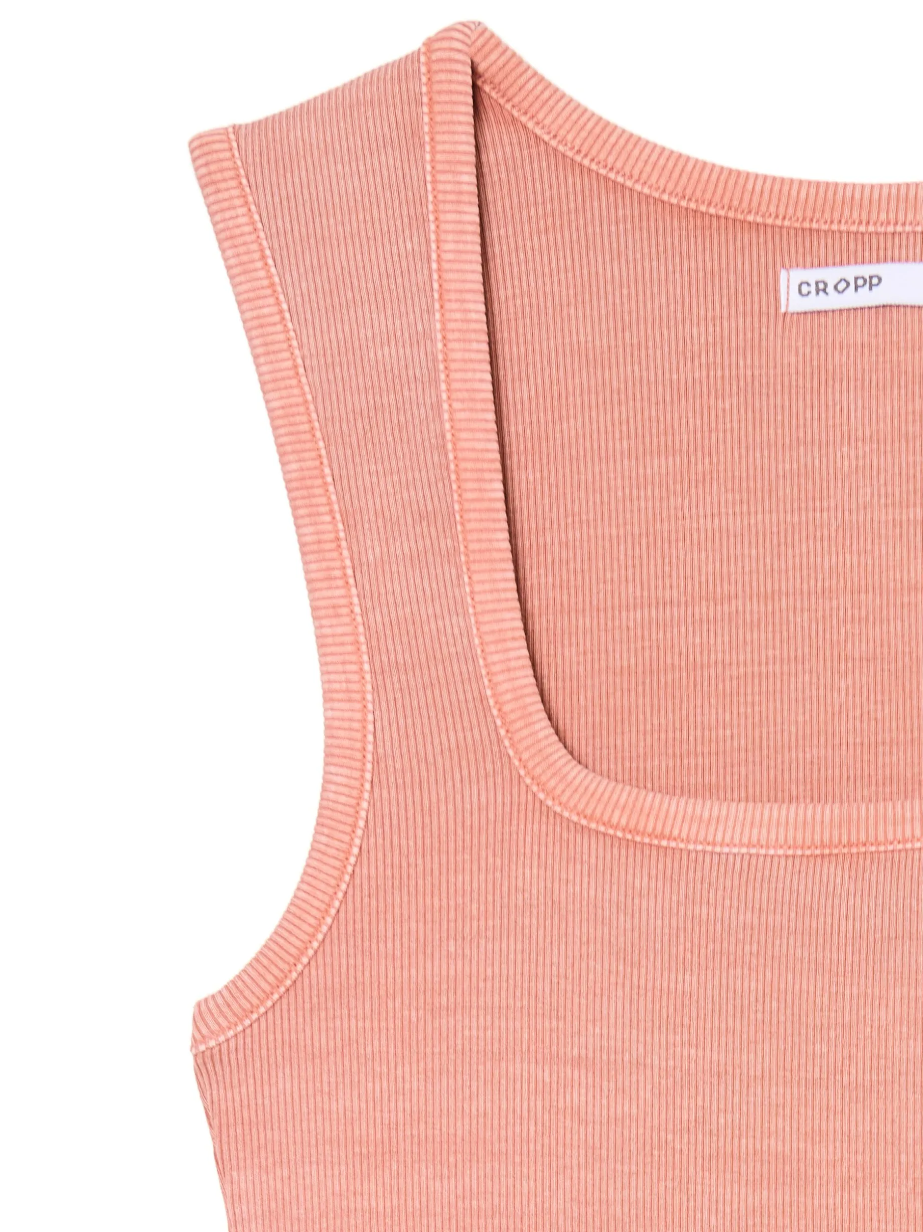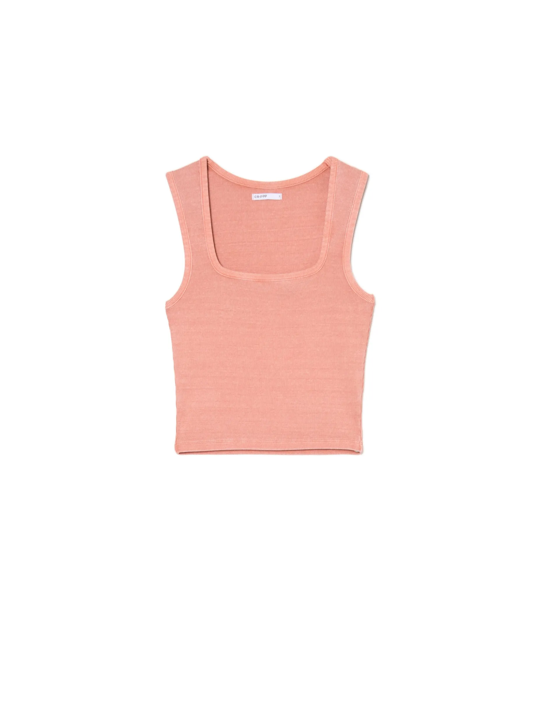 Damska koszulka na szerokich ramiączkach z kwadratowym, głębokim dekoltem. Ten item fituje zarówno z bluzą, jak i kurtką jeansową. Sprawdź! dzianina z domieszką elastycznych włókien dopasowany krój podkreślający sylwetkę szerokie ramiączka kwadratowy, elastyczny dekolt efekt sprania na całości