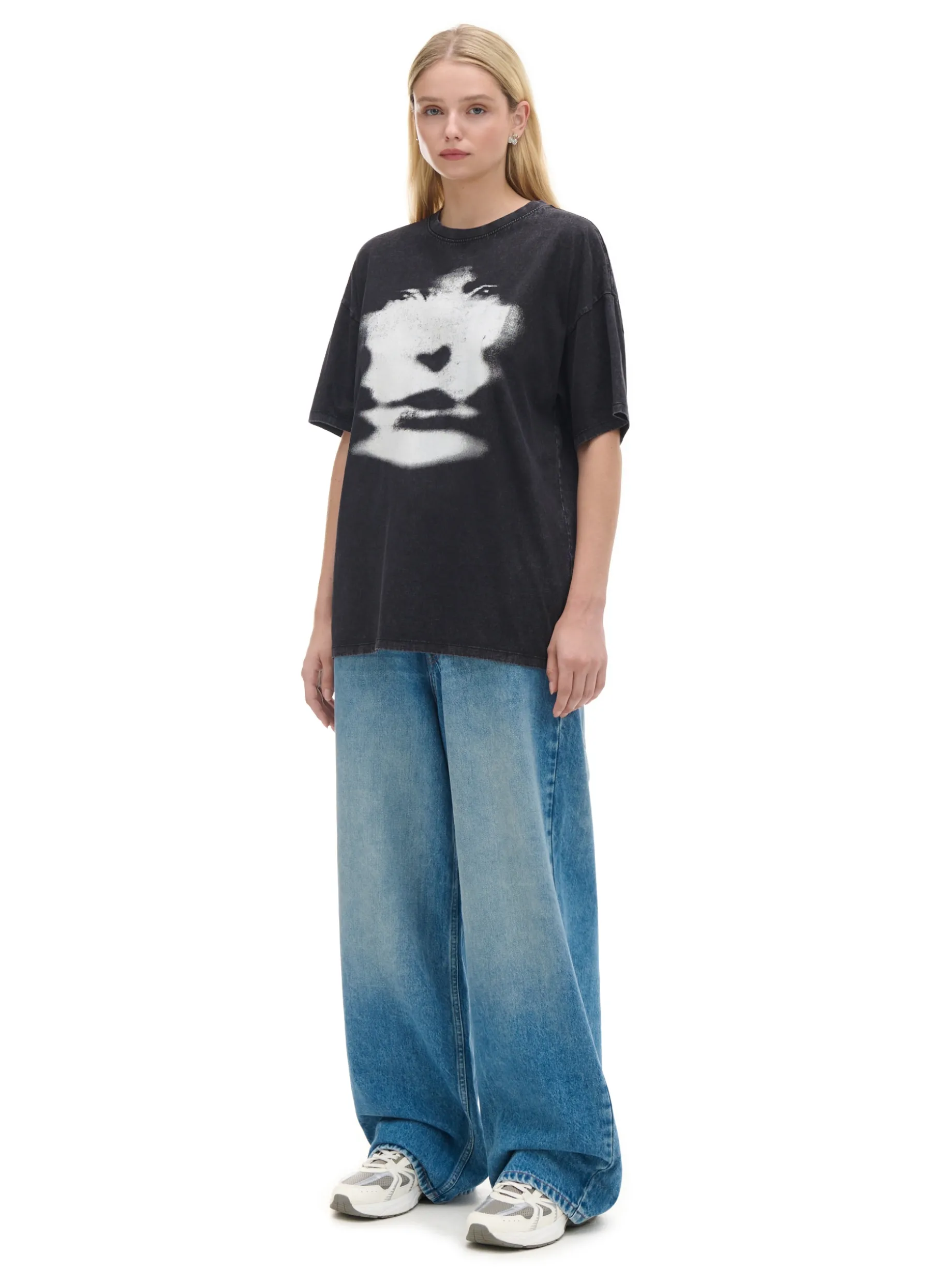 Damska koszulka z krótkim rękawem o kroju oversize, uszyta z bawełnianej dzianiny. Na przodzie duży, kontrastowy nadruk z ludzką twarzą. Tylko dla odważnej! 100% bawełny krój oversize krótkie, swobodne rękawy duży nadruk z przodu Ten produkt należy do kolekcji UNISEX – zalecamy wybranie mniejszego rozmiaru niż zazwyczaj, jeśli chcesz uniknąć efektu oversize.