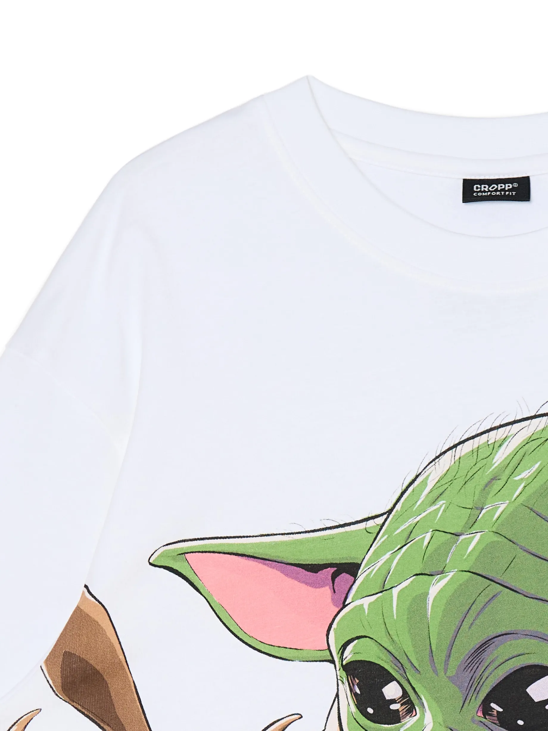 Męska koszulka z krótkim rękawem typu comfort uszyta z bawełny. Na przodzie uroczy Baby Yoda z serii The Mandalorian. Wrzuć słodziaka do koszyka! 100% bawełny wygodny krój comfort krótkie, szerokie rękawy licencjonowany nadruk na przodzie z Din Grogu © & TM Lucasfilm Ltd.