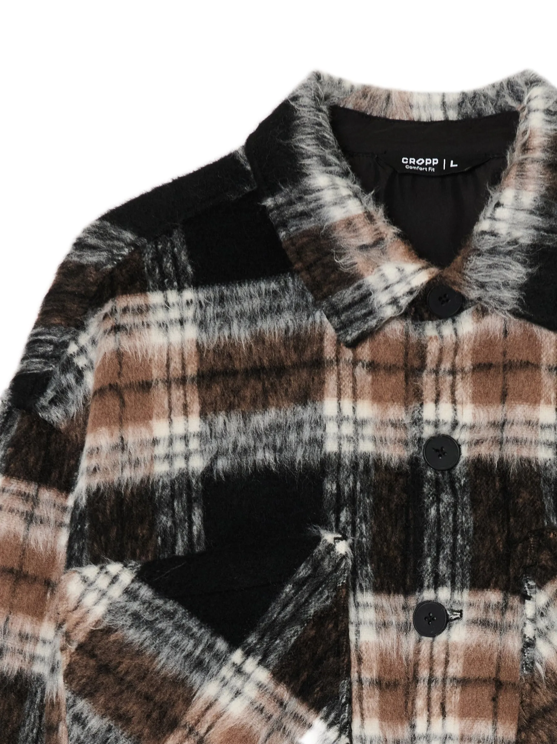 Jesienne stylizacje mode on! Męska koszula uszyta z solidnej tkaniny z efektem długiego włosa. Wygodne zapięcie na guziki i 4 praktyczne kieszenie zapewniają komfort. Ciepło gwarantuje podszewka i przyjemny w dotyku materiał. uszyta z solidnej tkaniny wygodny krój comfort zapięcie na guziki na całej długości klasyczny kołnierzyk długie rękawy zakończone mankietem z guzikiem dwie naszywane kieszenie piersiowe dwie kieszenie po bokach wzór w kratę na całej powierzchni Wzrost modela: 185 cm