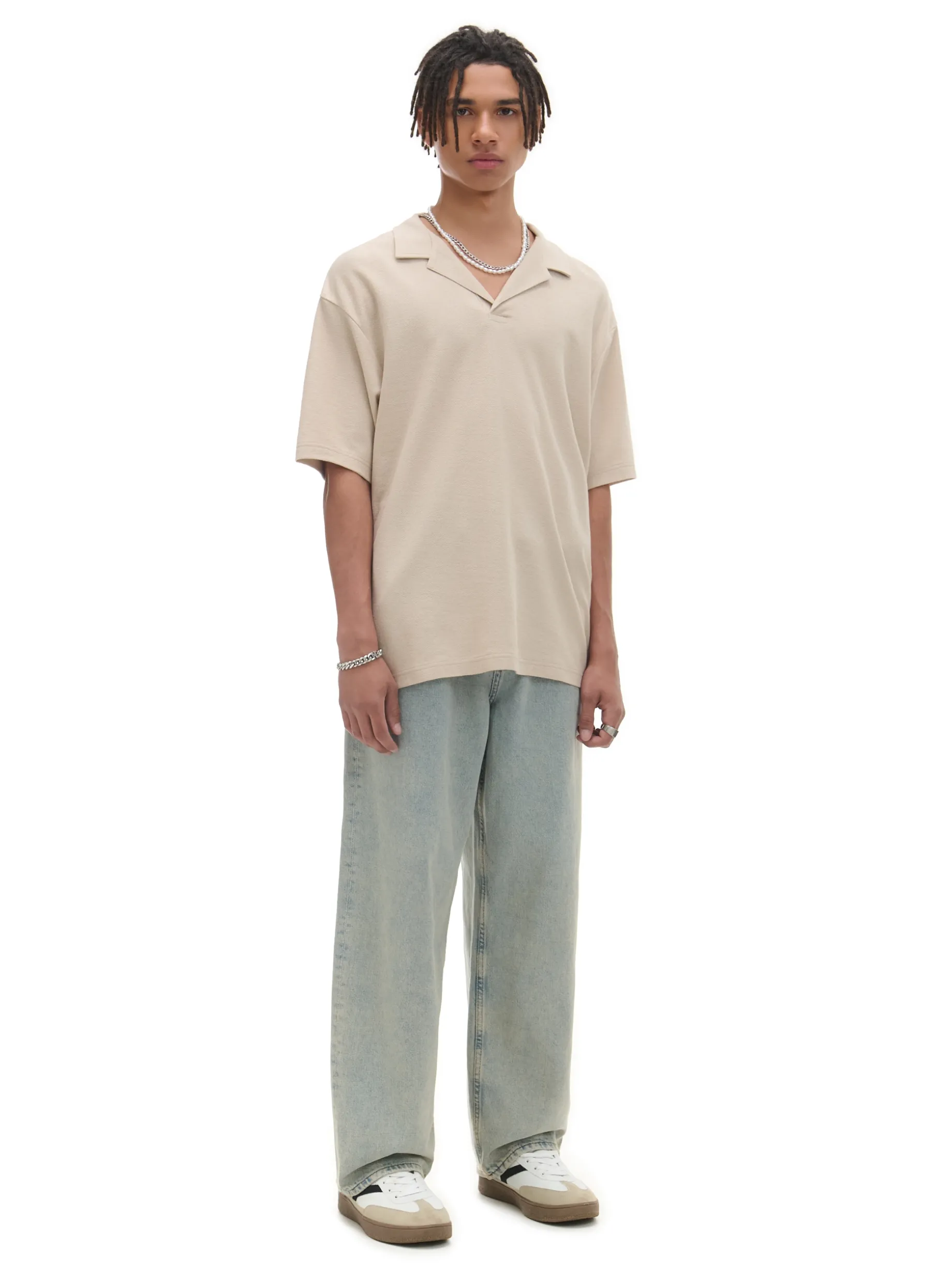 Męska bawełniana koszulka polo z charakterystycznym kołnierzykiem typu cuban. Wygodny, swobodny krój i miękka tkanina to idealna propozycja na ciepłe dni! 100% bawełny wygodny krój comfort krótkie, swobodne rękawy kubański kołnierzyk