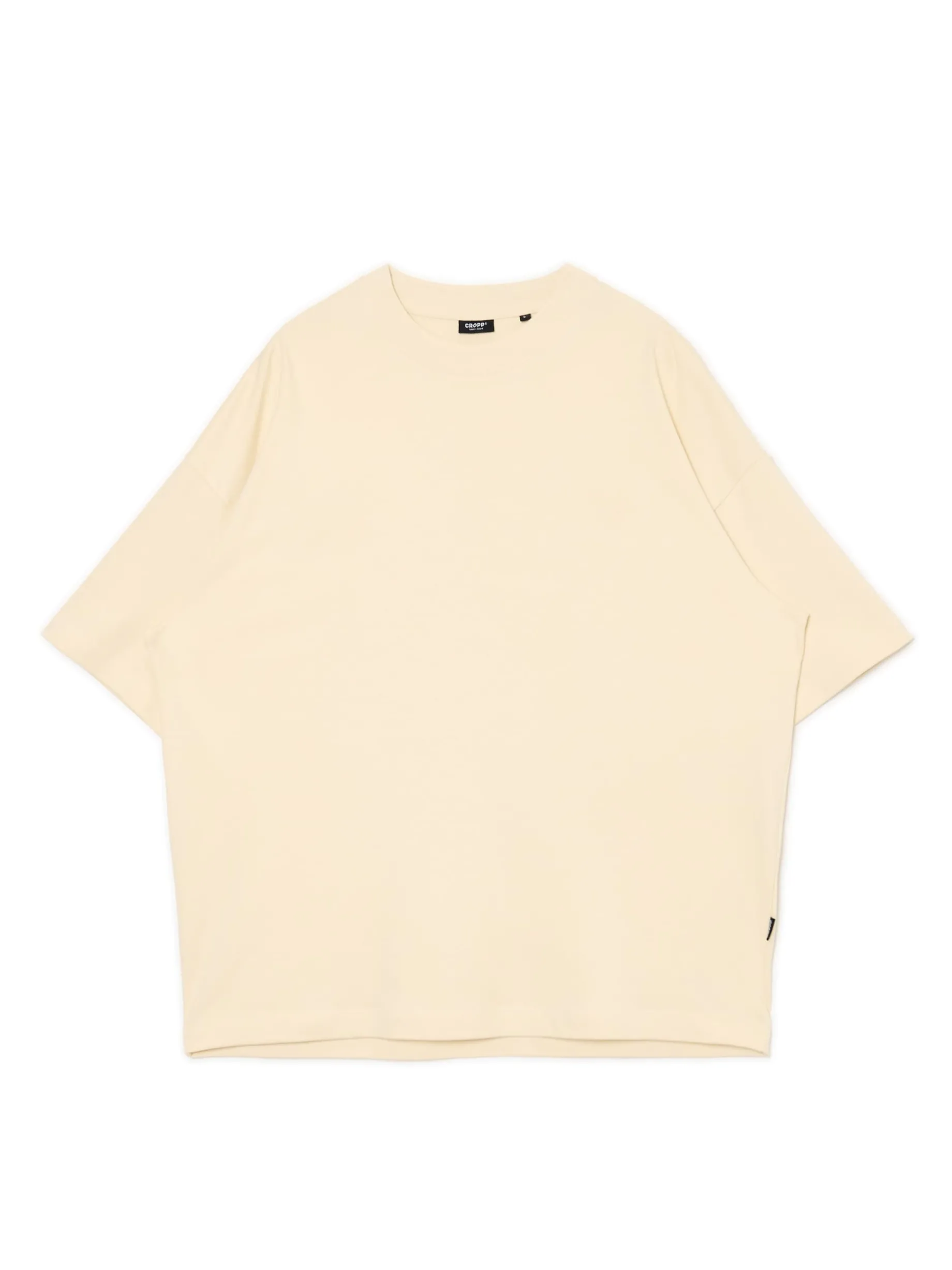 Męski kremowy T-shirt z krótkim rękawem, uszyty z gładkiej bawełny. Basic, który warto mieć w szafie! 100% bawełny koszulka typu basic krótkie, szerokie rękawy zabudowany dekolt z lamówką