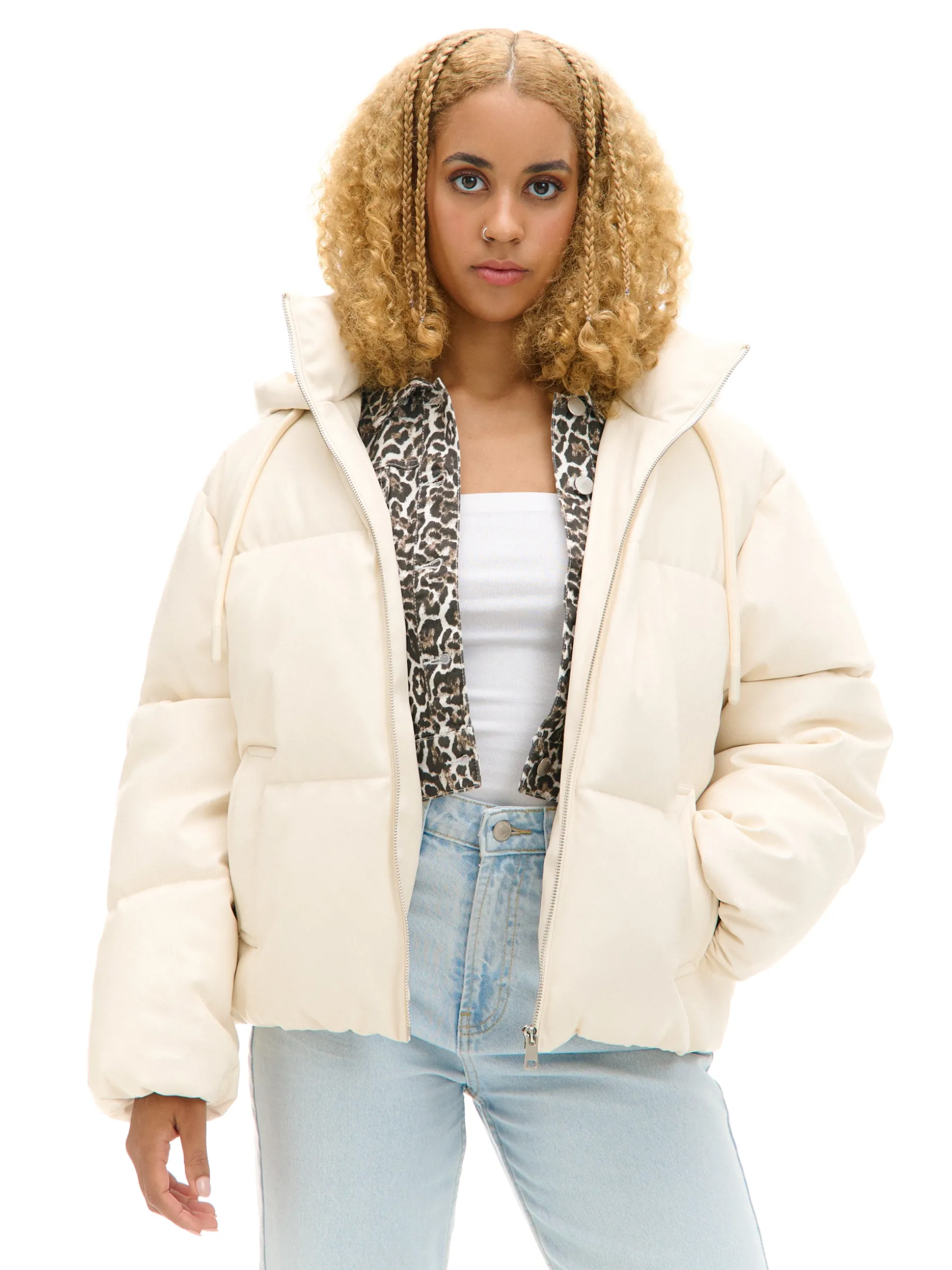 Kremowa kurtka puffer z kapturem