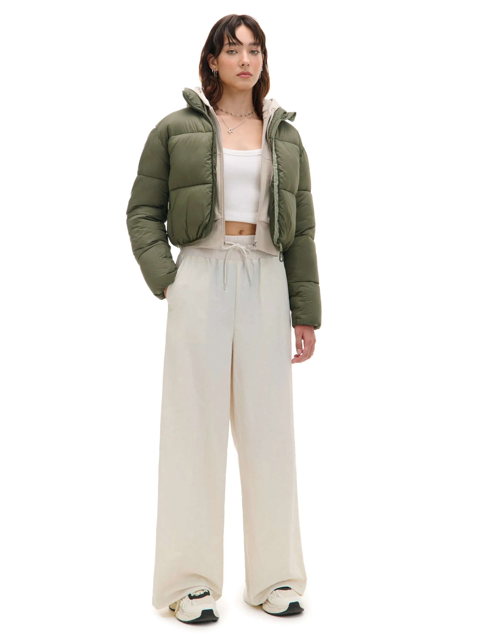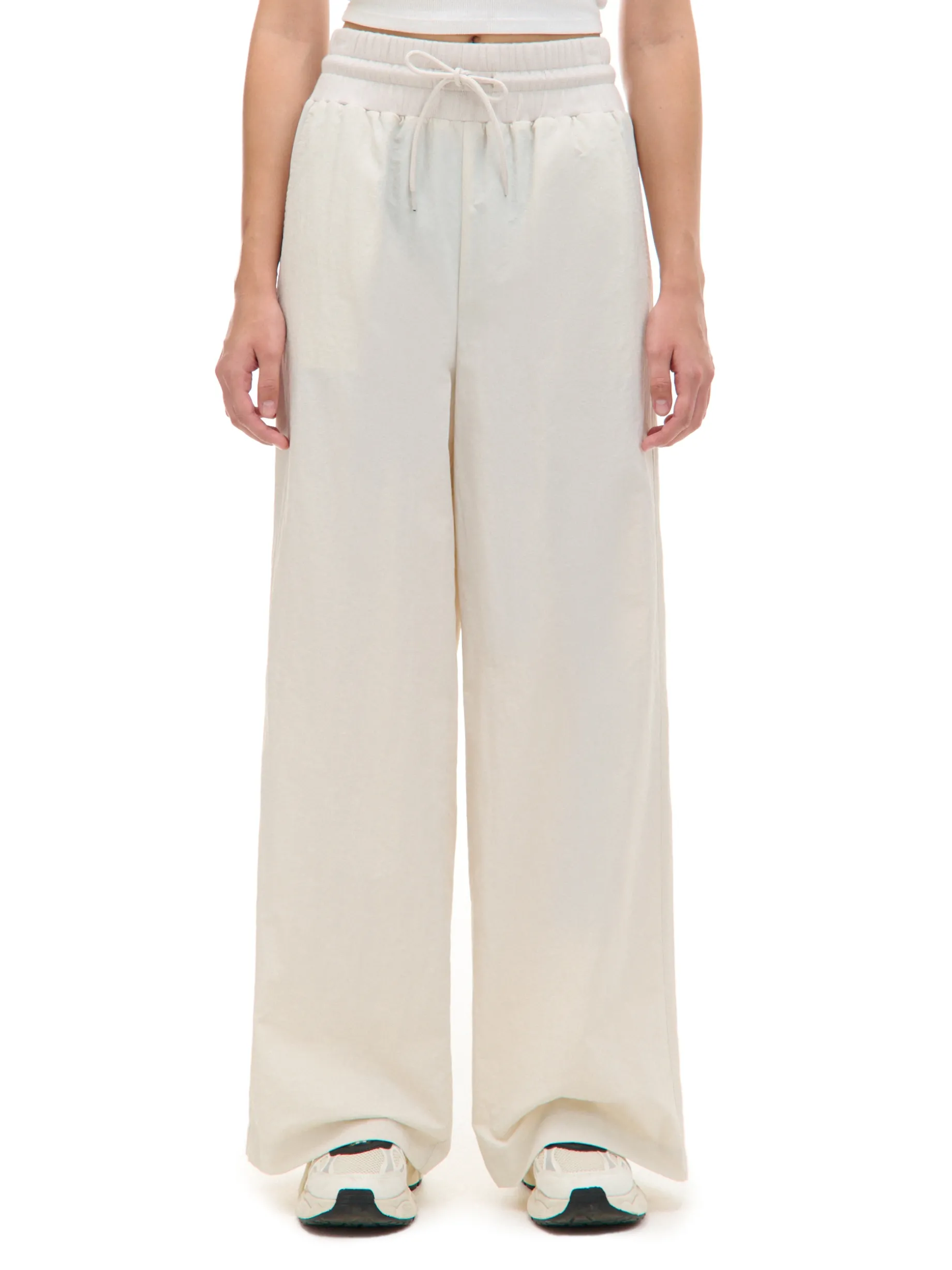 Kremowe damskie spodnie z szerokimi nogawkami, uszyte z trwałej tkaniny. Komfort zapewnia luźny krój, który nie krępuje ruchów. Przygotuj się na nowy sezon! uszyte z gładkiej tkaniny obszerny krój baggy wysoki stan długie, szerokie nogawki elastyczna gumka w pasie sznurek w pasie Tworzy zestaw z modelem 185AR-01X .