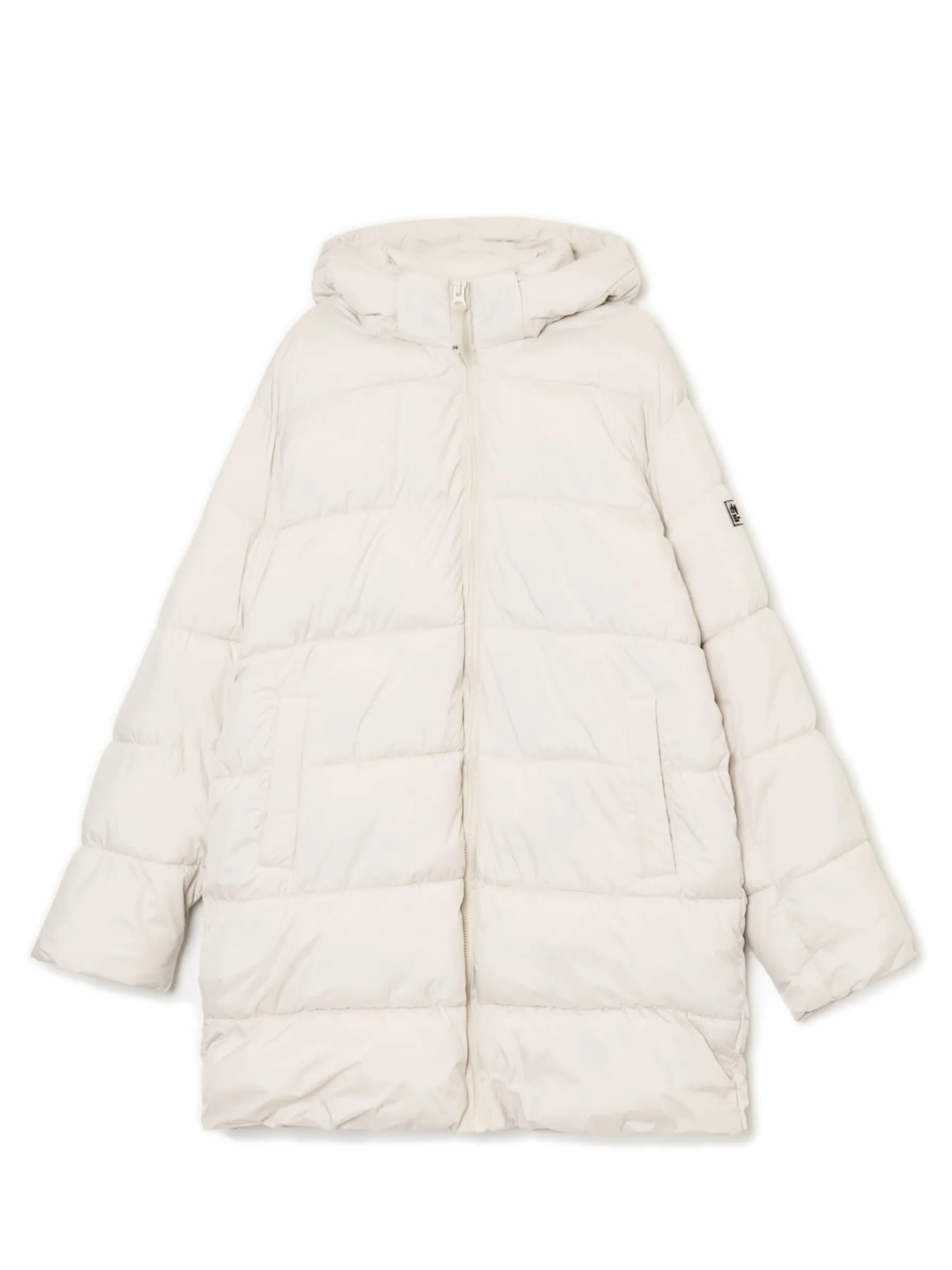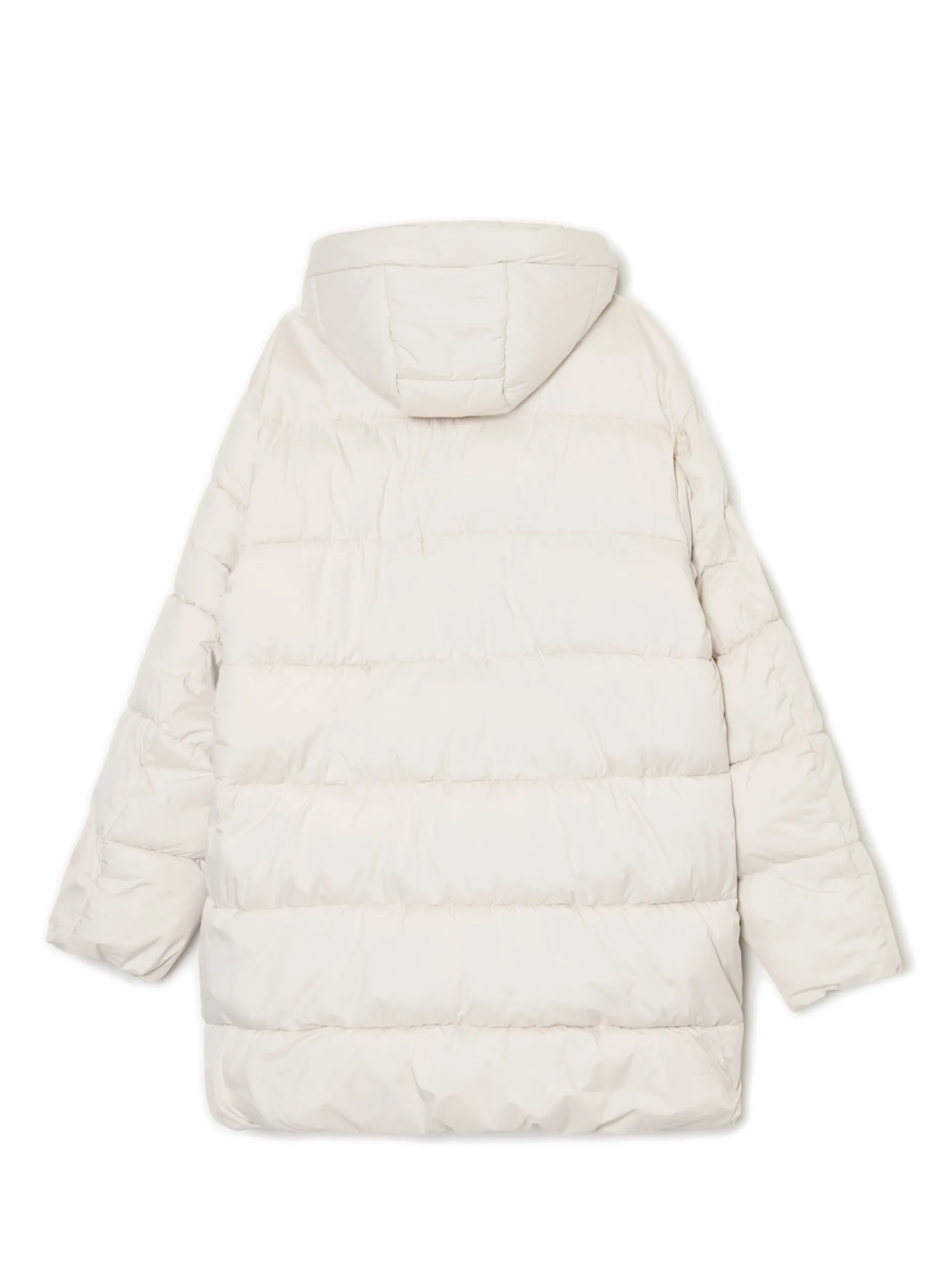 Kremowy pikowany płaszcz z kapturem
