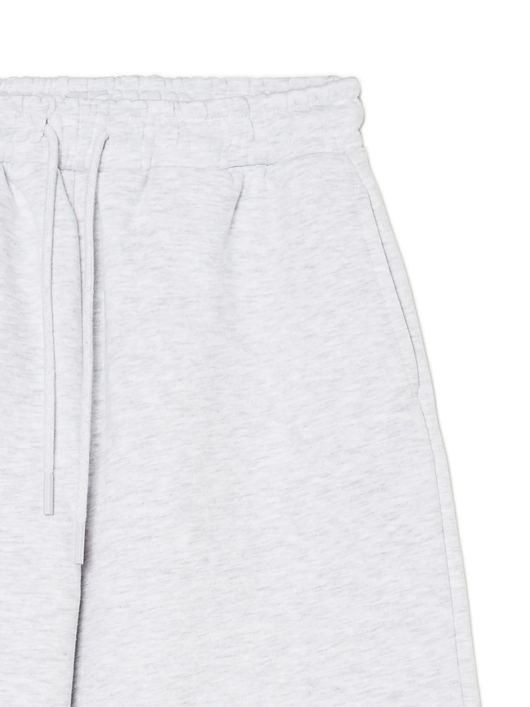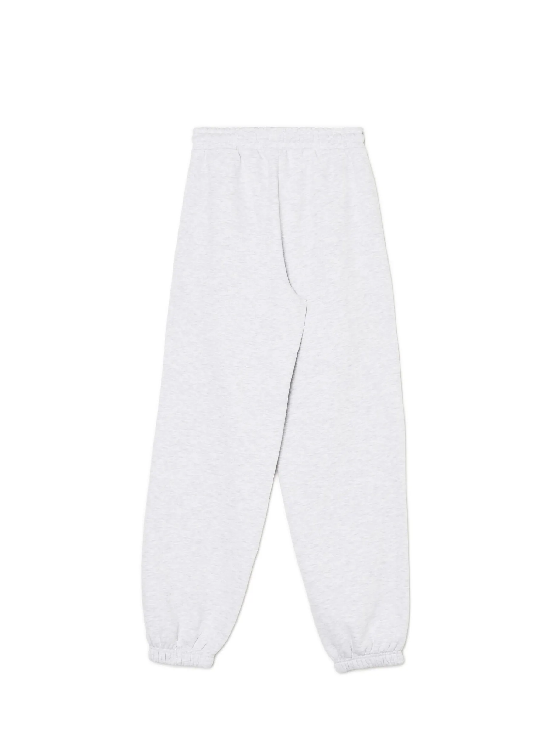 Jasnoszare melanżowe spodnie damskie typu jogger, uszyte z mieszanki dzianin z bawełną. Komfort zapewniają luźna nogawka ze ściągaczem oraz regulacja w pasie. Dostępne inne kolory. wygodne spodnie z regulacją w pasie dzianinowy materiał z bawełną elastyczna gumka w pasie długie, swobodne nogawki wykończone ściągaczem dwie kieszenie po bokach