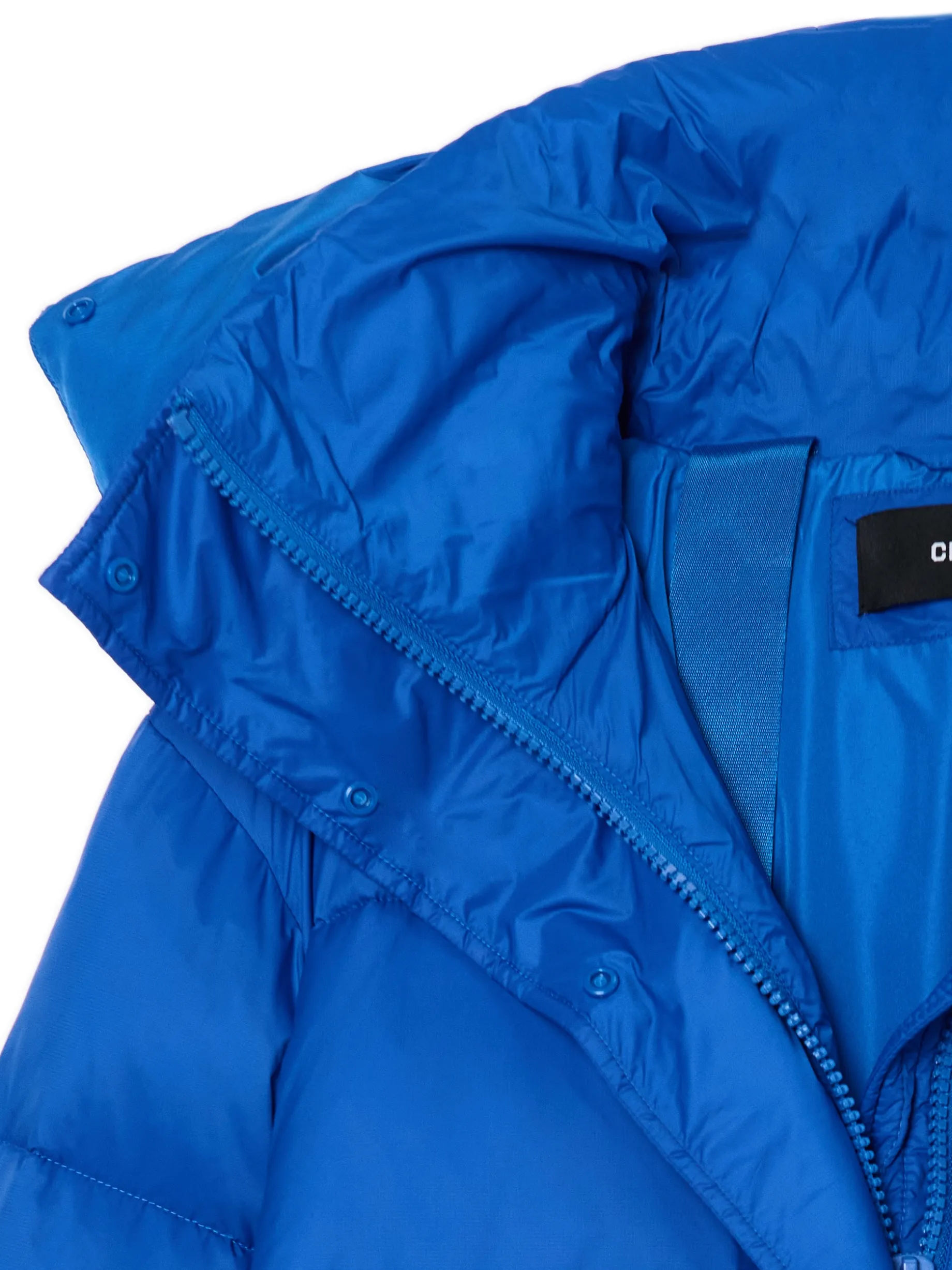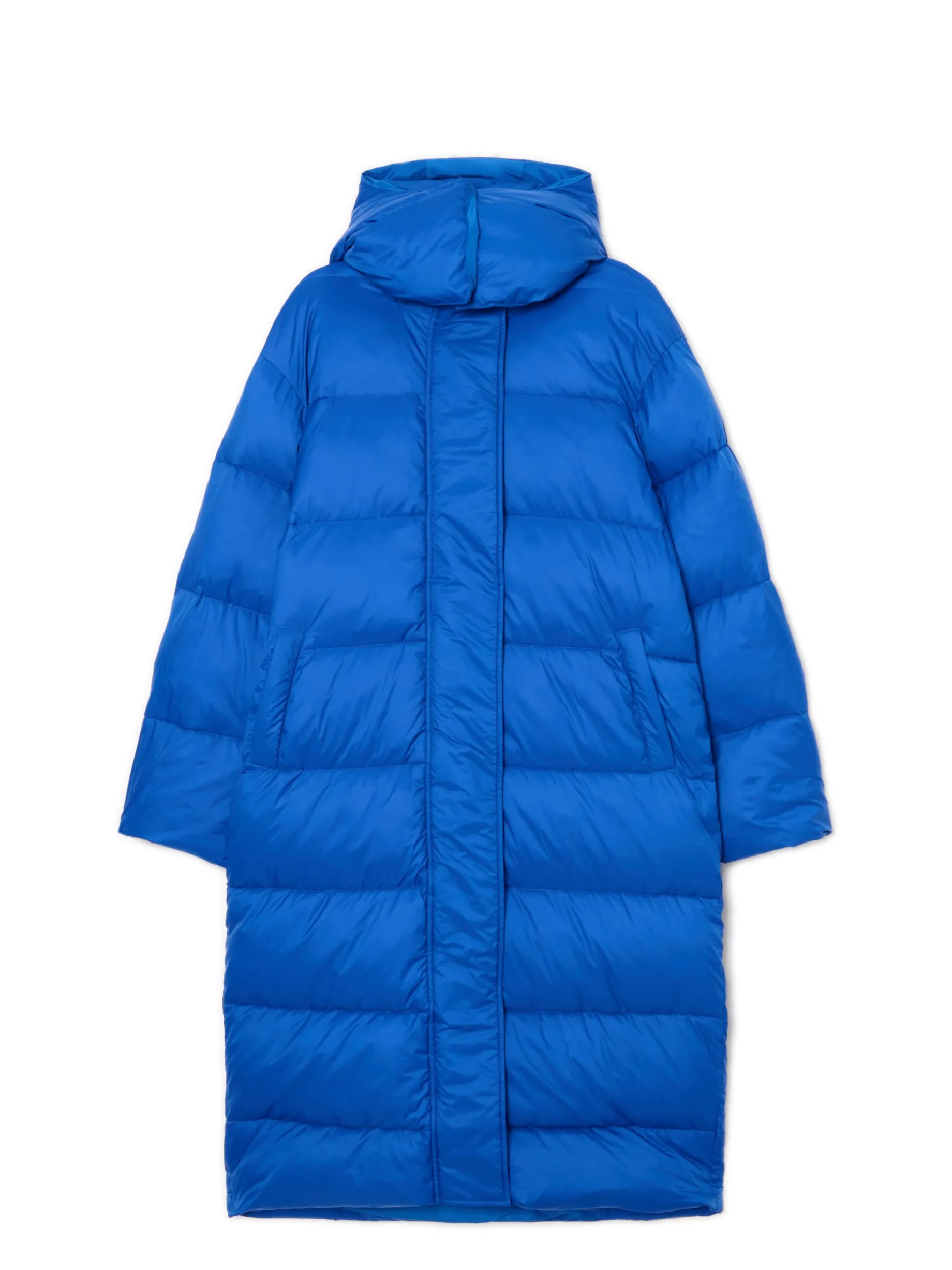 Niebieski pikowany płaszcz z kapturem