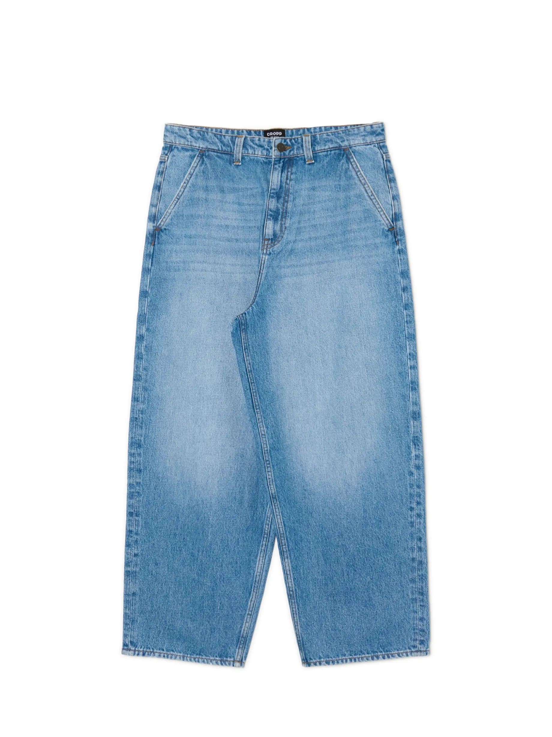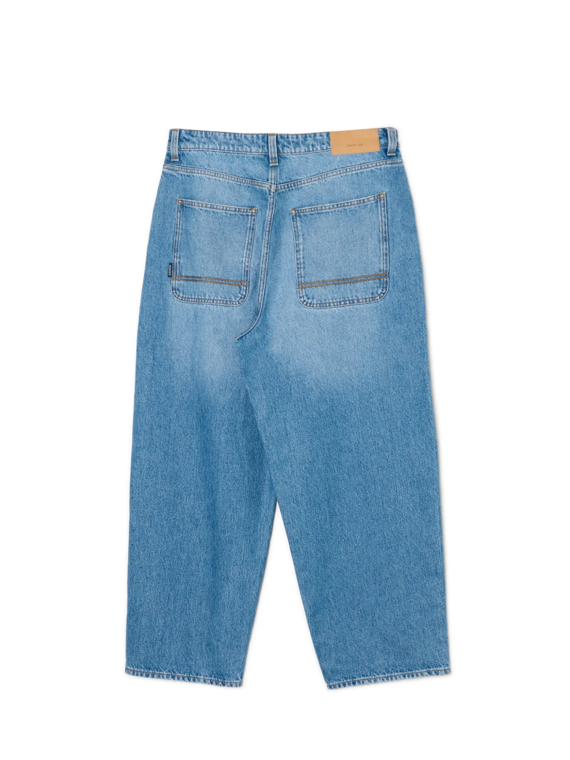Denimowe męskie spodnie o kroju skater, uszyte z bawełnianej tkaniny. Fason charakteryzuje się mocno obniżonym krokiem i bardzo szeroką nogawką dla zapewnienia komfortu noszenia. 100% bawełny streetowy fason skater zapięcie na suwak i guzik długie, szerokie nogawki skośne kieszenie po bokach naszywane kieszenie z tyłu efekt sprania na całości