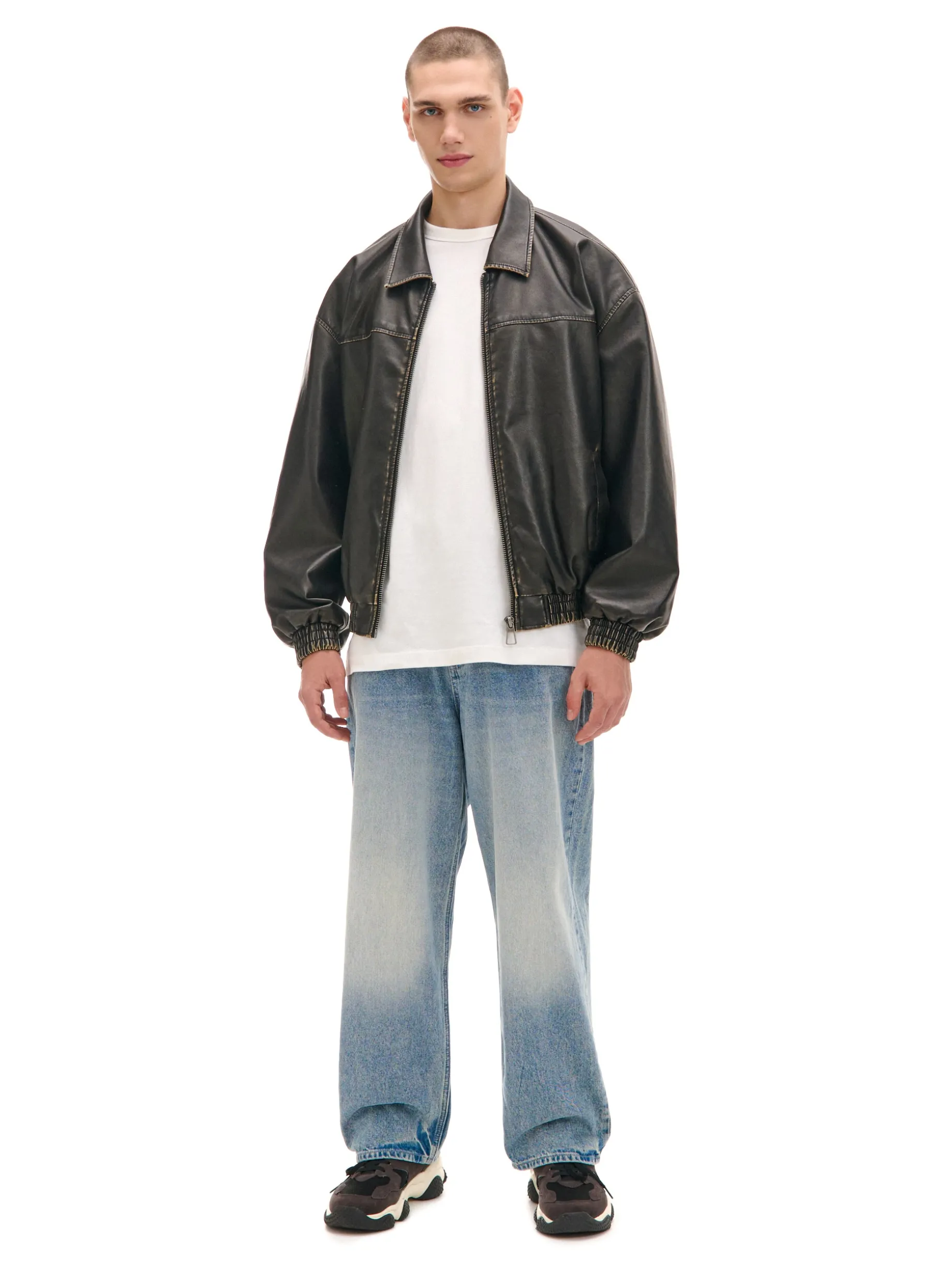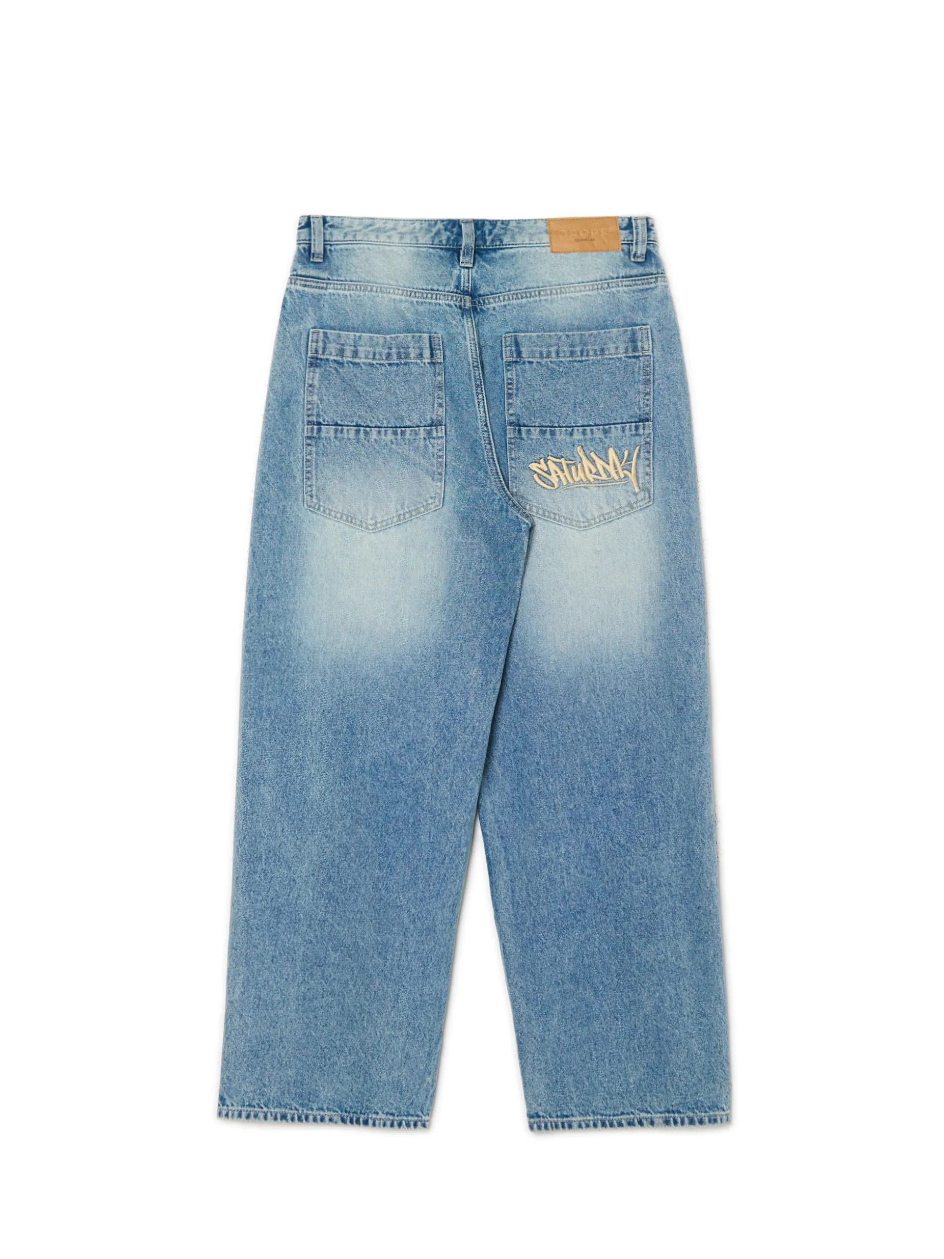 Denimowe męskie spodnie typu super baggy, uszyte z bawełnianej tkaniny w niebieskim kolorze z efektem sprania. Bardzo luźny krój zapewnia niesamowitą wygodę i swobodę ruchów. 100% bawełny obszerny krój super baggy zapięcie na suwak i guzik dwie kieszenie boczne i dwie naszyte tylne jedna mała kieszeń na drobniaki szlufki na pasek efekt sprania na całości