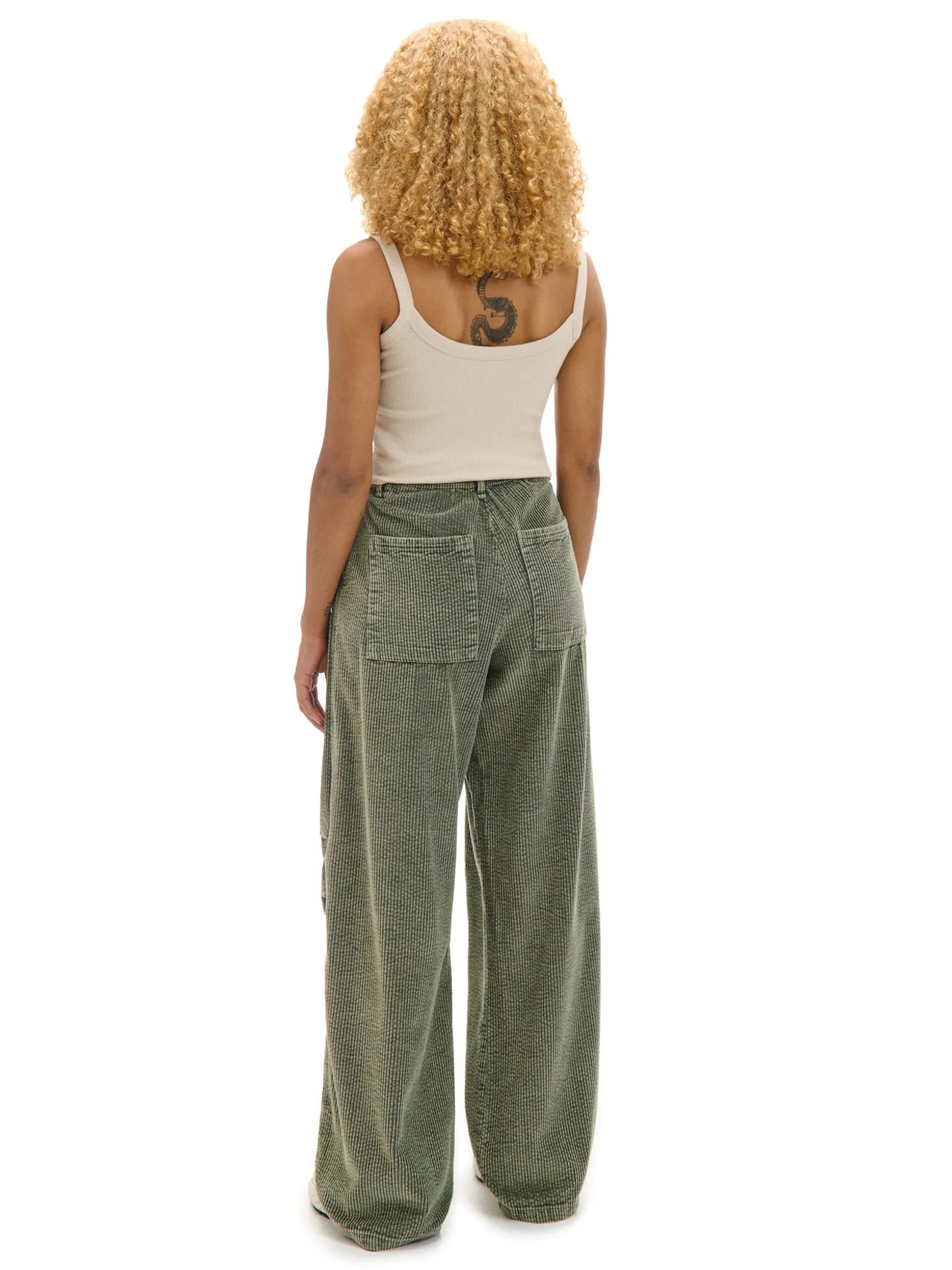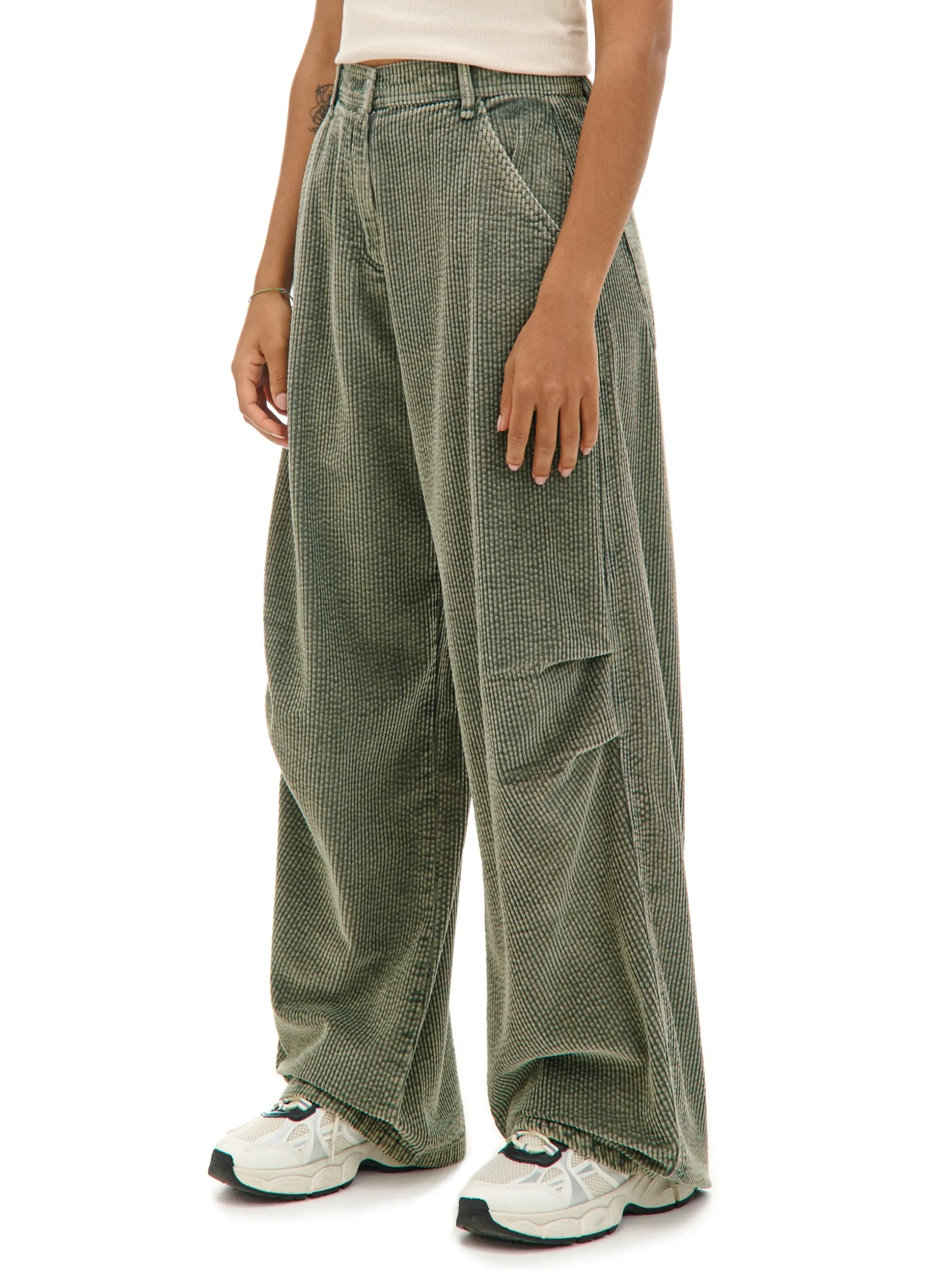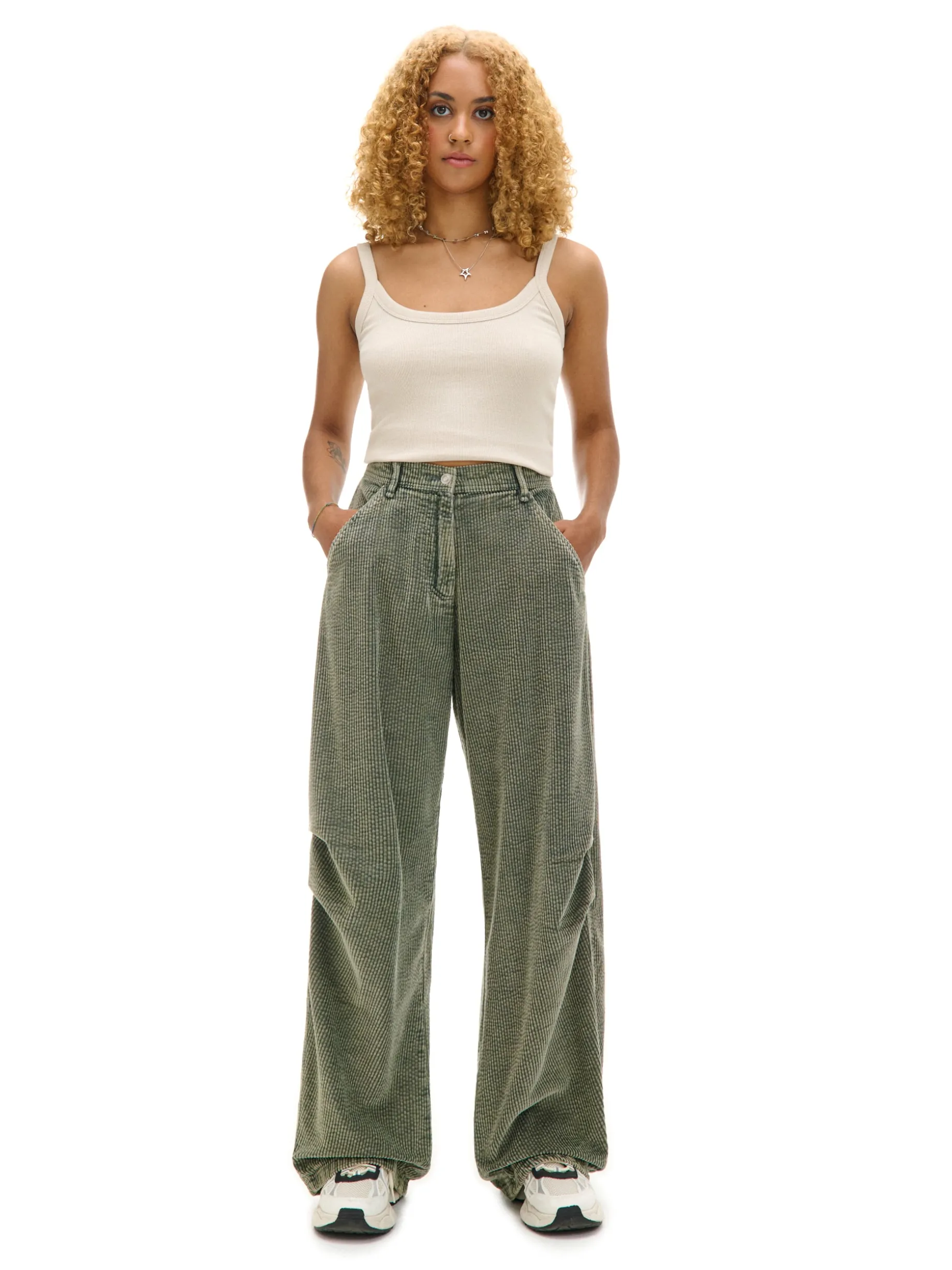 Mamy dla Ciebie spodnie o szerokich nogawkach, uszyte z bawełnianej, sztruksowej tkaniny. Z przodu zakładki modelujące na kolanach. Wyposażone w praktyczne kieszenie na Twoje itemki. Łap ten ponadczasowy model! spodnie typu wide leg uszyte ze sztruksowej tkaniny 100% bawełny zapięcie na zamek i guzik długie, szerokie nogawki skośne kieszenie po bokach naszywane kieszenie z tyłu zakładki z przodu szlufki na pasek