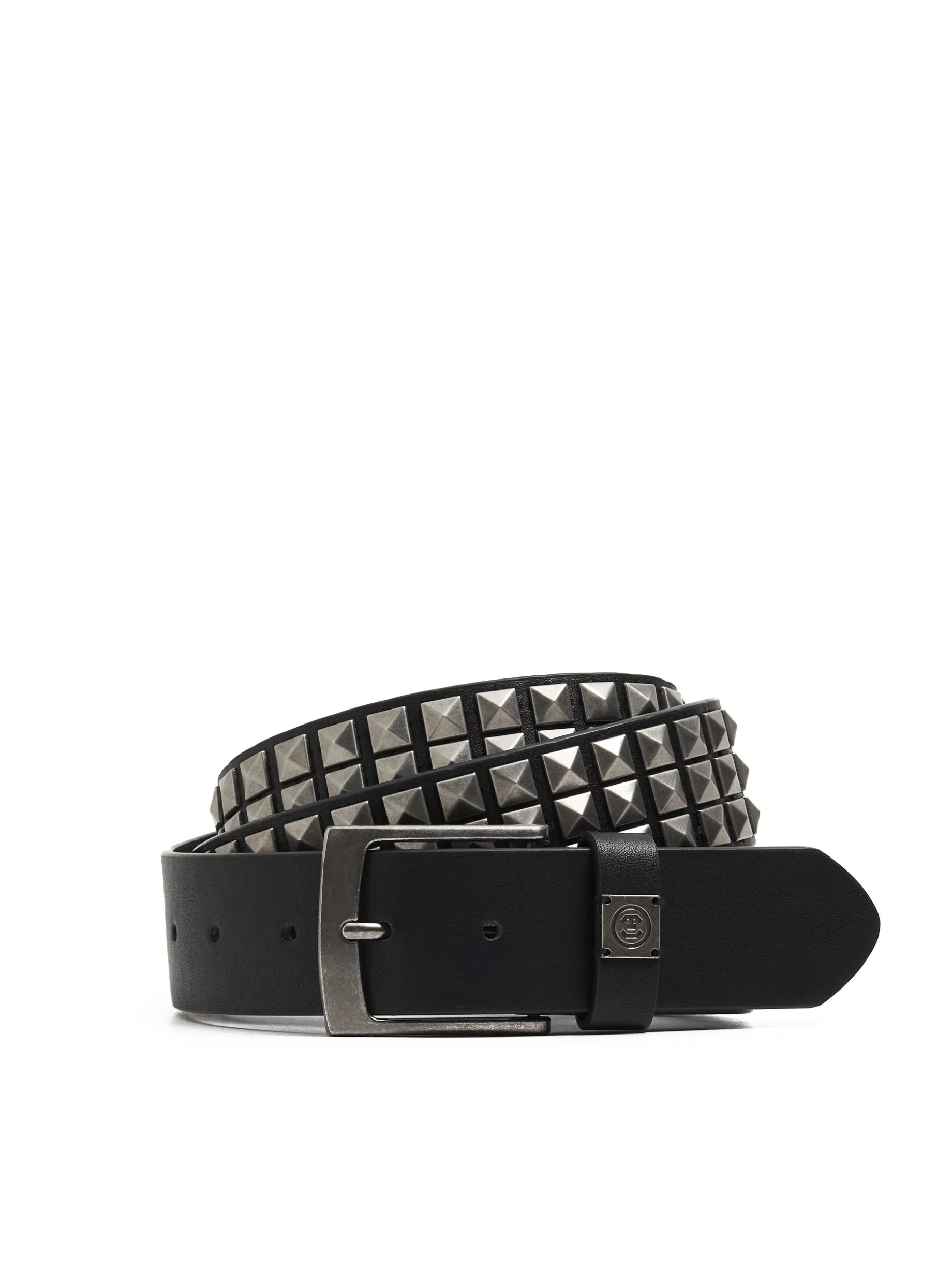 Męski pasek wykonany z imitacji skóry. Na całości ćwieki.