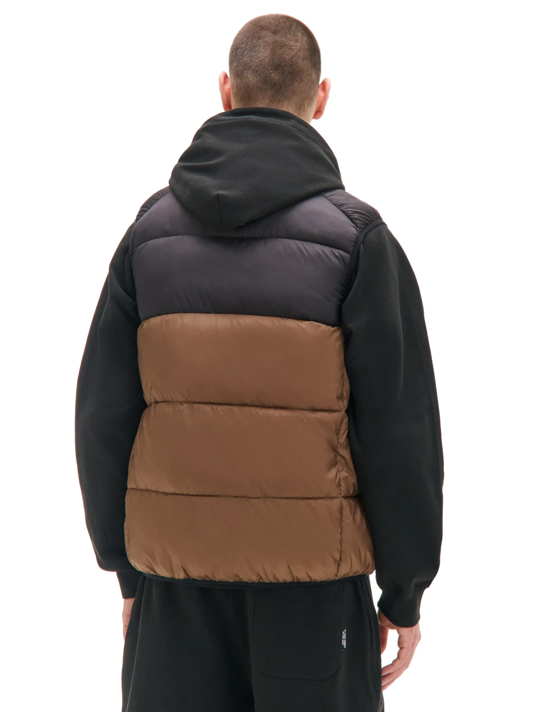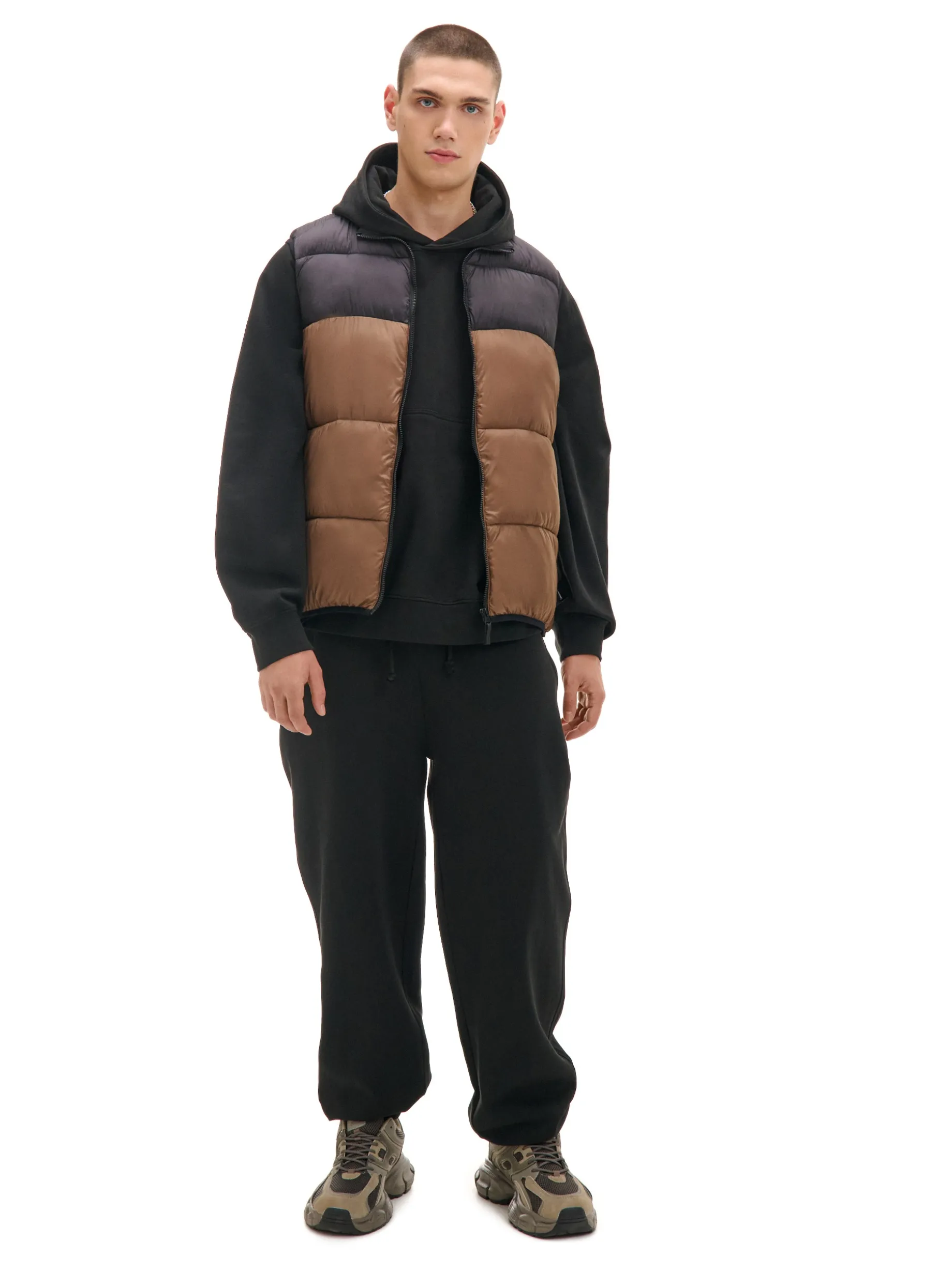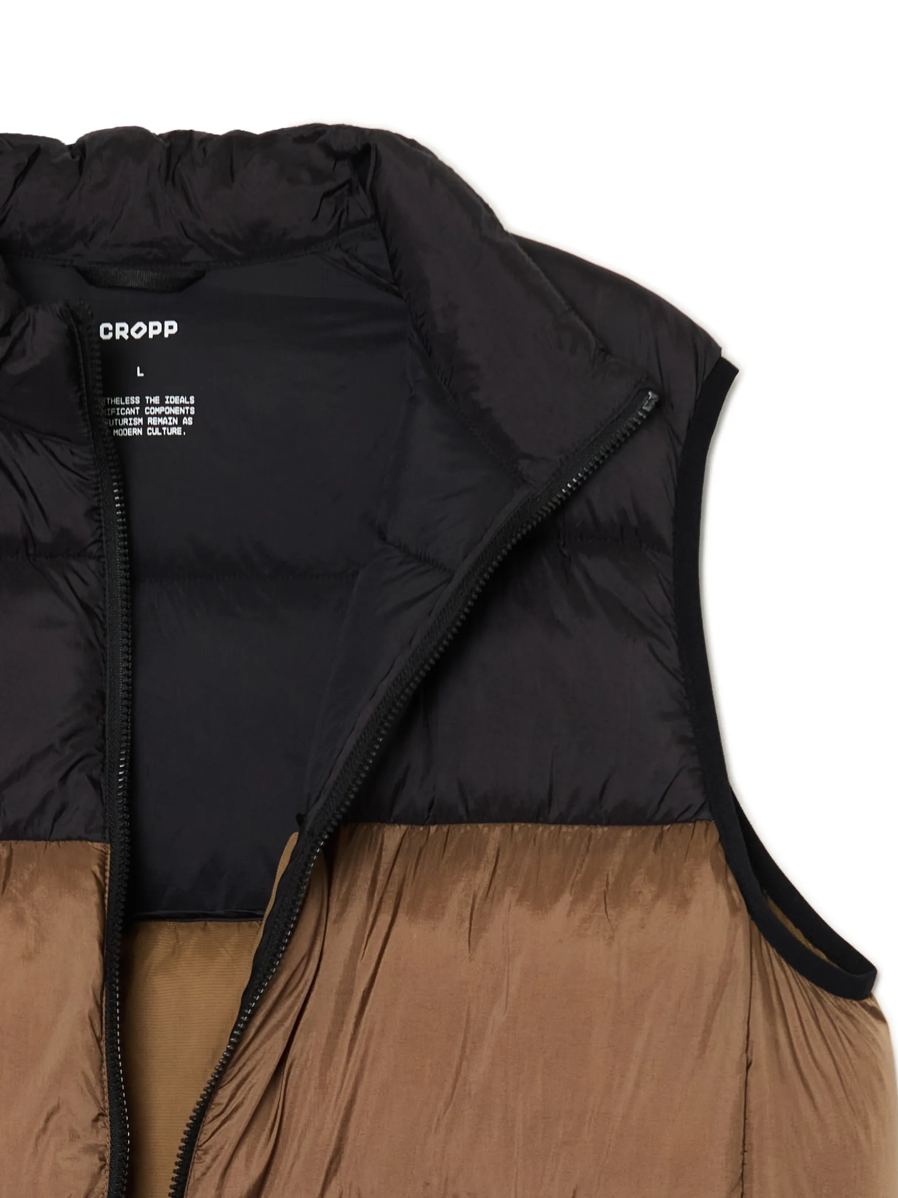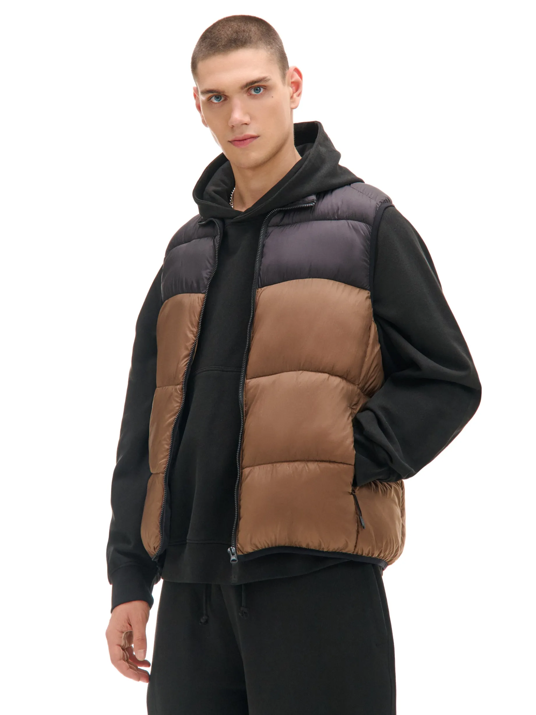 Męska kamizelka uszyta z lekkiej, pikowanej tkaniny. Ten praktyczny i efektowny item fituje z koszulkami z krótkim rękawem lub typu longsleeve. pikowanie na całości dwukolorowy wzór na całości zapinana na zamek na całej długości kołnierz z niską stójką wewnątrz otwarta kieszeń z siateczki mesh PROTECTION LEVEL 2 Kamizelka uszyta z tkaniny z lekkim wypełnieniem, której właściwości zapewnią Ci ochronę przed wiatrem i deszczem. Doskonale sprawdzi się w sezonie przejściowym.