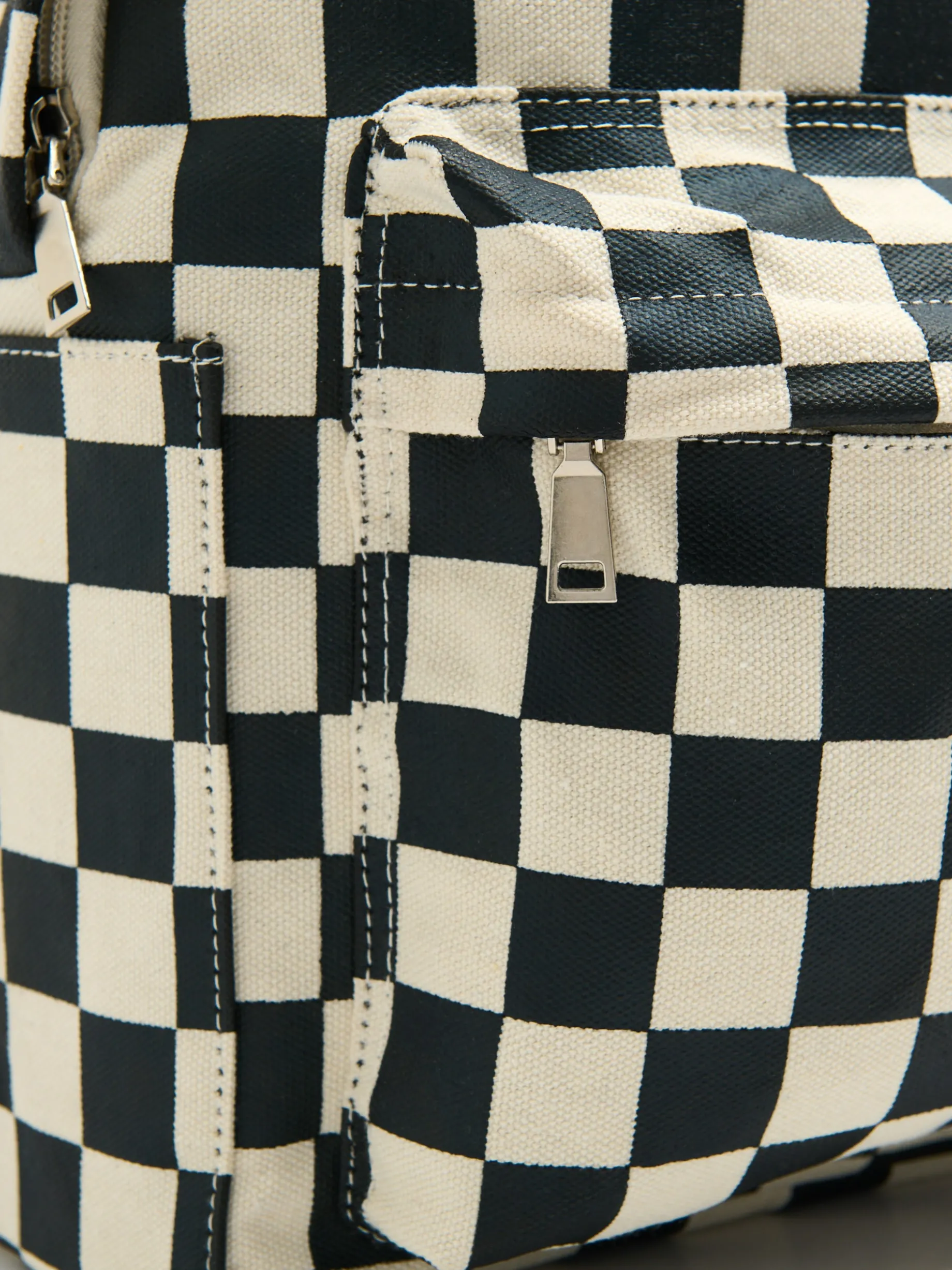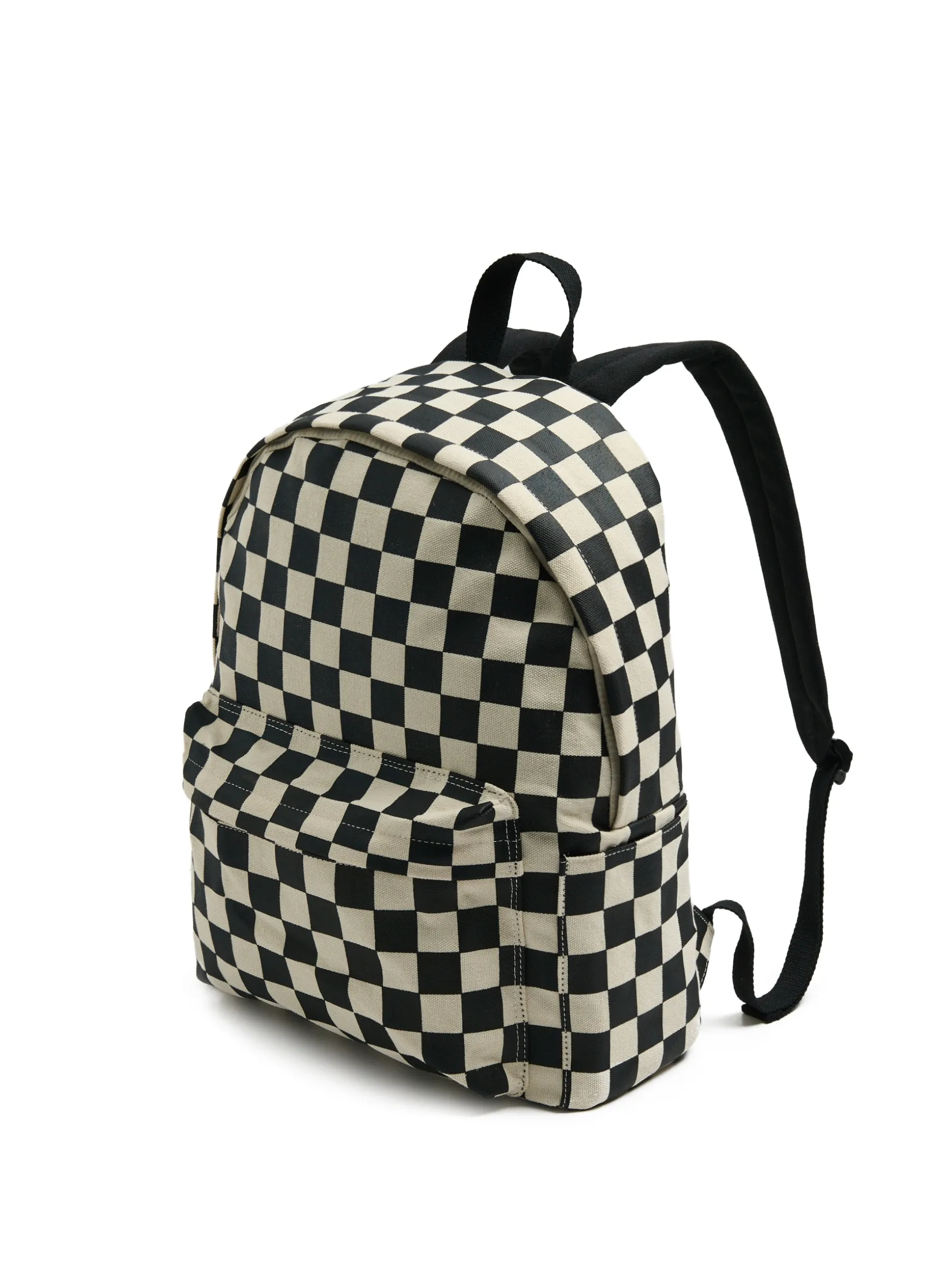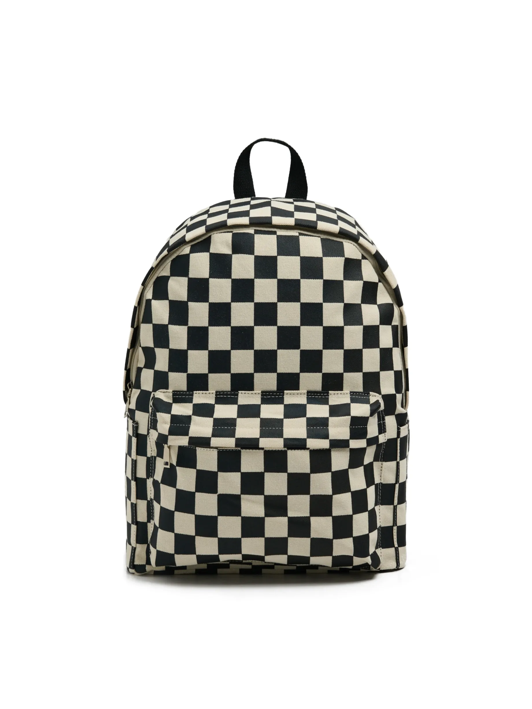 Damski pojemny plecak, uszyty z łączonych materiałów ze wzorem w kratę. Liczne kieszenie zewnętrzne i wewnętrzne pomieszczą wszystkie niezbędne rzeczy. klasyczny plecak z zapięciem na zamek regulowane, szerokie szelki główna komora z zapięciem na zamek wewnątrz otwarta kieszeń dodatkowa kieszeń zewnętrzna z zapięciem na zamek otwarte kieszenie po bokach poręczny uchwyt u góry wzór w kratę all over Wymiary plecaka: 43cm x 31cm x 12cm