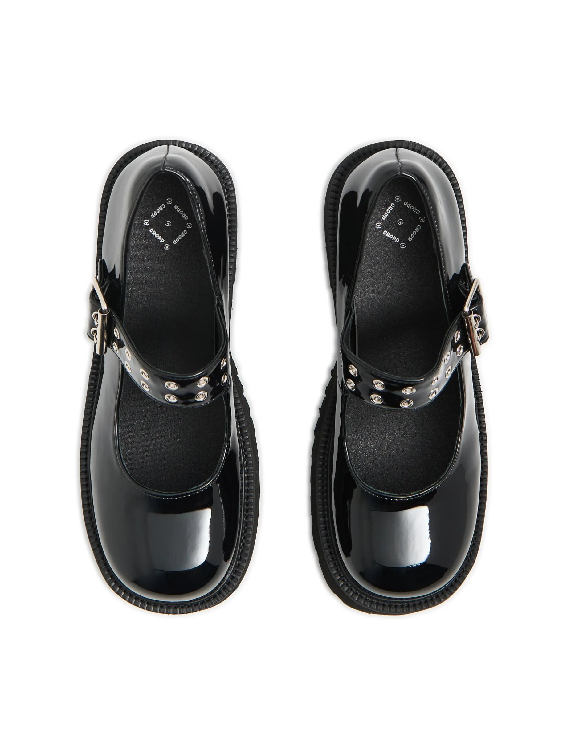 Przejściowe półbuty damskie typu Mary Jane w kolorze czarnym, wykonane z lakierowanej imitacji skóry. Ten model jako dodatek do stylizacji zwróci na siebie uwagę! lakierowana imitacja skóry traktorowa podeszwa z wysokim obcasem obcas w formie słupka pasek z podwójnym zapięciem ozdobne, metalowe wykończenie przy zapięciu
