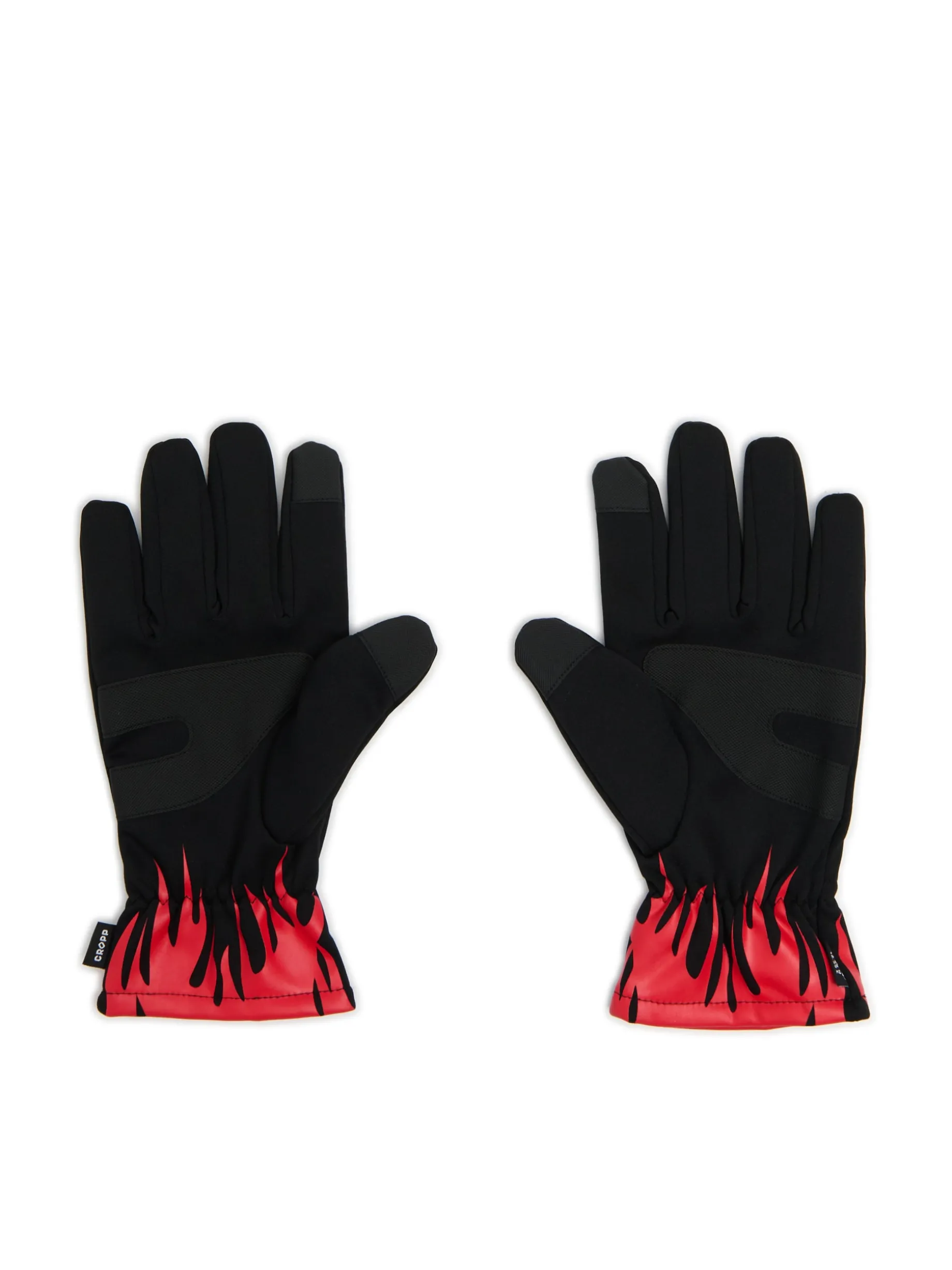 Wrzuć do koszyka te męskie rękawiczki z wyrazistym nadrukiem płomieni. Fajnym rozwiązaniem są materiałowe czubki palca wskazującego i kciuka pozwalające na korzystanie z ekranu dotykowego. Ten item przyda się jako dodatek do zimowych stylizacji! dzianina z domieszką elastycznych włókien prosty krój elastyczna gumka w nadgarstku nadruk z motywem płomieni
