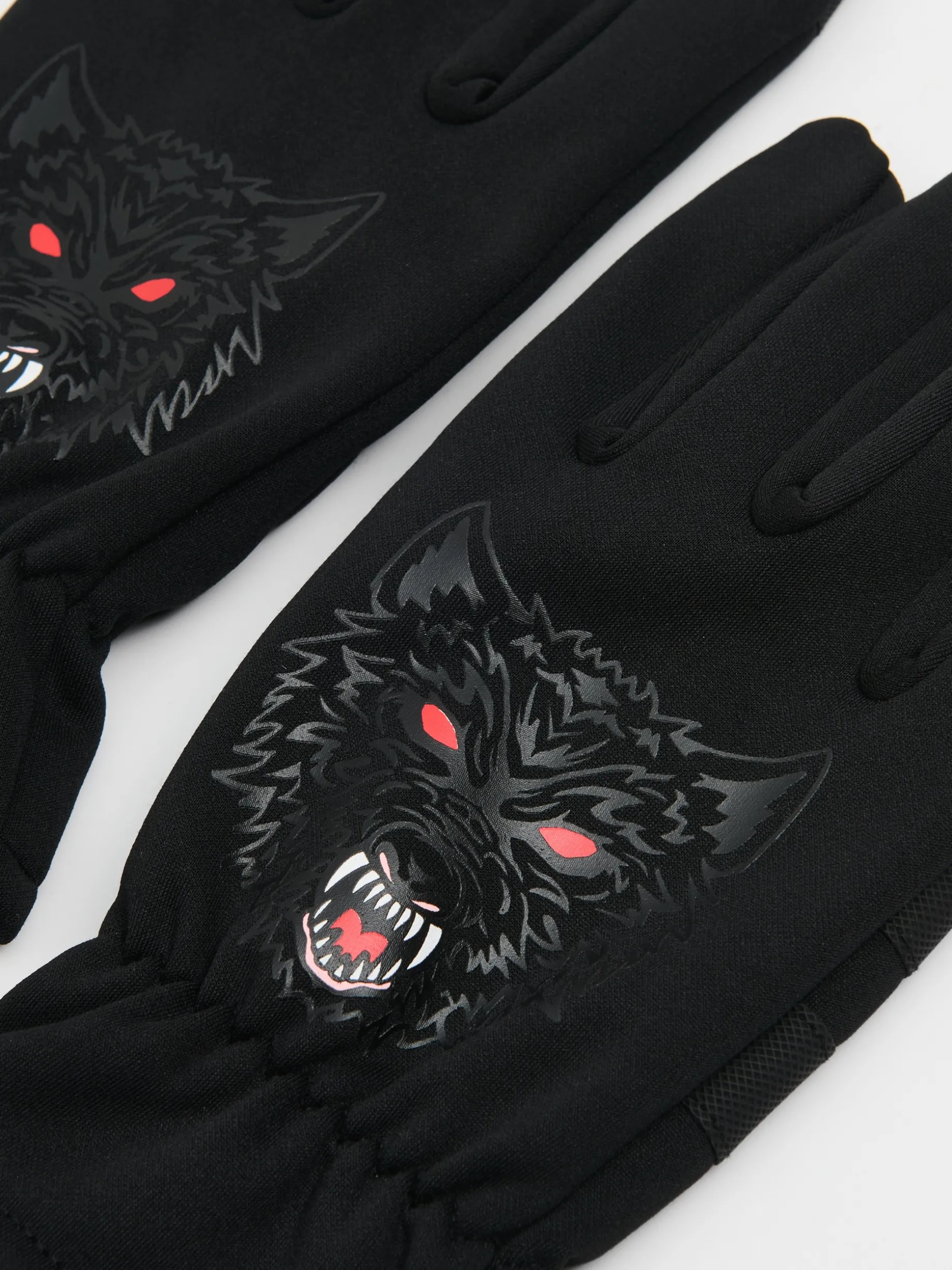 Klasyczne pięciopalczaste męskie rękawiczki z nadrukiem wilka, idealne na jesienne wypady z ekipą. Mogą być też ciekawym dodatkiem do halloweenowych stylizacji. Roar! dzianina z dodatkiem elastycznych włókien prosty krój z przodu nadruk z motywem zwierzęcym elastyczne gumki przy nadgarstkach