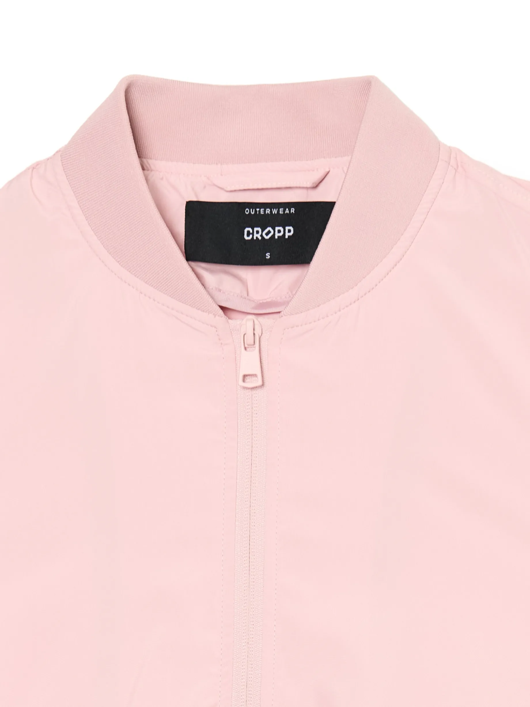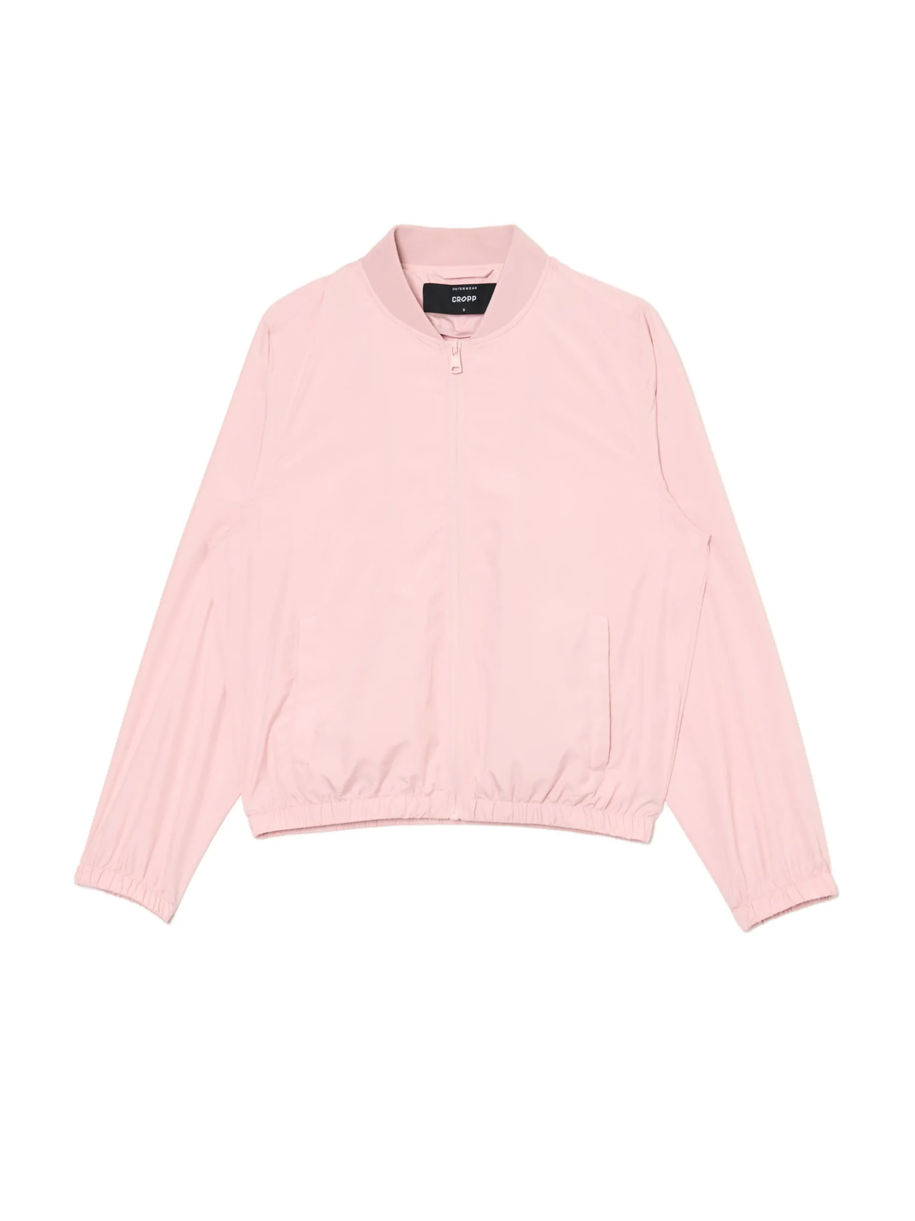 Jasnoróżowa kurtka damska o kroju bomber, uszyta z lekkiej, gładkiej tkaniny. klasyczny krój długie rękawy i dolny brzeg zakończone elastyczną gumką zapięcie na suwak dwie kieszenie dostępna w innych kolorach