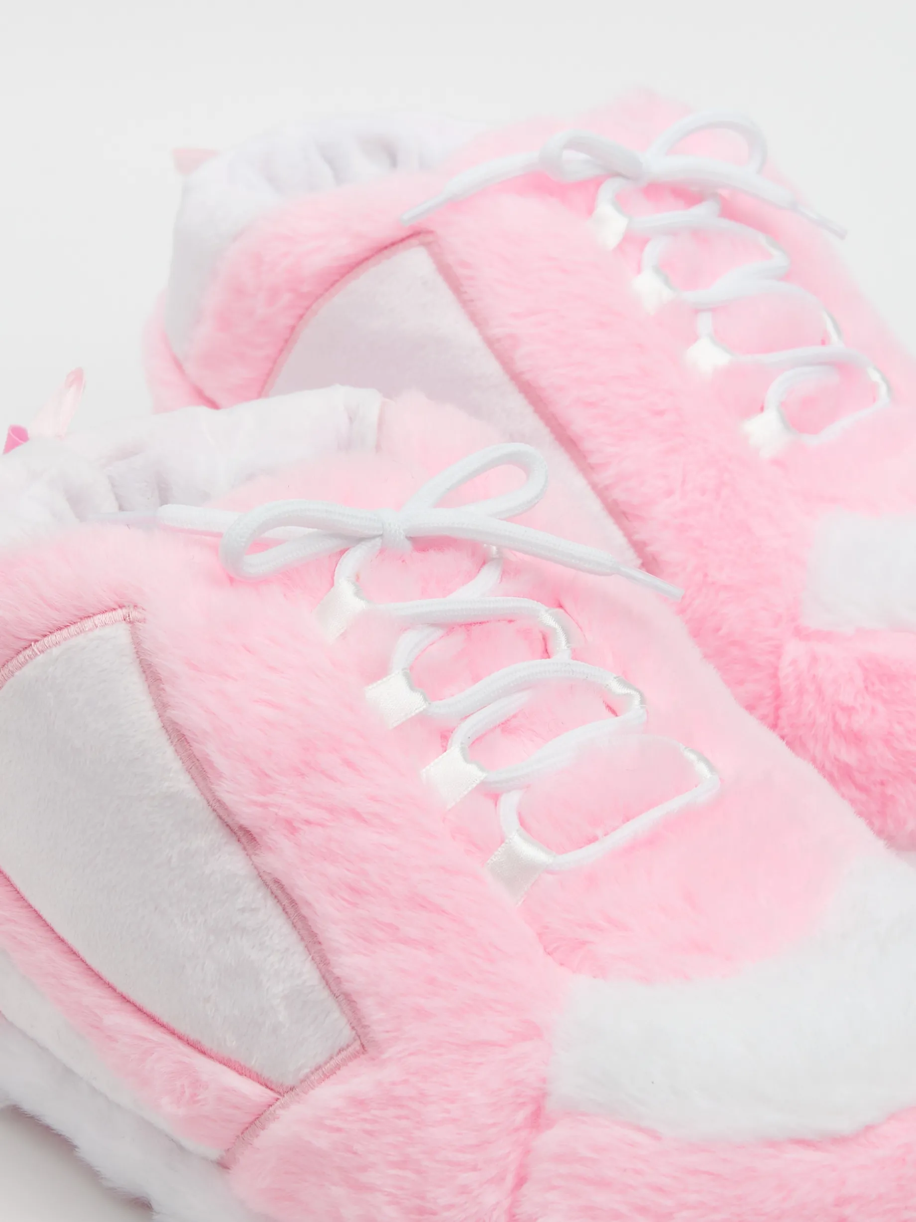 Dwukolorowe kapcie damskie wykonane z miękkiego, ciepłego materiału. Kapcie mają fason trampek.