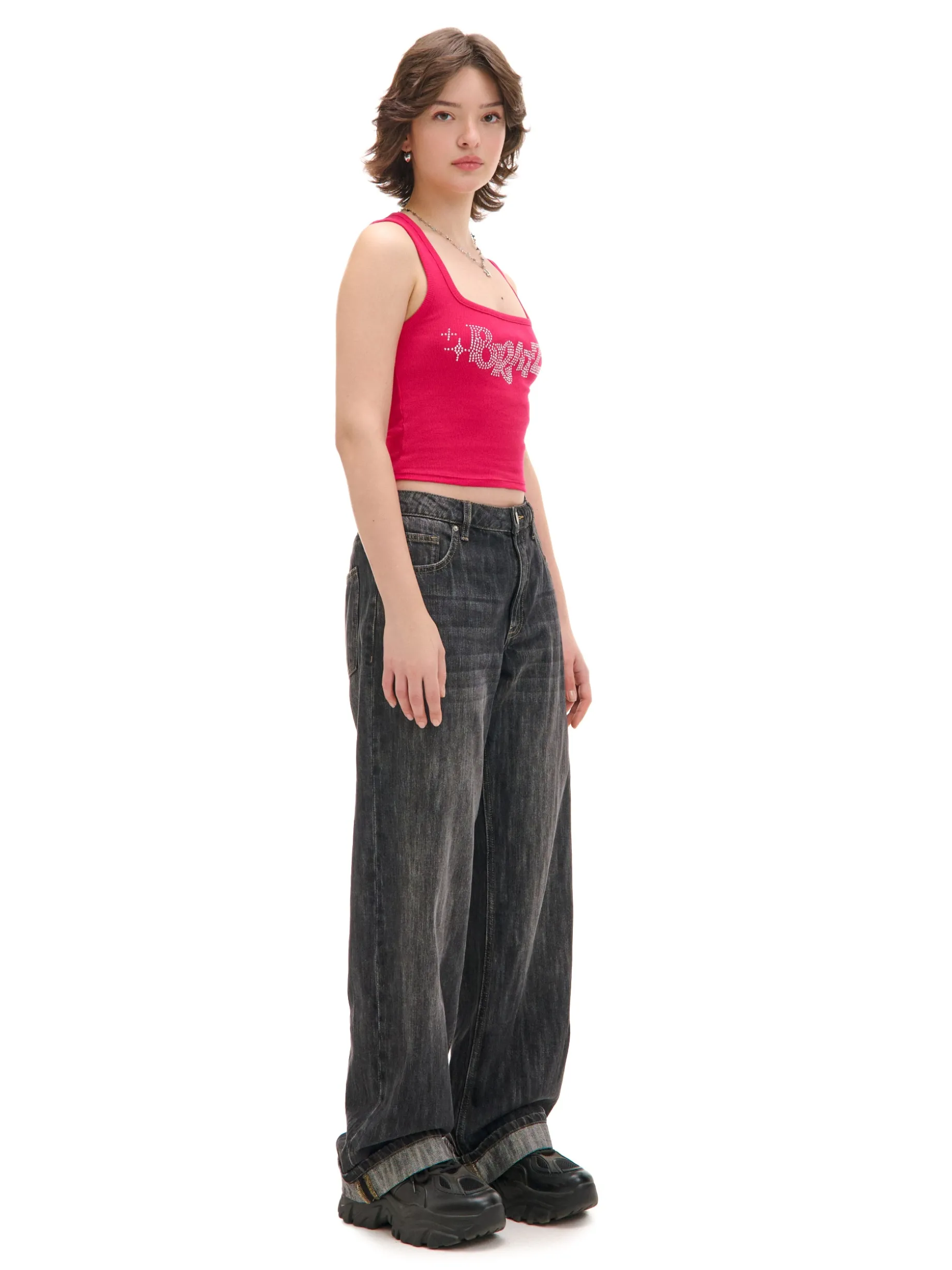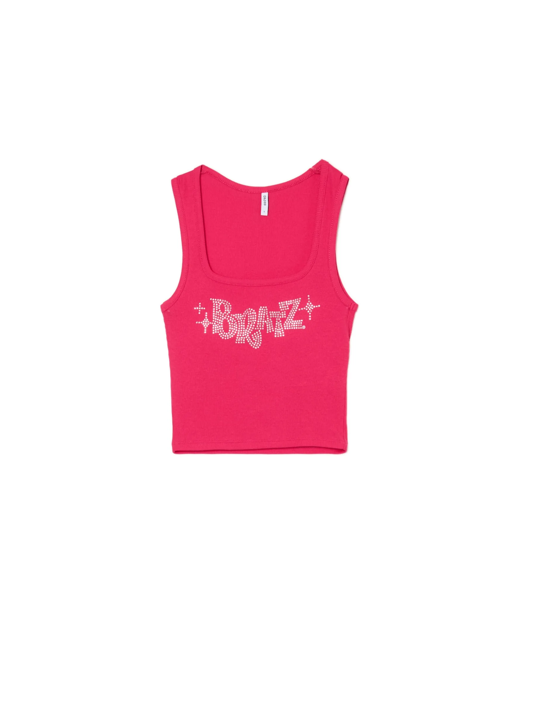 Damski top w supermodnym kolorze hot pink, uszyty z prążkowanej dzianiny o bardzo wysokiej zawartości bawełny. It’s giving doll couture >>> dopasowany krój grube ramiączka dekolt karo przodu napis BRATZ z błyszczących cyrkonii ©2024 MGA ENTERTAINMENT, INC. BRATZ ® IS A TRADEMARK OF MGA IN THE U. S. AND OTHER CONUTRIES. ALL LOGOS, NAMES, CHARACTERS, LIKENESSES, IMAGES, SLOGANS, AND PACKAGING APPEARANCE ARE ALL PROPERTY OF MGA.