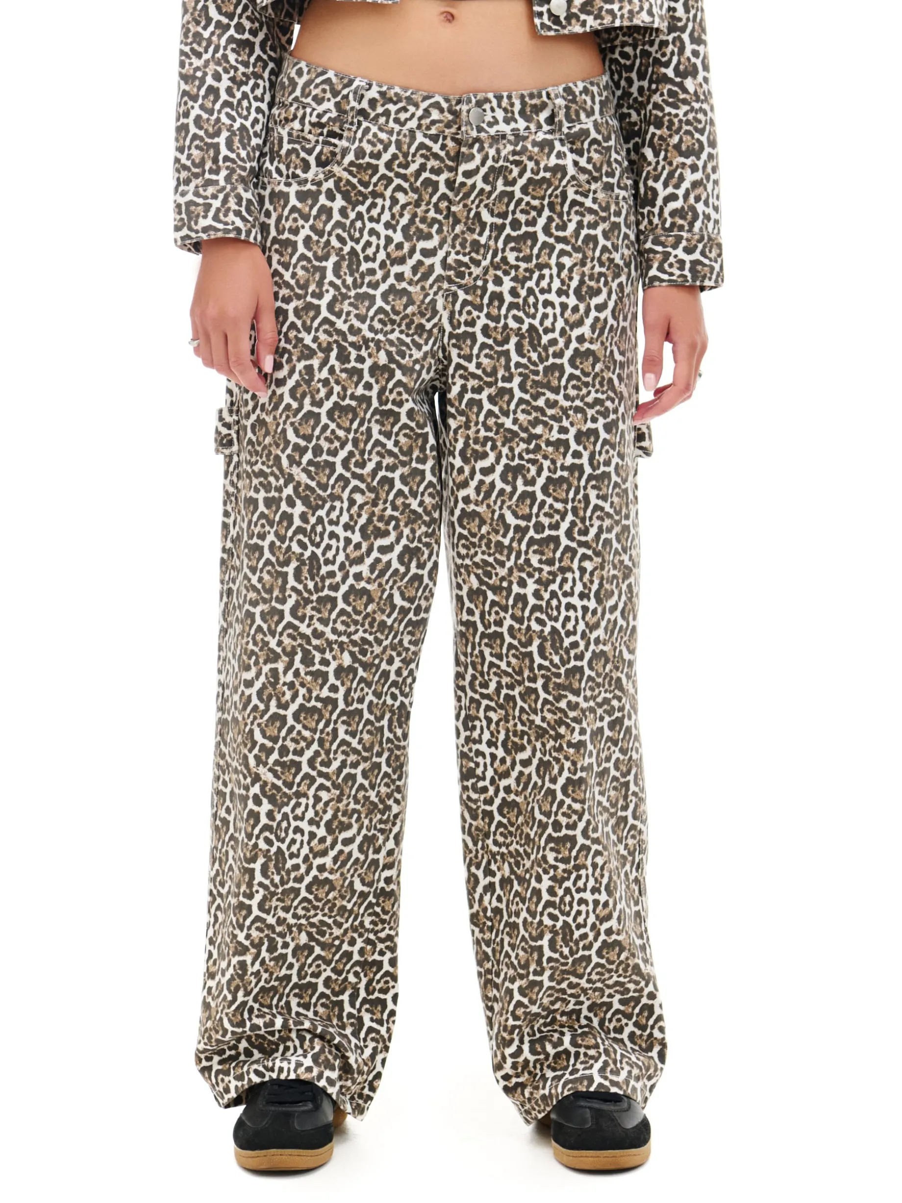 Spodnie damskie o kroju baggy, uszyte z mocnej, bawełnianej tkaniny typu twill. Nadruk z modnym, zwierzęcym motywem na całej powierzchni materiału wyróżni Cię w tłumie. 100% bawełny obszerny krój baggy zapięcie na zamek i guzik dwie kieszenie po bokach dodatkowa mała kieszonka w środku naszywane kieszenie z tyłu hammer loop na obu nogawkach zwierzęcy wzór Wzrost modelki: 177 cm