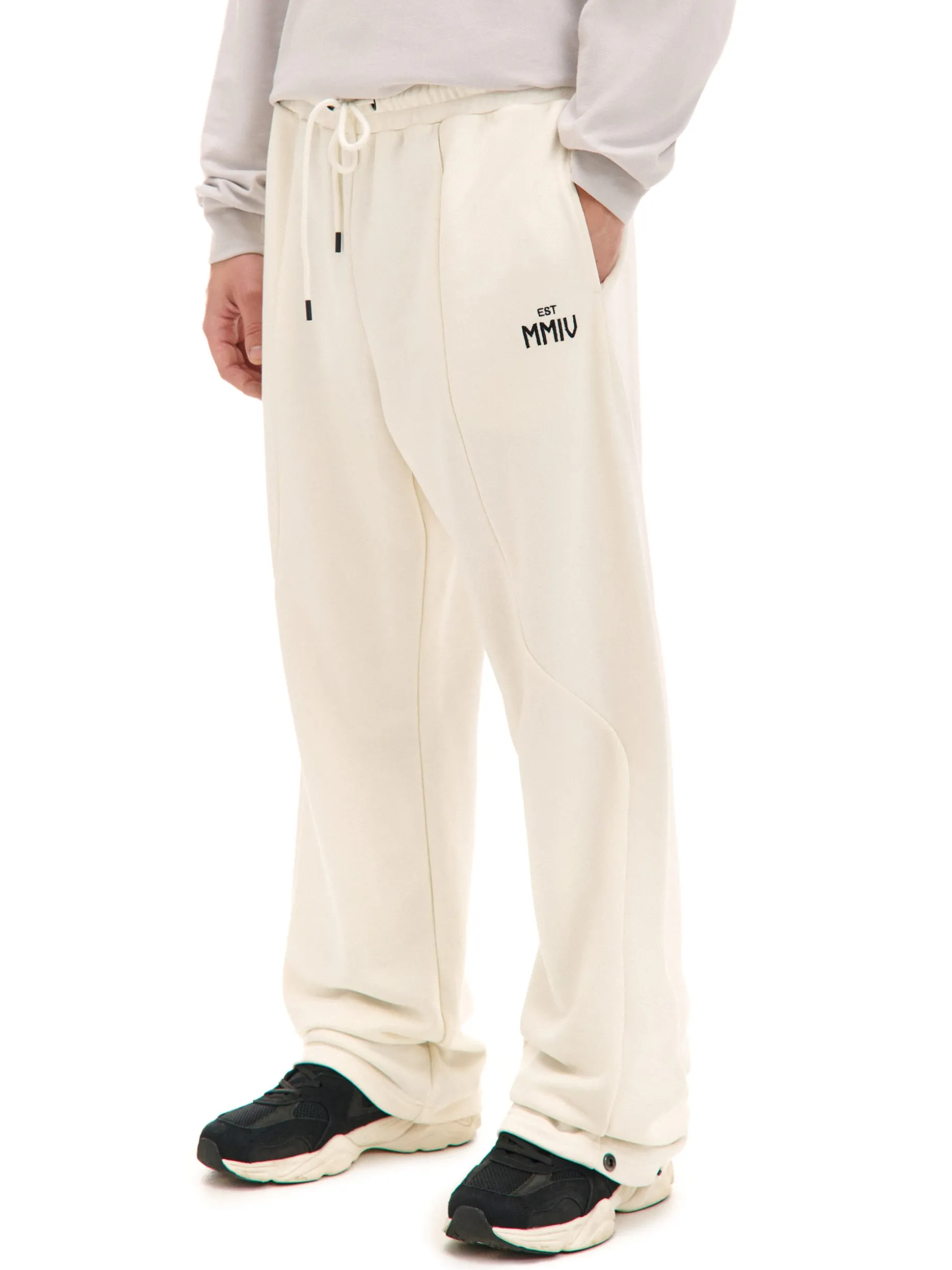 Dresowe męskie spodnie o kroju comfort, uszyte z mieszanki dzianin z miękką i trwałą odmianą bawełny. Wyposażone w proste nogawki z możliwością zwężenia na dole za pomocą zatrzasków. dzianinowy materiał z bawełną swobodny, luźny krój gumka w pasie ze sznurkiem do regulacji długie, proste nogawki zapięcie na zatrzaski na dole dwie kieszenie z przodu naszywana kieszeń z tyłu ozdobne przeszycia naszywka z napisem Gramatura: 320 gsm