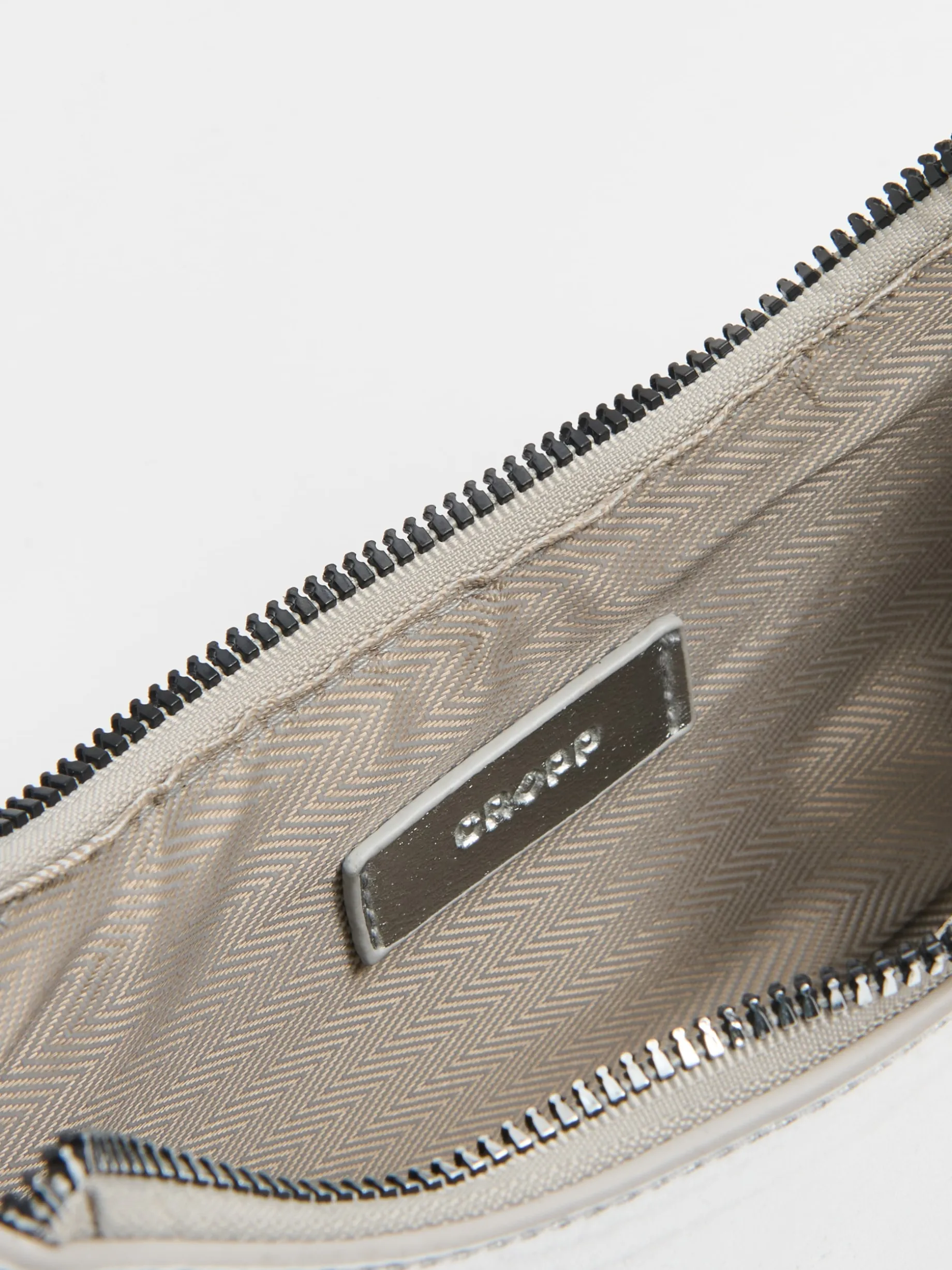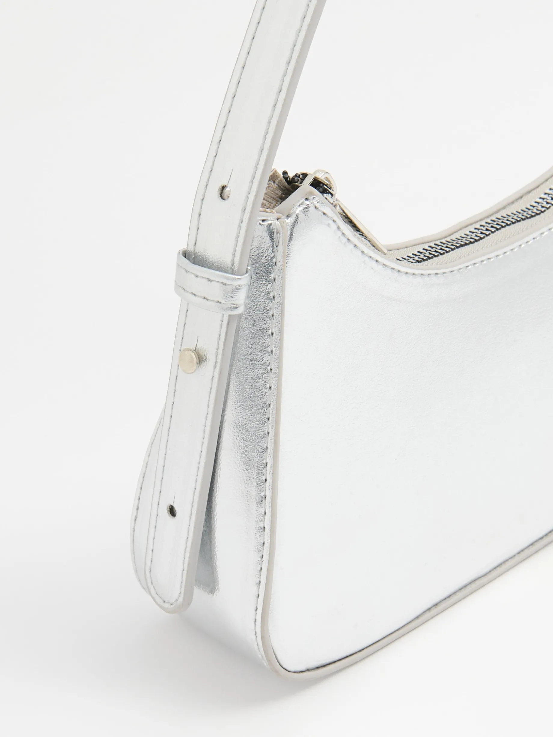 Nieszablonowy dodatek imprezowych stylizacji! Damska mała torebka wykonana z imitacji skóry w kolorze srebrnym. Zapinana na zamek i wyposażona w pasek z tego samego materiału, regulowany po bokach. Warto mieć ten sztosowy item pod ręką. mała torebka z imitacji skóry główna komora z zapięciem na zamek pasek z regulacją długości wewnątrz otwarta kieszeń naszywka Cropp
