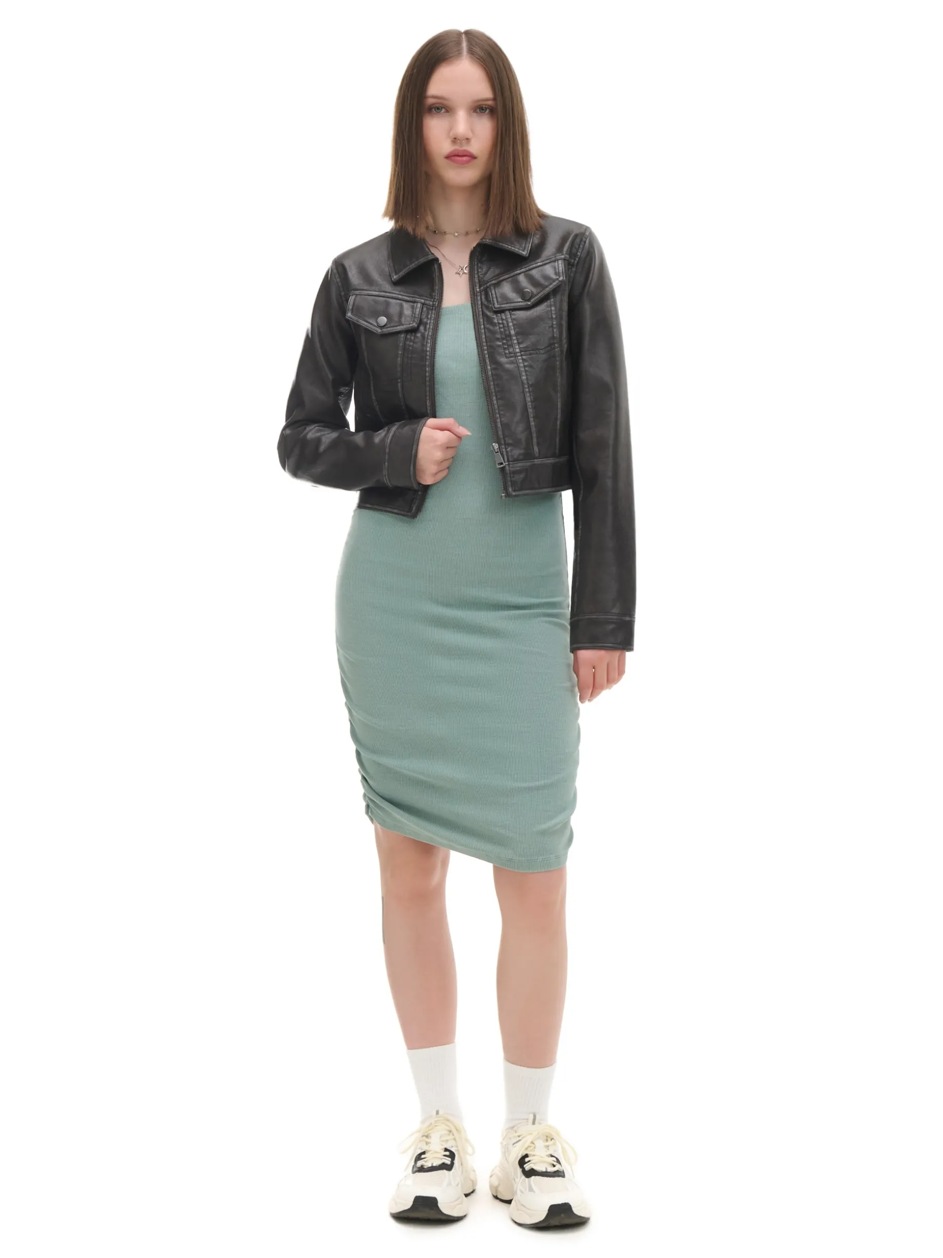 Sukienka typu tuba, uszyta z dzianiny o dużej zawartości bawełny. Przyjemny w dotyku, elastyczny materiał sprawi, że będziesz czuła się komfortowo i wyglądała jak milion dolarów. bawełna z dodatkiem elastycznych włókien dopasowany krój podkreślający sylwetkę długość midi bez rękawów silikonowa taśma przy dekolcie ozdobne marszczenia Wzrost modelki: 172 cm