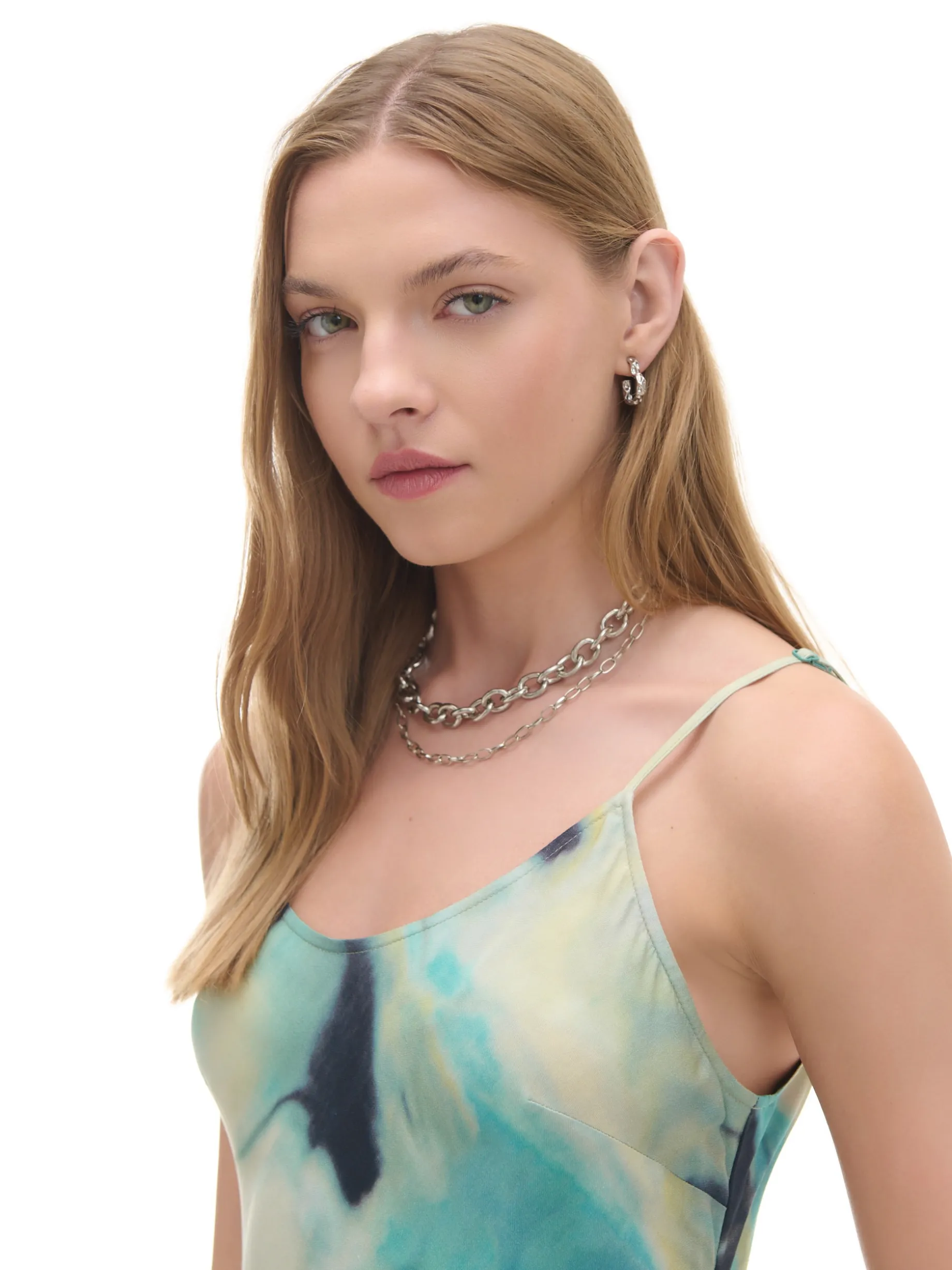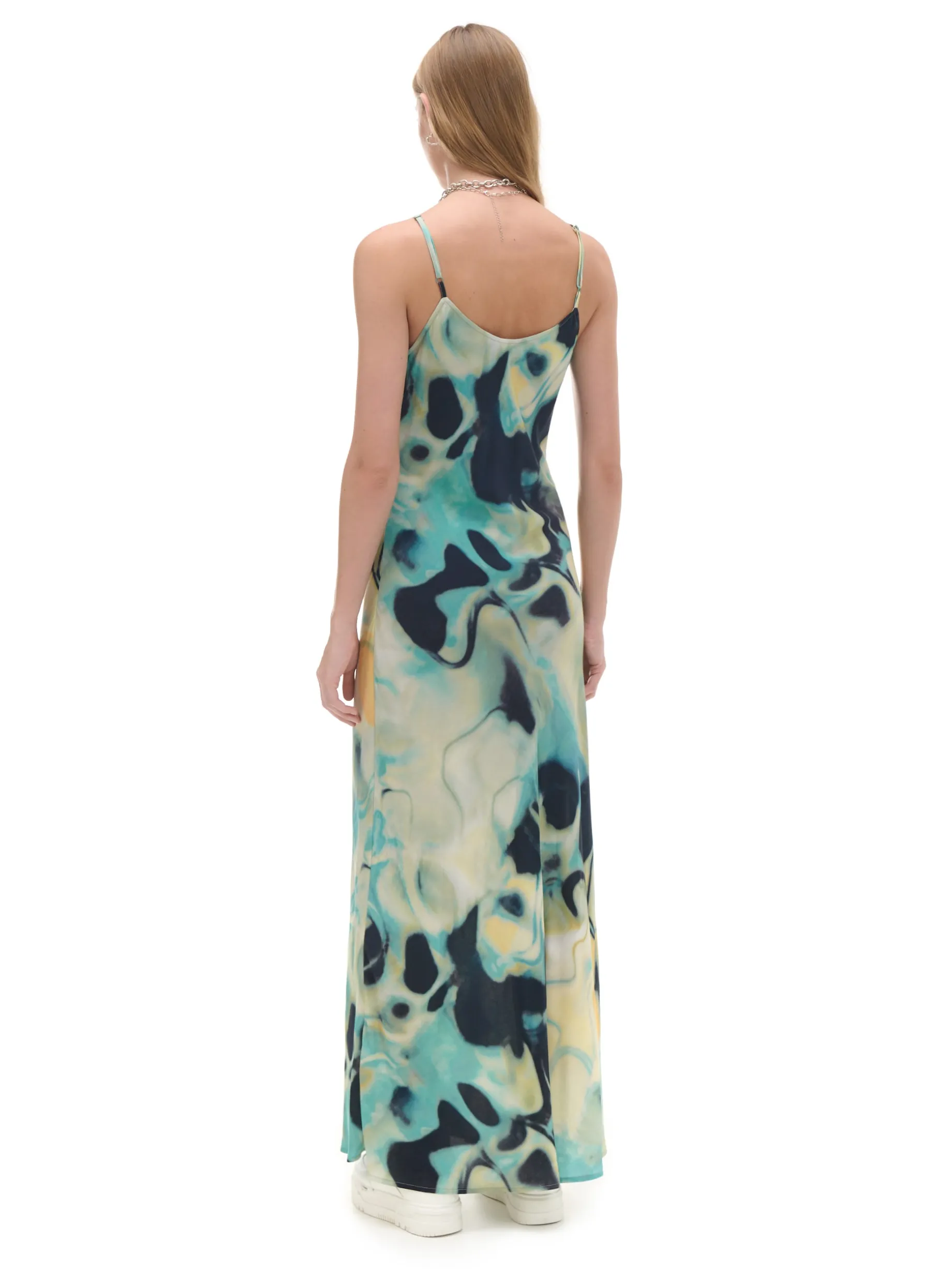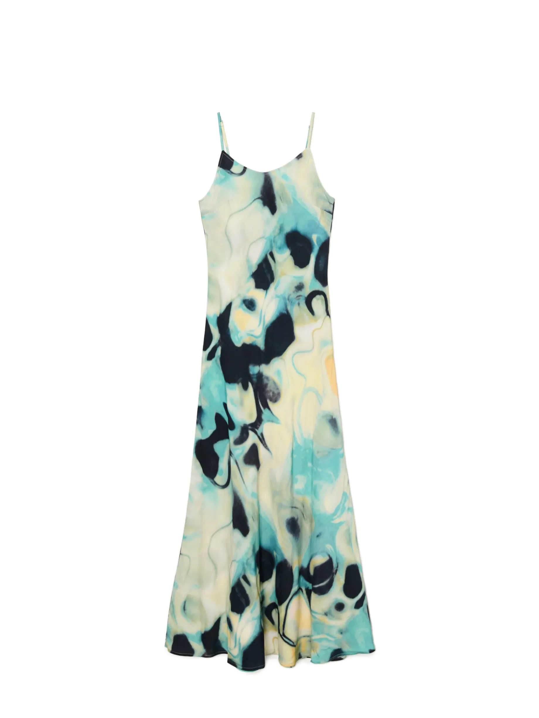 Sukienka na ramiączkach o długości maxi z półokrągłym dekoltem, uszyta z lekkiej wiskozowej tkaniny. Idealna na letnie dni! 100% wiskozy długość maxi i dopasowany krój delikatne taliowanie półokrągły dekolt wąskie ramiączka z regulacją długości kolorowy nadruk all over