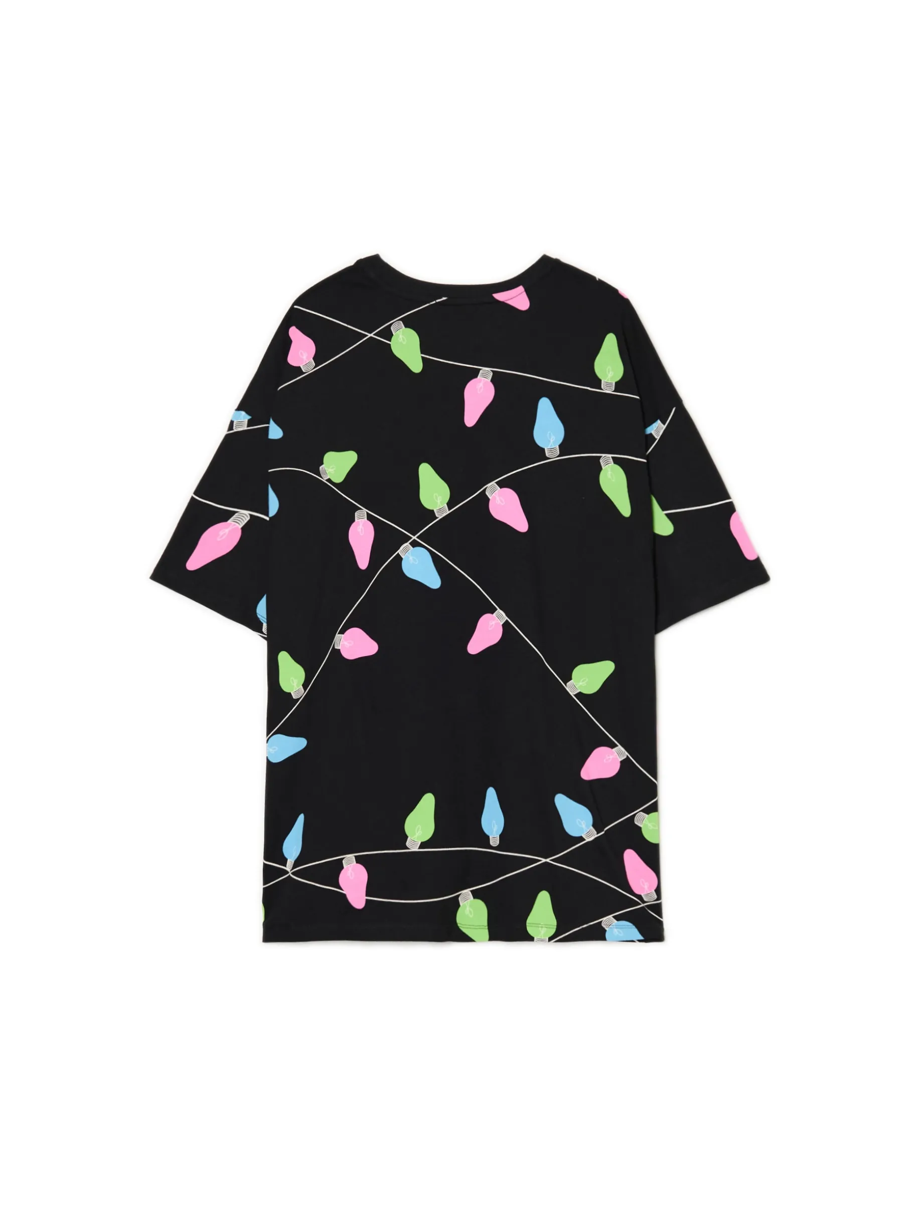 Merry Stitchmas! Damska koszulka o kroju oversize z krótkim rękawem. Na całej powierzchni choinkowe światełka. Dodatkowo z przodu słodki, włochaty bohater serii „Lilo i Stitch”. Może jeden dla Ciebie, a drugi na prezent? Ty decydujesz! 100% bawełny oversizowy krój okrągły dekolt z lamówką krótkie, szerokie rękawy z przodu nadruk ze Stitchem nadruk z motywem Xmas © Disney, ©Disney / Pixar, © Disney Based on the „Winnie the Pooh” works by A. A. Milne and E. H. Shepard