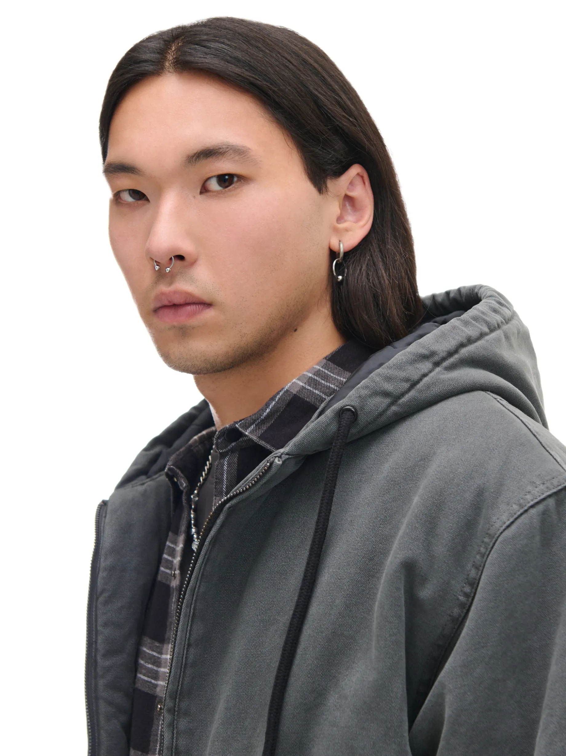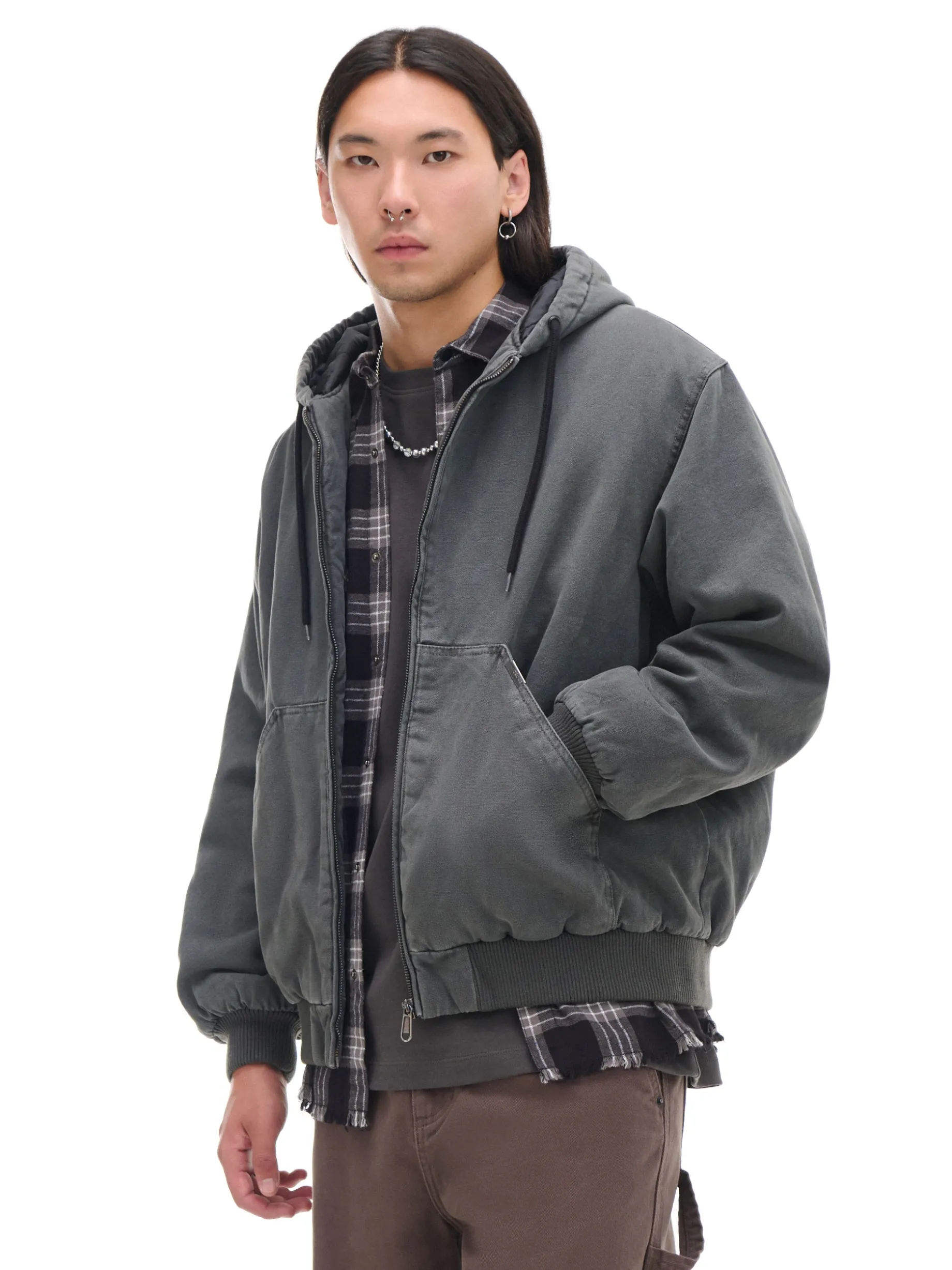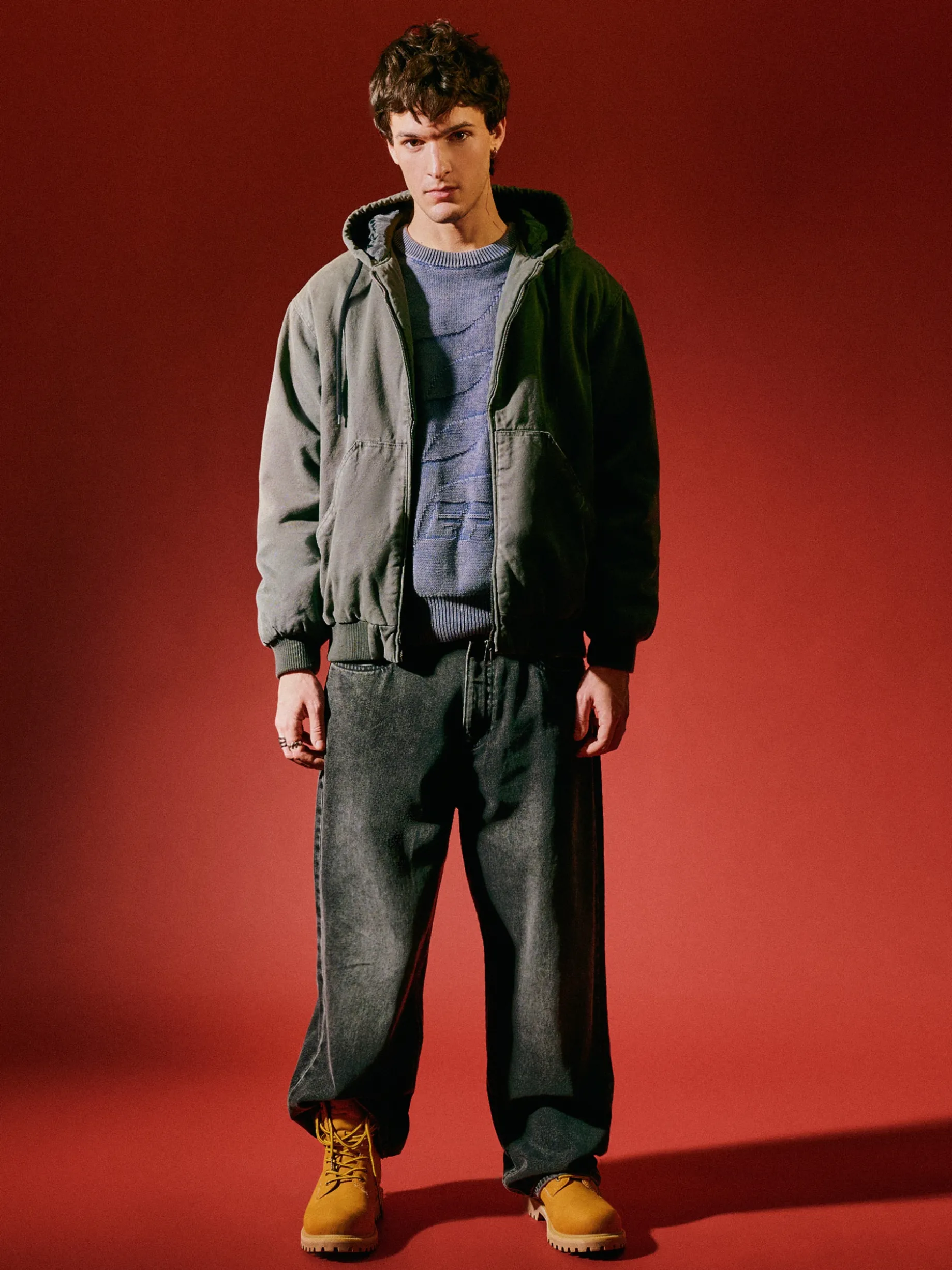 Męska kurtka typu bomber o bluzowym kroju, uszyta z bawełnianej tkaniny z efektem sprania na całości. Ciepłe wypełnienie i pikowane wnętrze to idealne rozwiązanie na sezon przejściowy. 100% bawełny swobodny, luźny krój wewnątrz pikowana podszewka lekkie ocieplenie zapięcie na metalowy zamek obszerny kaptur z troczkami długie rękawy wykończone elastycznym ściągaczem dół wykończony delikatnym, prążkowanym ściągaczem dwie kieszenie po bokach wewnętrzna kieszeń na rzep PROTECTION LEVEL 3rn Kurtka uszyta z tkaniny z większym ociepleniem, której właściwości zapewnią Ci nie tylko ochronę przed wiatrem i deszczem, ale też niskimi temperaturami.