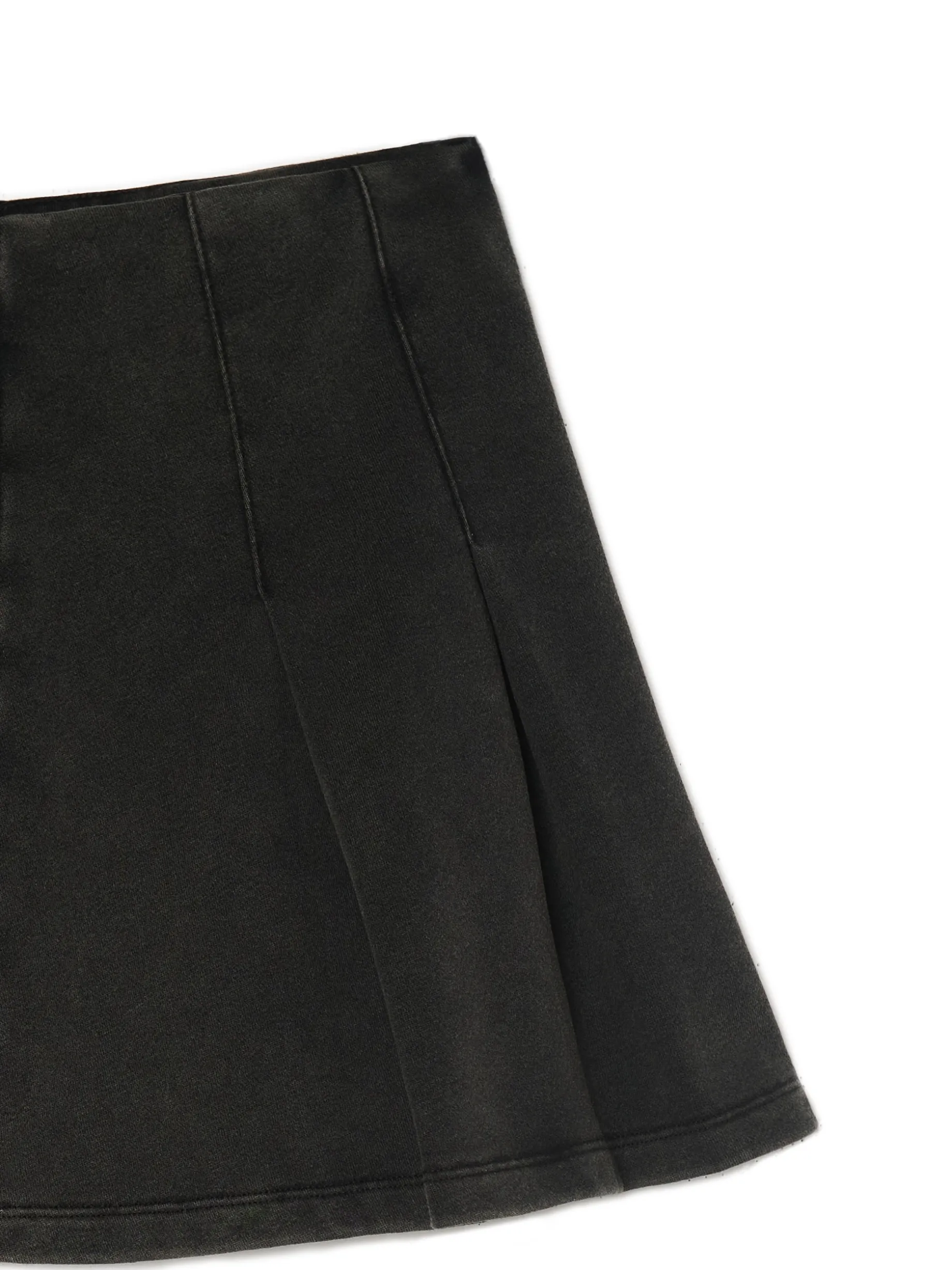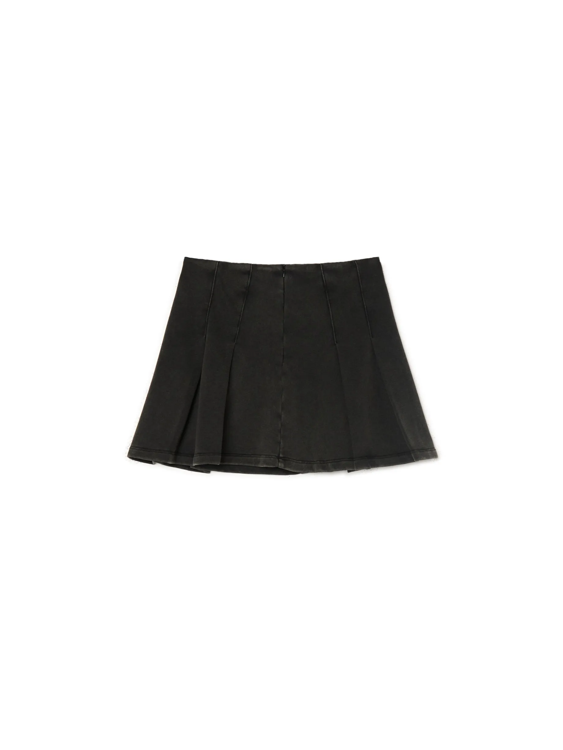 Krótka spódnica damska uszyta z dzianiny o wysokiej zawartości bawełny. Świetnie fituje z loafersami lub lekkimi trampkami. dzianinowy materiał z bawełną długość mini zapięcie na kryty zamek z tyłu ozdobne zaszewki modelujące sylwetkę efekt sprania na całości Wzrost modelki: 177 cm