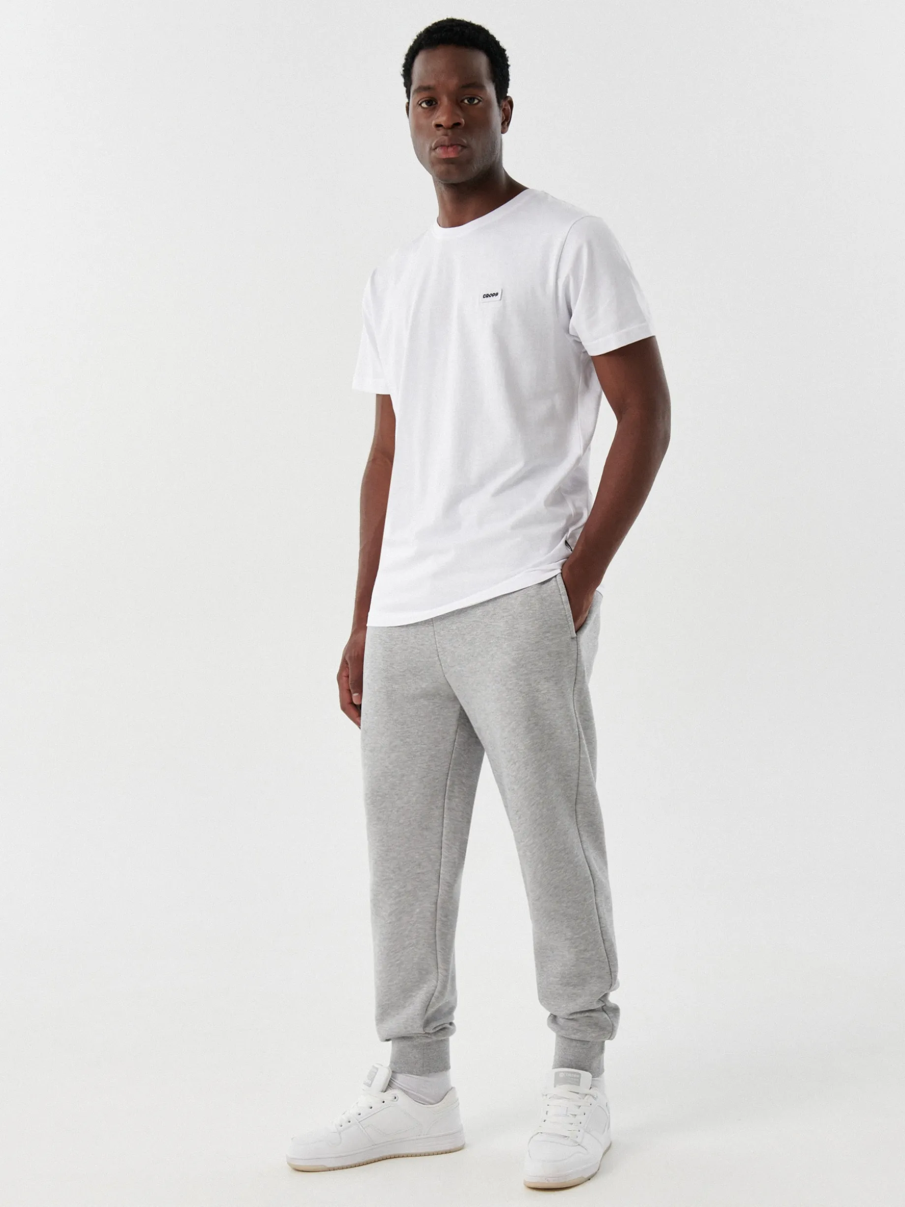 Męskie spodnie dresowe, uszyte z dzianiny o wysokiej zawartości bawełny. luźny, komfortowy krój regularny stan gumka i sznurek w pasie długa nogawka, zakończona ściągaczem trzy kieszenie dostępne w innych kolorach Rozmiar ubrania: M Wzrost modela: 187 cm