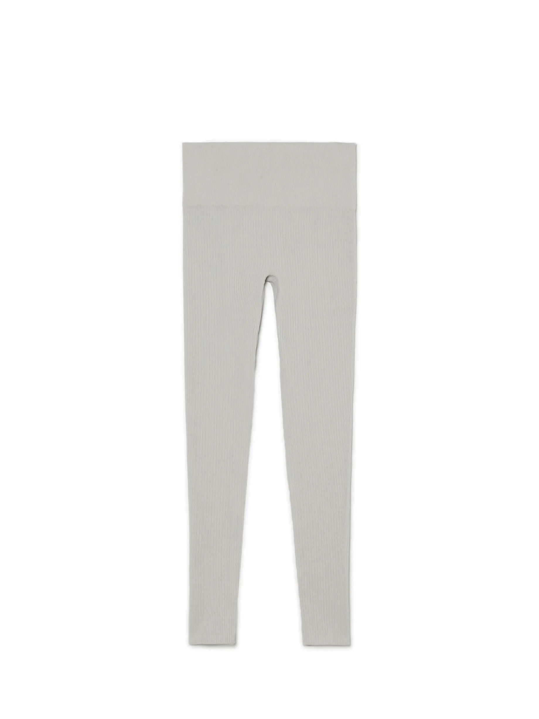 Damskie legginsy, uszyte z prążkowanej dzianiny, mieszanki poliamidu i elastanu. W pasie gumka.