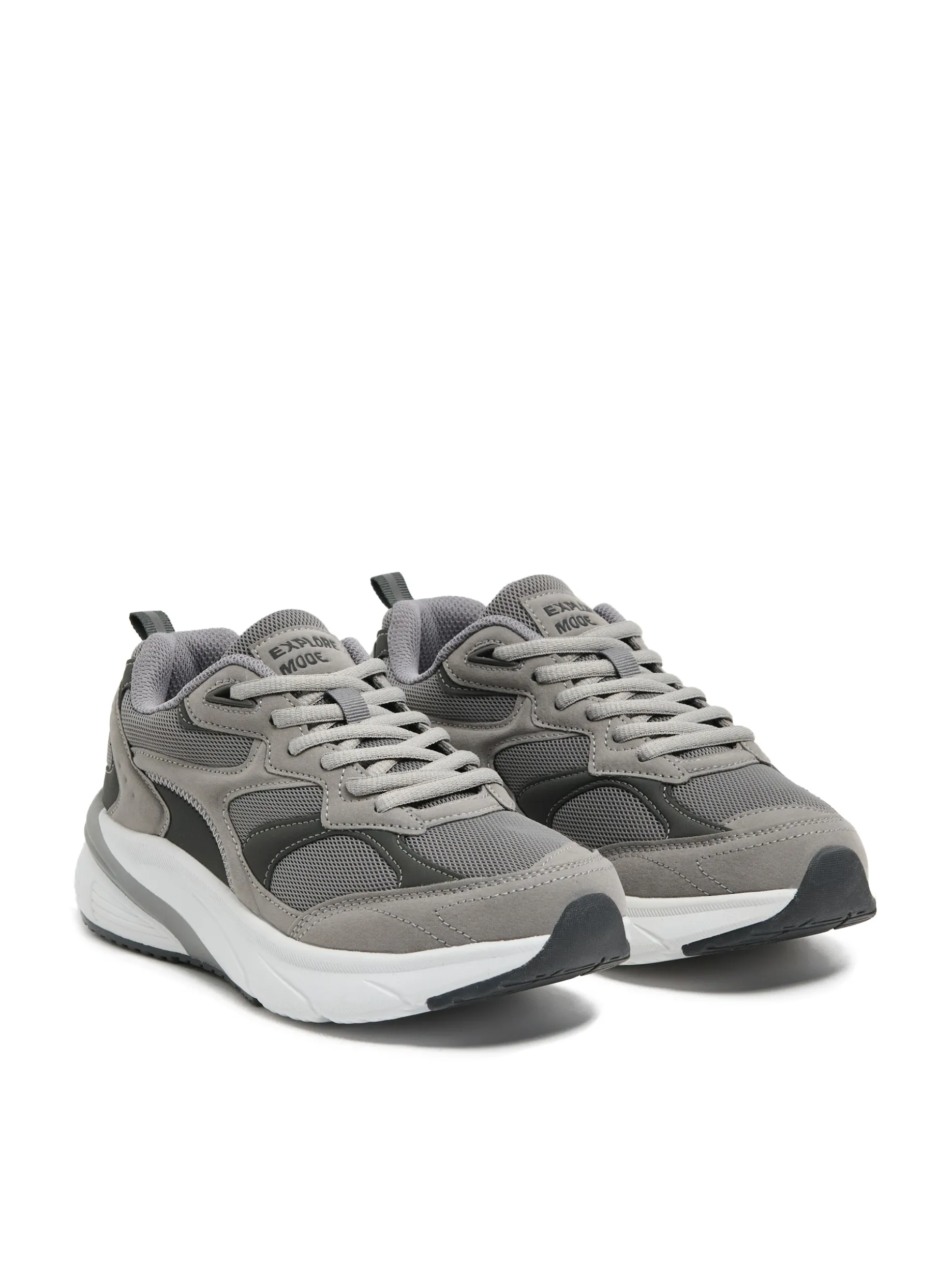 Damskie buty sneakersy o sportowym fasonie z wyróżniającą się naszywką i wstawkami. Cholewka pokryta siateczką mesh ułatwia przepływ powietrza. Podeszwa została wzmocniona o piankę EVA dla lepszej amortyzacji. Nie spóźnij się i wrzuć je do koszyka! sznurowane sneakersy w sportowym stylu cholewka z siateczkowego materiału i imitacji skóry wzmacniany nosek zwiększający ochronę przed otarciami płaska, dwukolorowa podeszwa z termoplastycznej gumy poręczny uchwyt ułatwiający zakładanie ozdobna naszywka z przodu