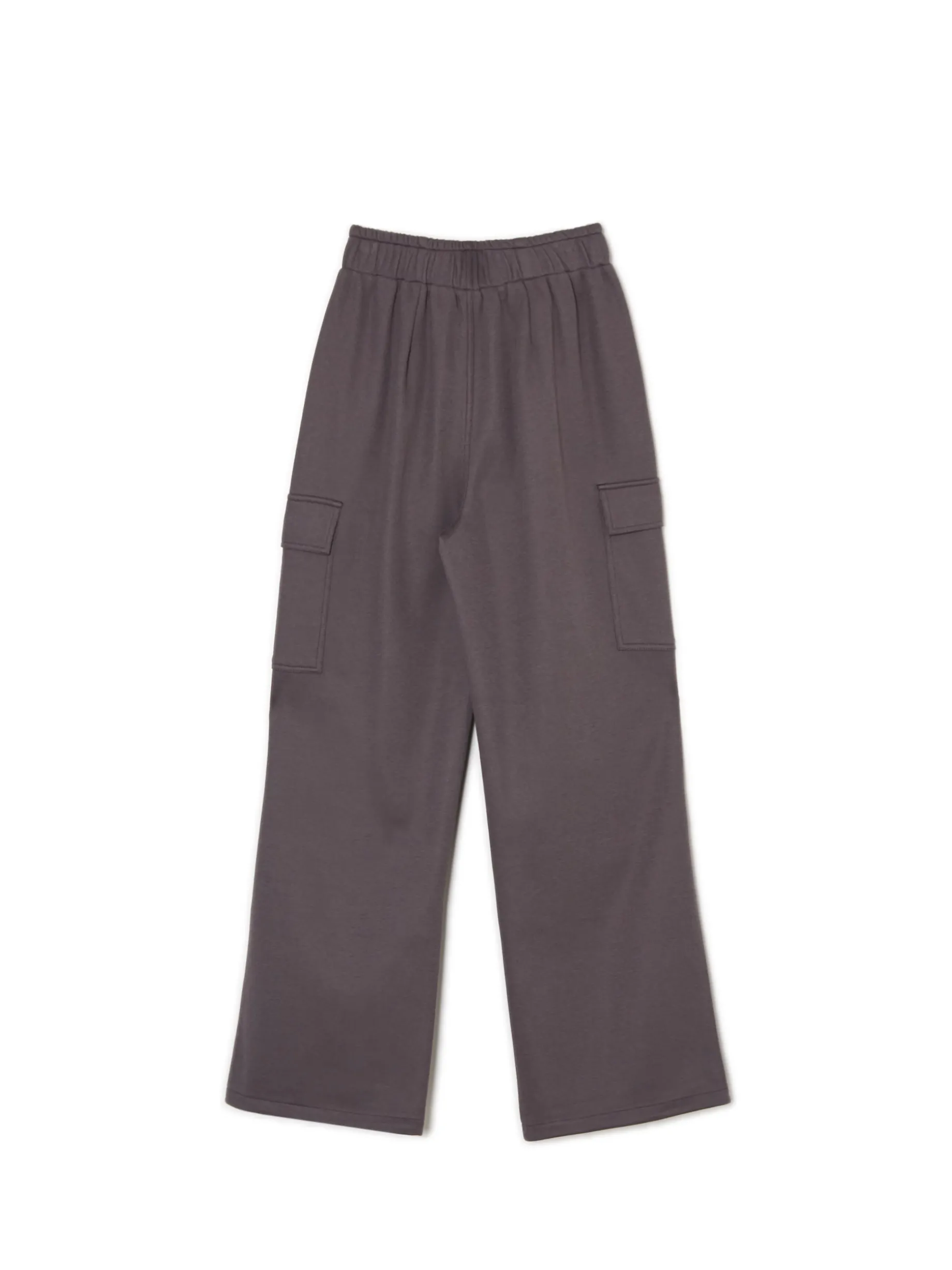 Te damskie spodnie typu cargo w stonowanym, szarym kolorze będą fitowały z Twoimi stylizacjami. materiał z dużą zawartością bawełny luźny krój typu cargo ze ściągaczami uniwersalna gumka w pasie para klasycznych kieszeni i typu cargo na nogawkach ozdobna imitacja zapięcia zagięcia w wersji parachute na kolanach ozdobne taśmy przy kieszeniach