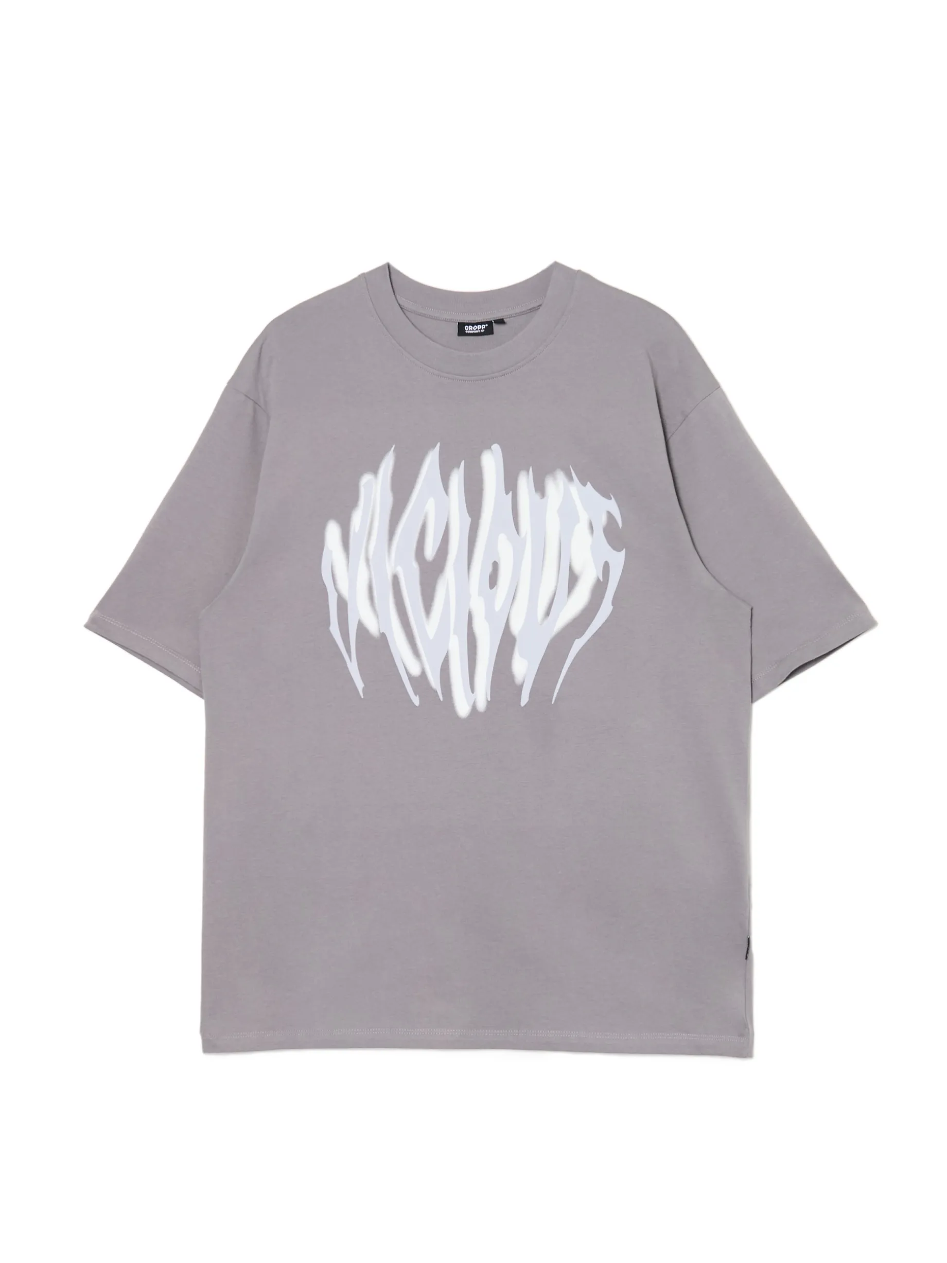 Szara męska koszulka typu comfort z krótkim rękawem uszyta w 100% z bawełny. Oryginalny, artystyczny nadruk na przodzie. Model prezentuje produkt w rozmiarze M. Wzrost modela: 185 cm