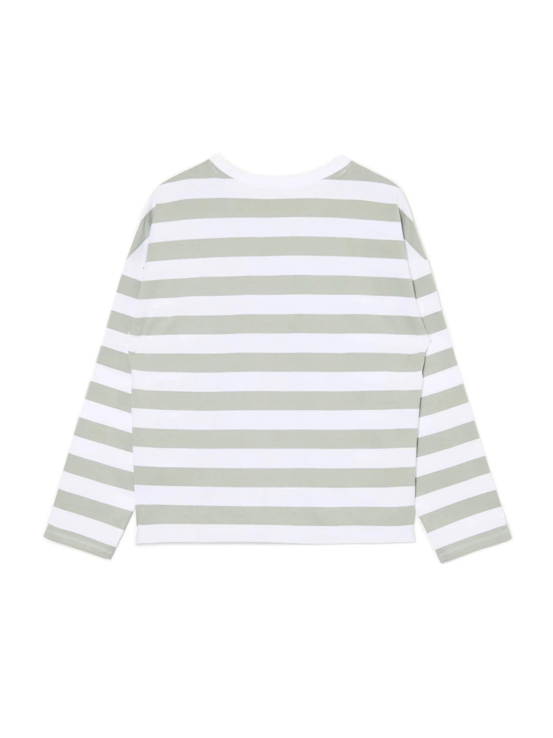 Damska koszulka z długim rękawem, uszyta z bawełnianej dzianiny ze wzorem w paski. Swobodny, luźny krój i stonowane kolory sprawiają, że to casual na każdą okazję! 100% bawełny krój oversize okrągły dekolt z lamówką długie rękawy z obniżoną linią ramion wzór w paski na całości efekt sprania na nadruku Ten produkt należy do kolekcji UNISEX – zalecamy wybranie mniejszego rozmiaru niż zazwyczaj, jeśli chcesz uniknąć efektu oversize.